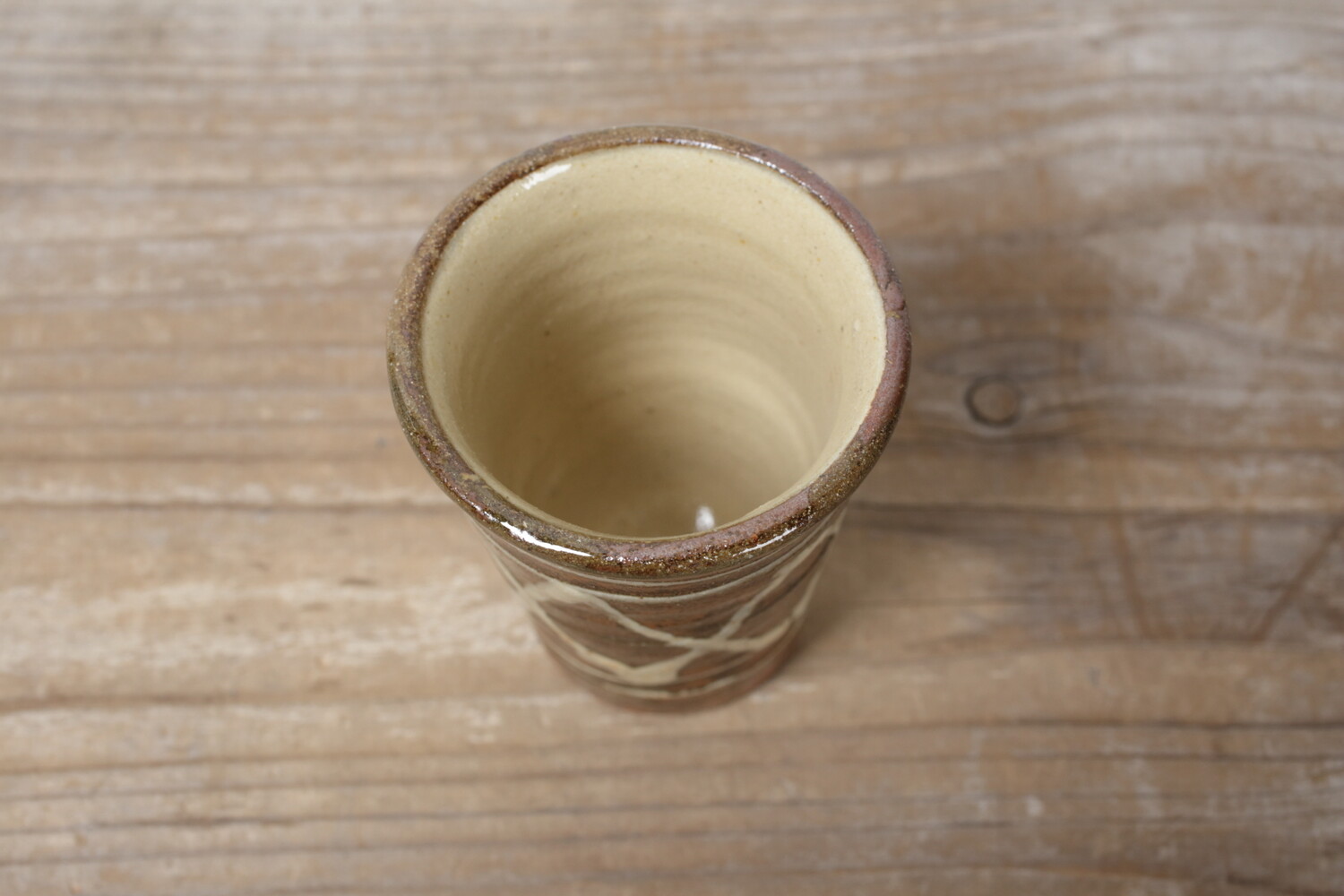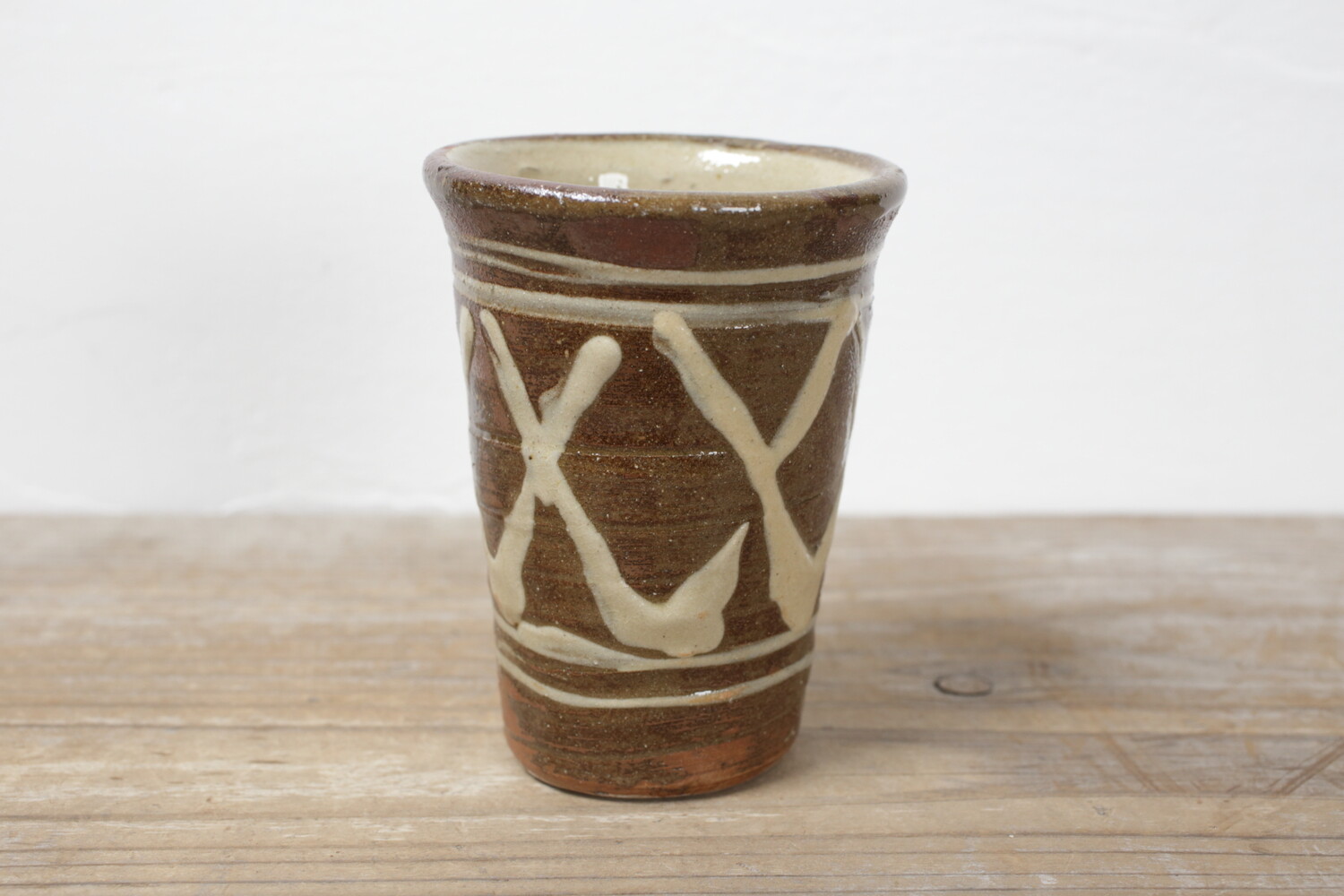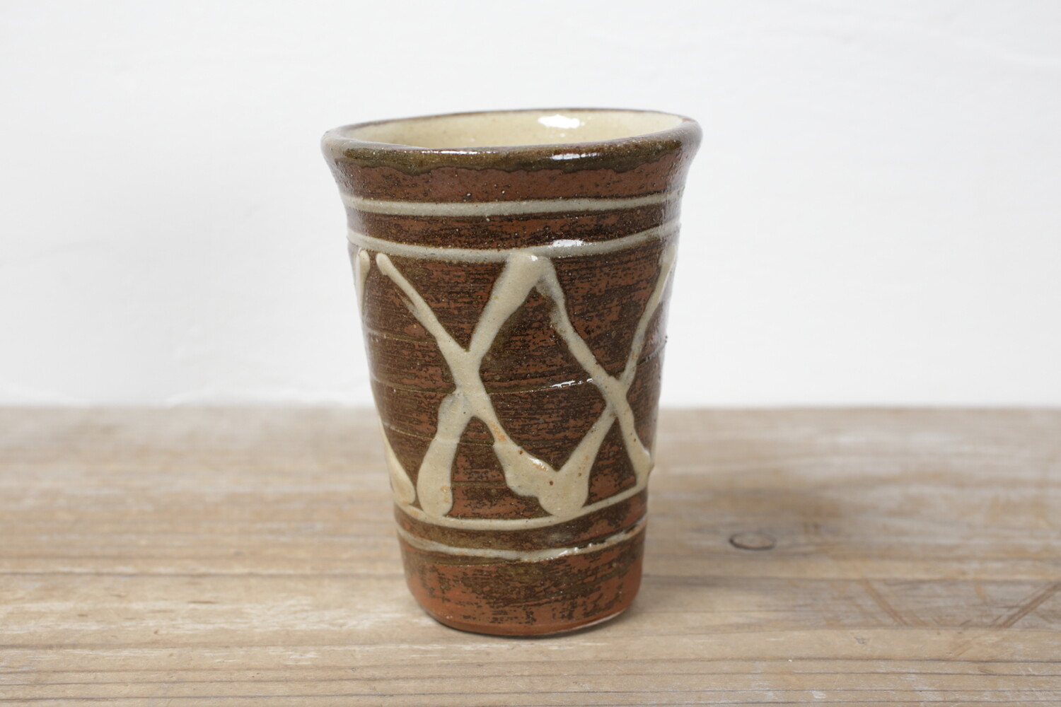 宮城正亨さんご本人によるフリーカップ。形やイッチンの模様など、どこまでもおおらかで見ているこちらも楽しくなるカップです。大きさの割に重量感がありますが、口元の丸みは口当たりがよく持った具合も収まりの良さを感じます。ビールや泡盛、酎ハイやアイスコーヒーなどお好きな飲み物でお楽しみください。重いものは苦手という方にはお薦めいたしません。