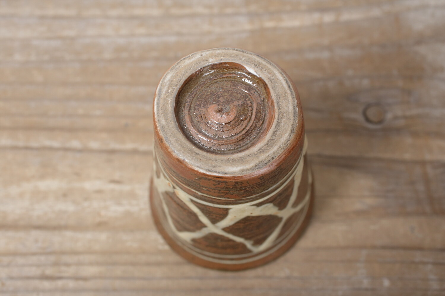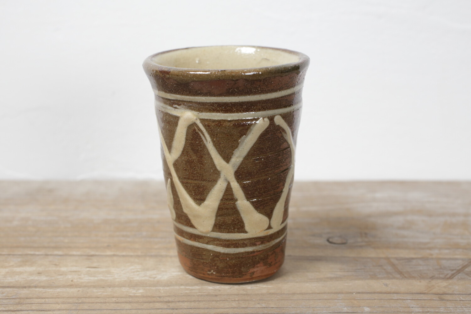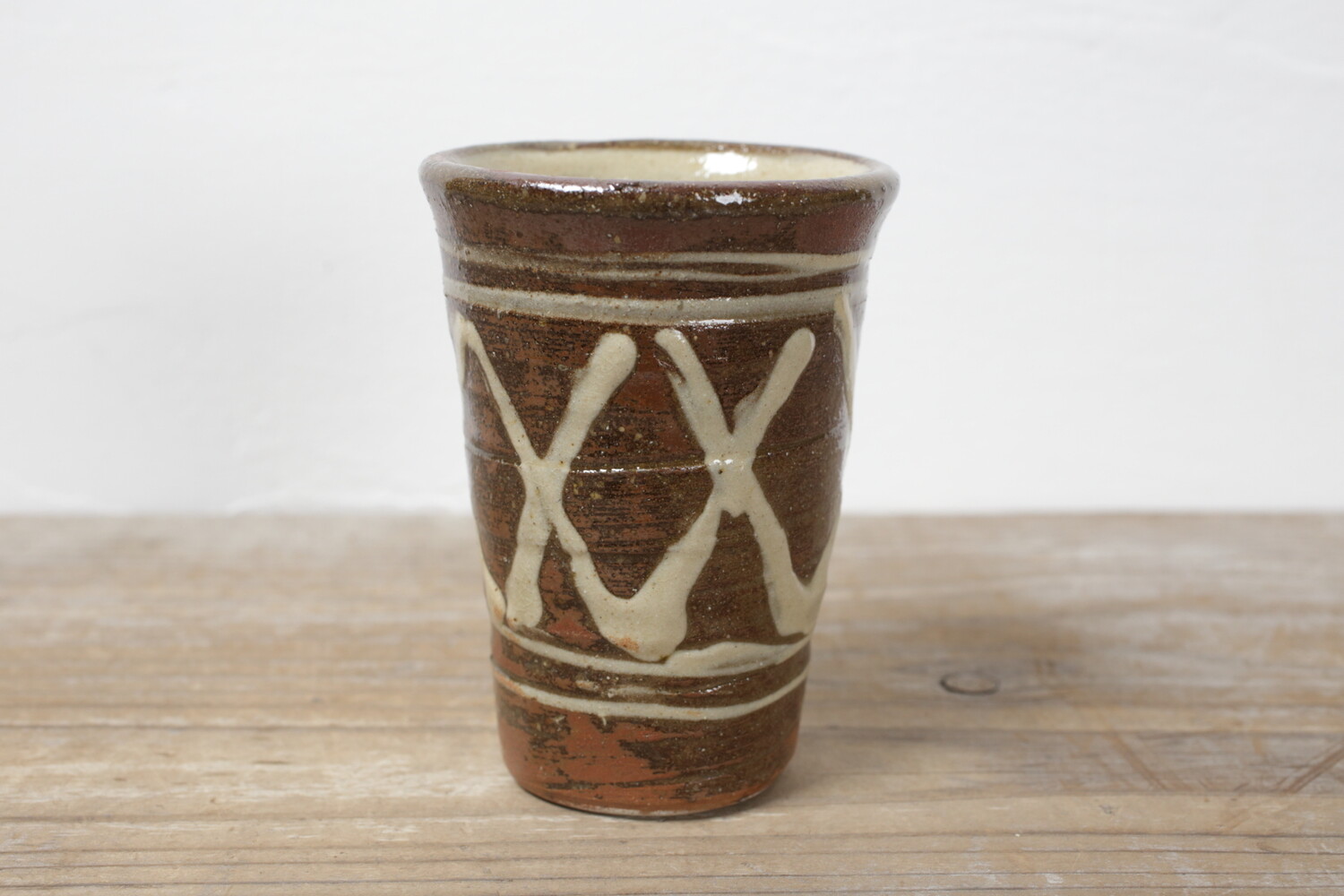 宮城正亨さんご本人によるフリーカップ。形やイッチンの模様など、どこまでもおおらかで見ているこちらも楽しくなるカップです。大きさの割に重量感がありますが、口元の丸みは口当たりがよく持った具合も収まりの良さを感じます。ビールや泡盛、酎ハイやアイスコーヒーなどお好きな飲み物でお楽しみください。重いものは苦手という方にはお薦めいたしません。