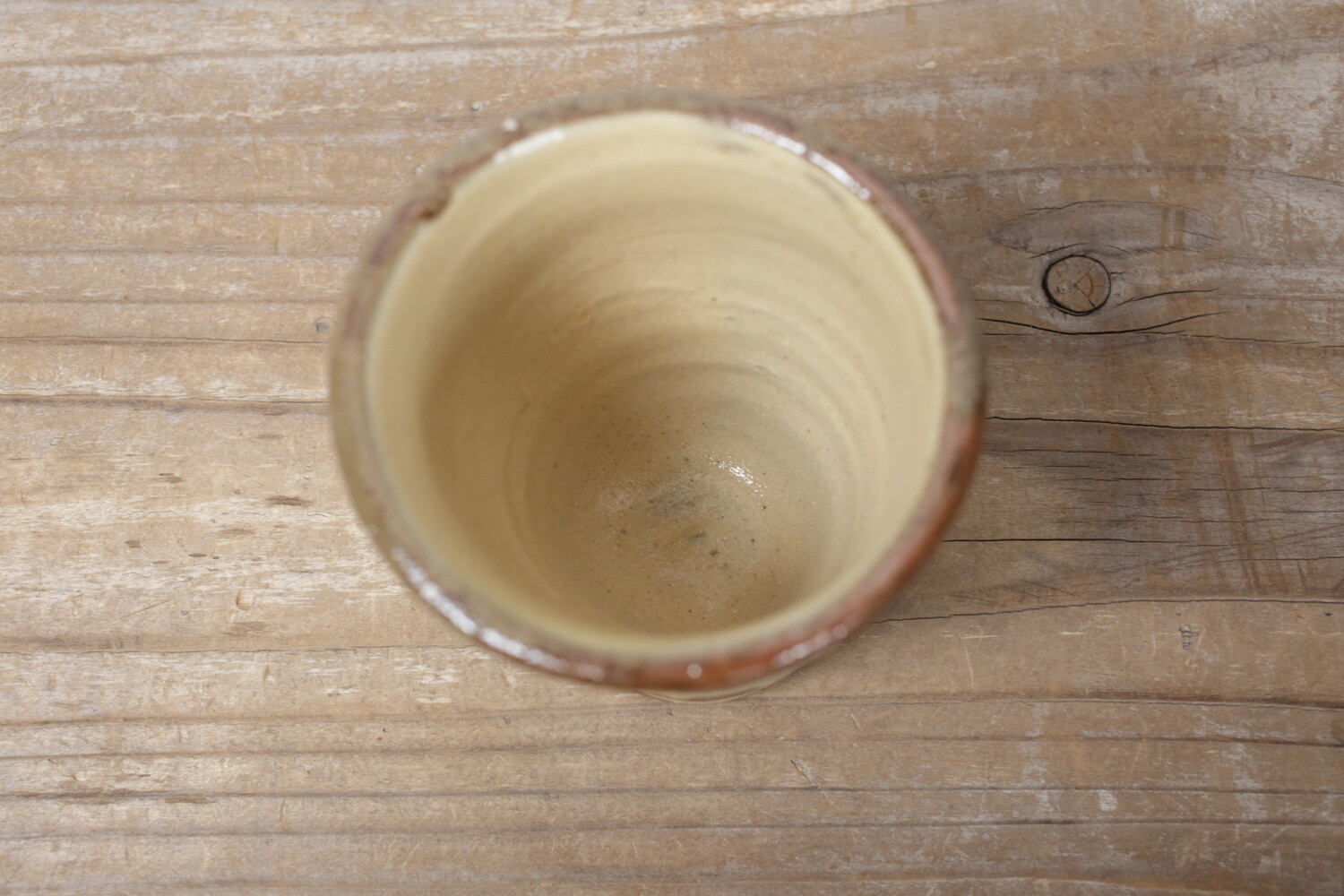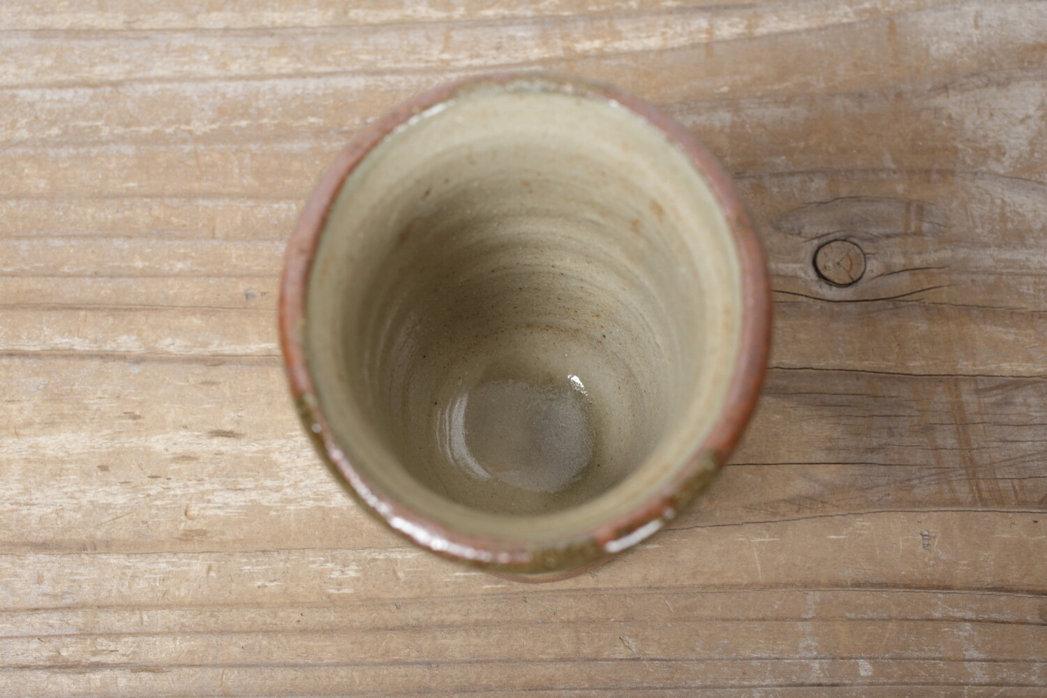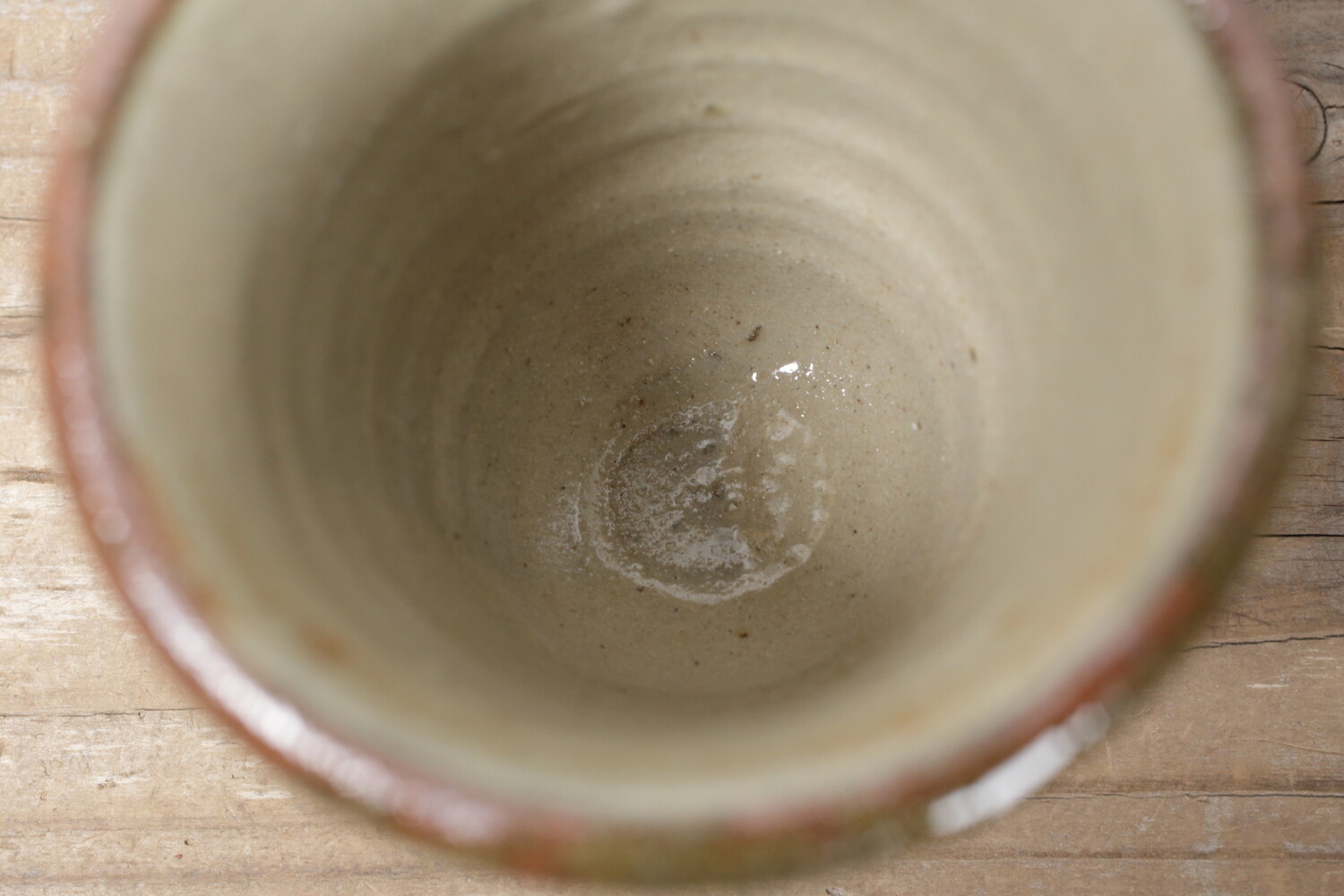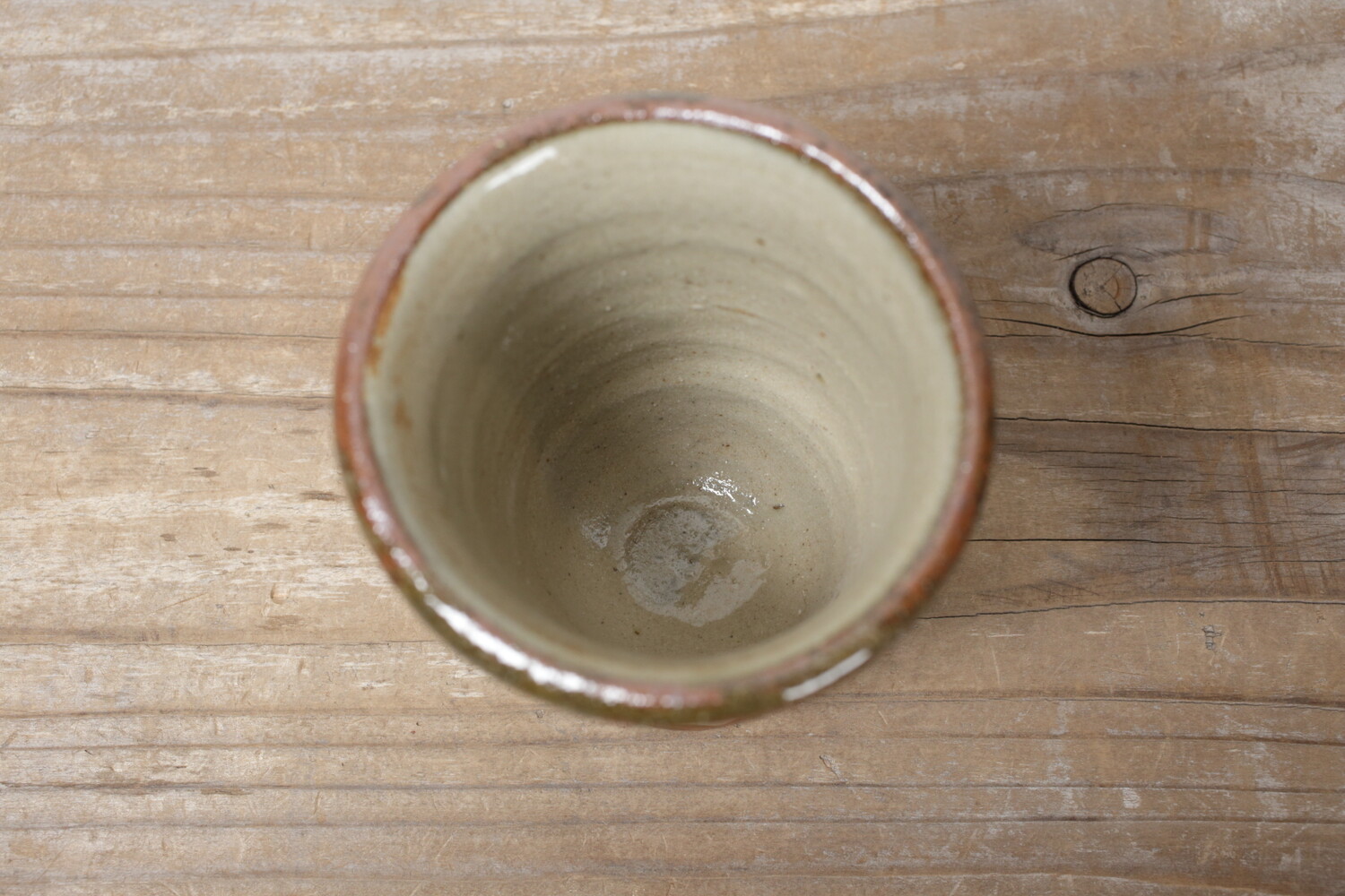 宮城正亨さんご本人によるフリーカップ。イッチンによる格子柄と造形のラフさが、宮城さんらしいゆったりのんびり感です。泡盛はもちろんお酒に焼酎、ビールやコーヒーなどお好きな飲み物でお楽しみ下さい。宮城さんの器は全体的にぽってりと厚みがありますが、口元は丸くあたりに嫌な印象を受けません。またこの厚みだからでる、宮城さんらしいゆったりかんだと思います。重いカップは苦手という方はどうぞお控え下さい。