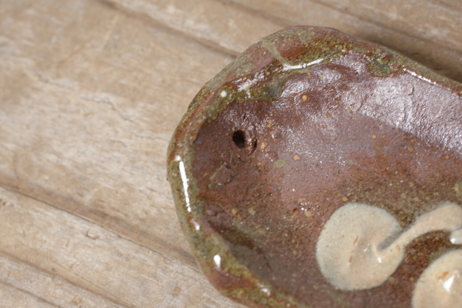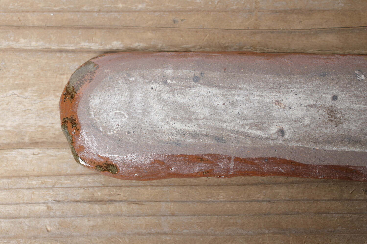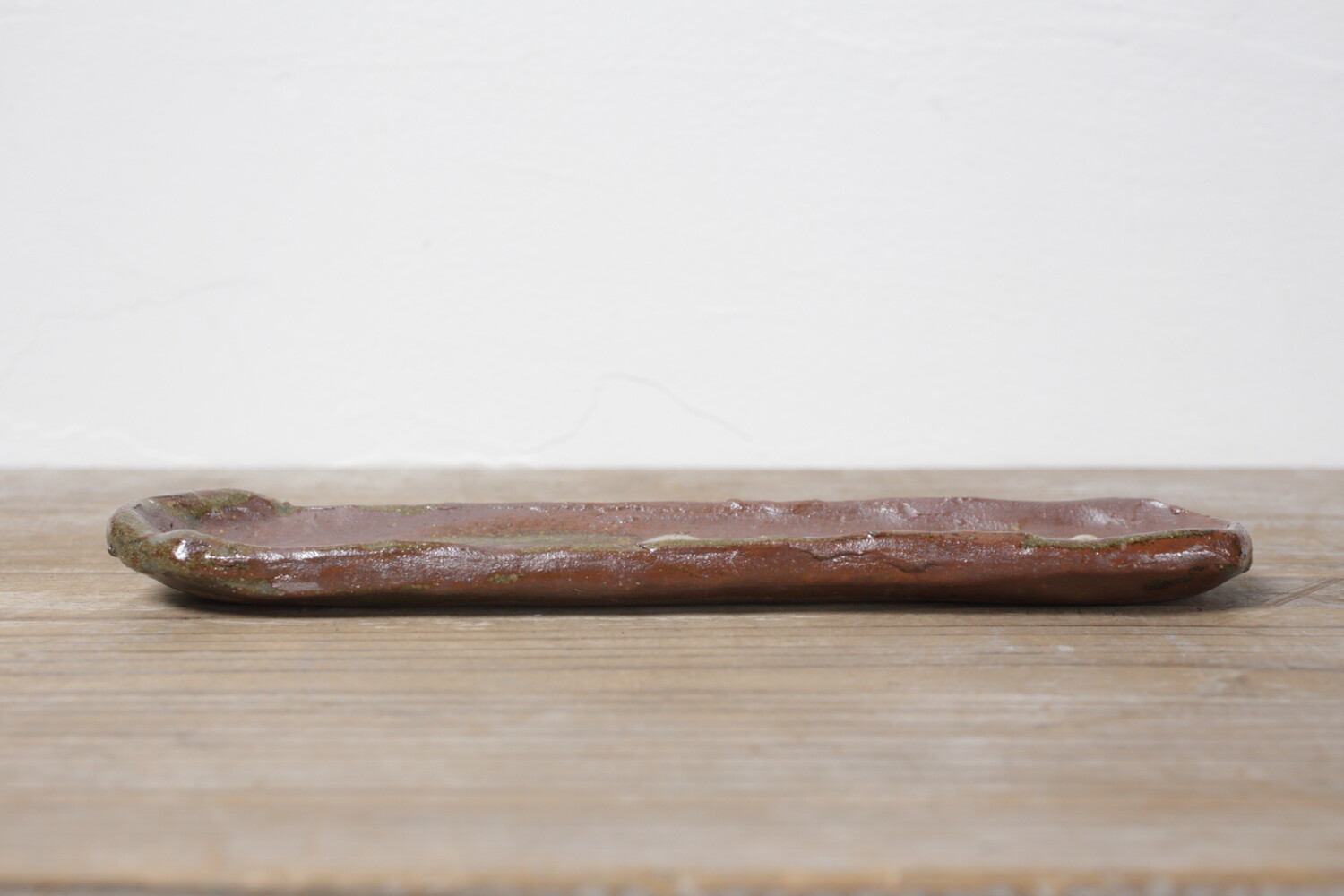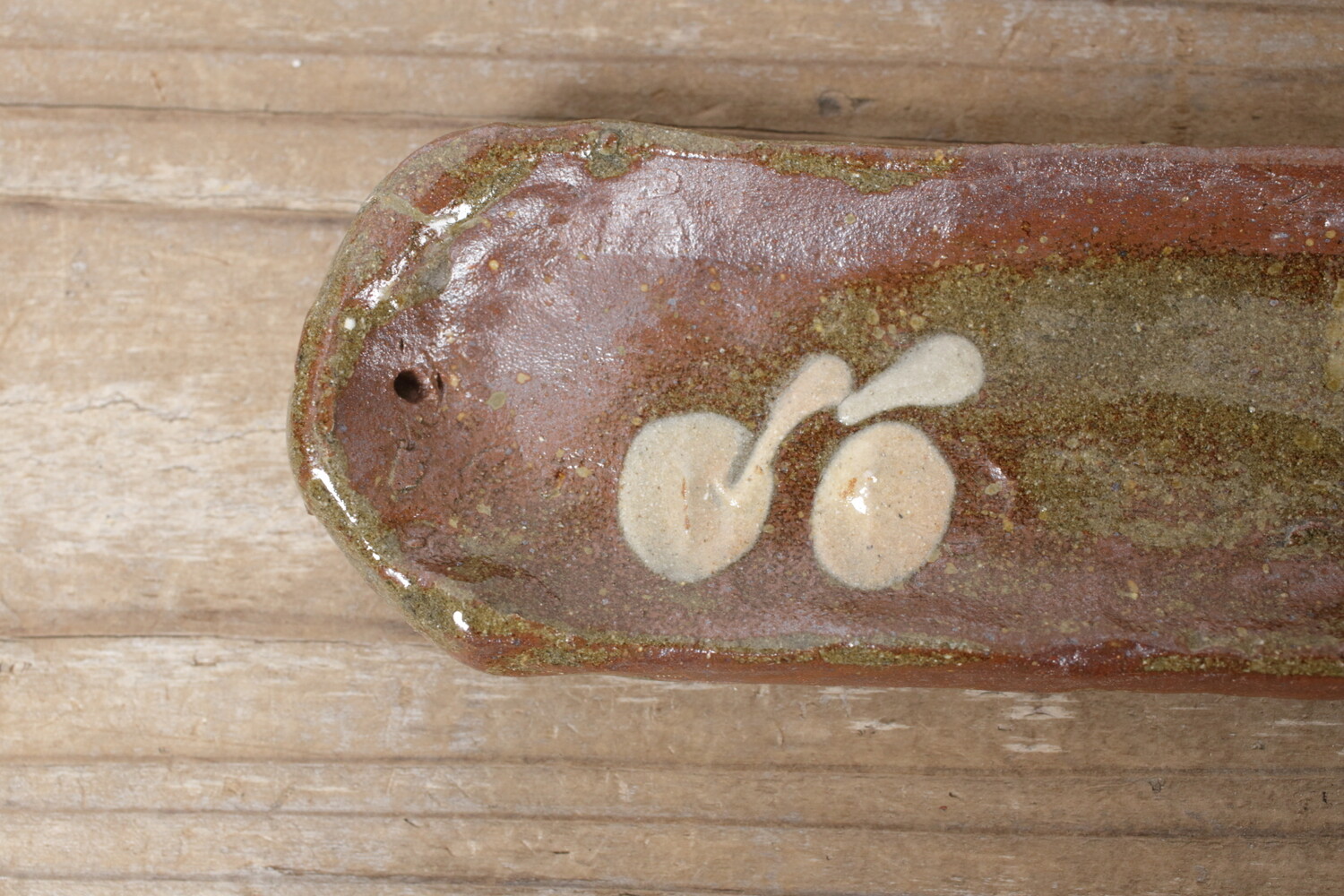 宮城正亨さんご本人による長さ23.5cmほどのスティック用お香立て。チェリーでしょうか?可愛らしい模様がイッチンで描かれています。陶器のお香立ては薄いとどうしても不安になるのですが、宮城さんのお香立てはある程度の厚みと縁の丸み感があるので室内外問わず不安なくお使い頂けます。