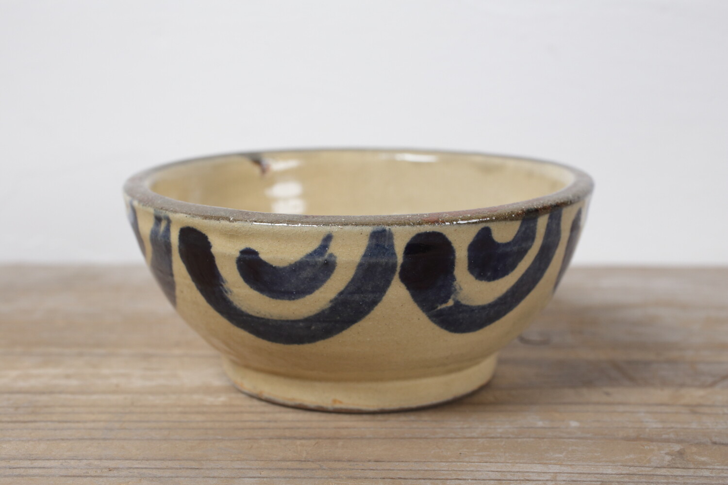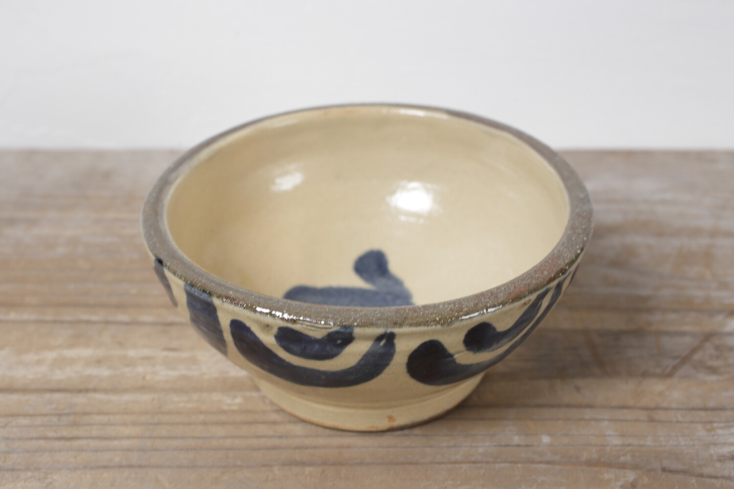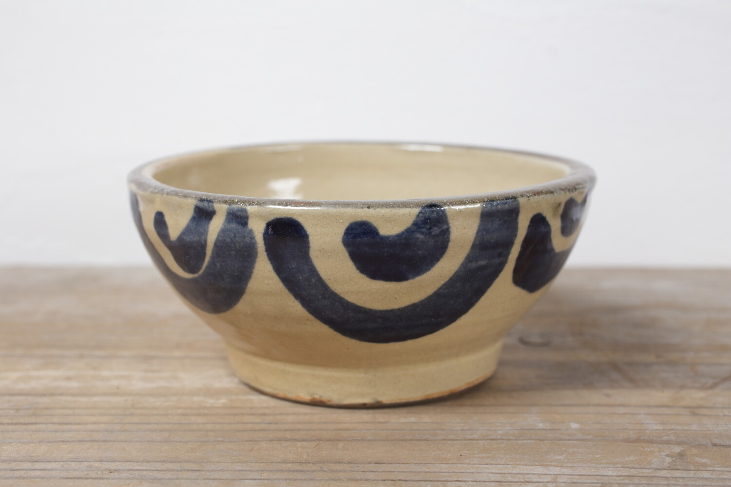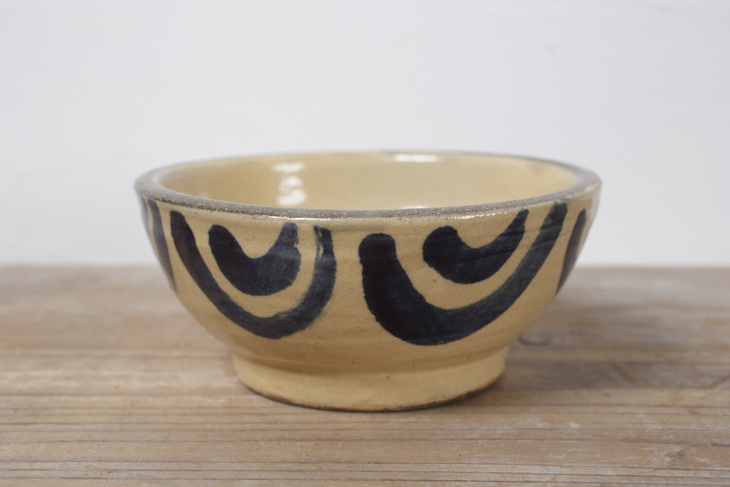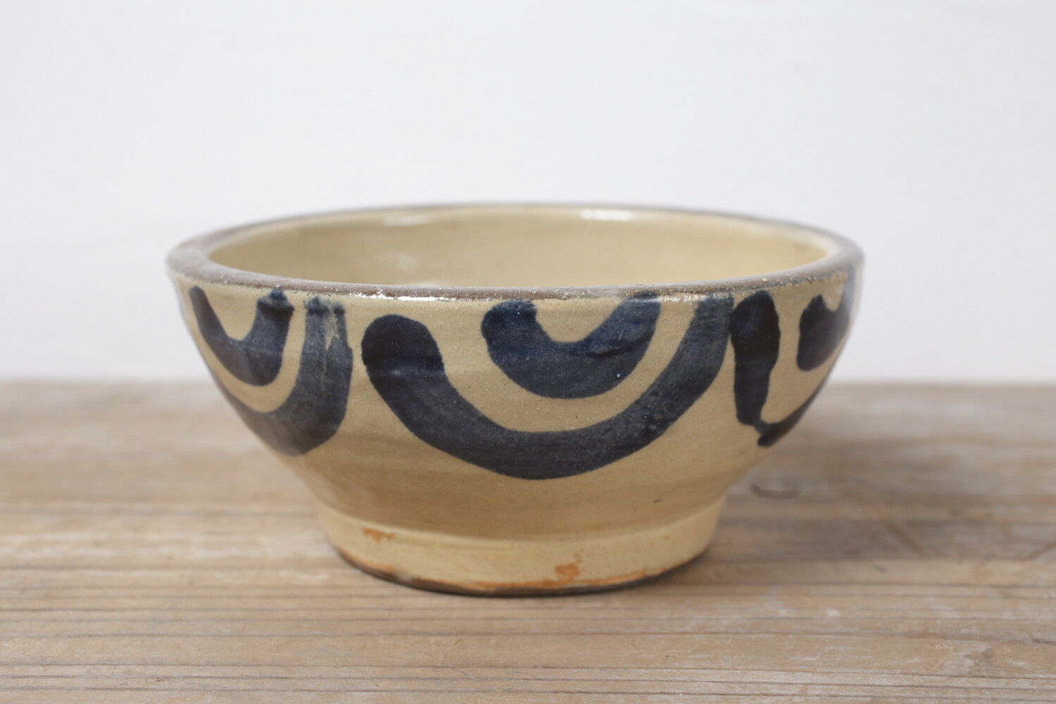宮城さんご本人による直径15.5cmほどの五寸鉢。鉢自体の石器のようなどっしりとした重量感のある造形と厚みが土物がお好きな方にはお薦めです。2-3人分ほどのおかずに、またご友人が集った際のフムスやリエット、パテなどもいいでしょう。楽しい器です。