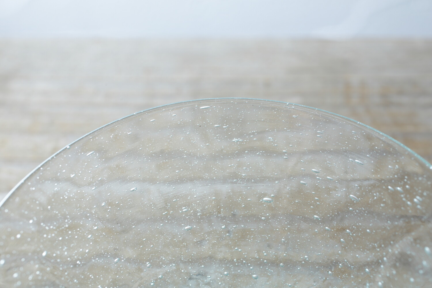 手吹きガラスならではの気泡の入りや形成の際に生じるガラスの筋や引っ掻き傷、左右非対称の形、底のガラス切断面、炭などの混入物は手吹きガラス、ハンドメイドの特徴としてご理解下さい。これらの理由での返品はお受けいたしかねます。 - 耐熱ガラスではありません。熱いものを注ぐと破損しますので御注意下さい。