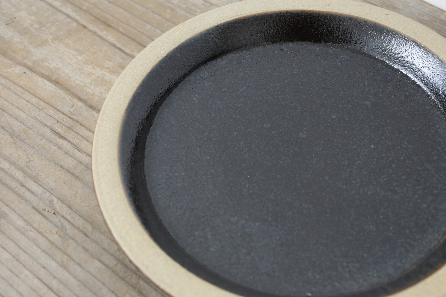横からの写真を見て頂くとお分かり頂けると思いますが、薄い平皿ではなく1.5cmから2cm弱ほどの少し深さがある安定感のある形のパン皿です。そのためオムレツにサラダと副菜を添えて頂くにもいいですし、またホットドッグやクロワッサンなどに果物やサラダを添えてもいいサイズ感です。パンを頂くのにいい皿として作られたお皿ですが、少し深さを設けて朝から夜までお使い頂ける作りにしたことでメインのおかずと副菜、サラダなどを添えたプレートとしても重宝する形になっています。