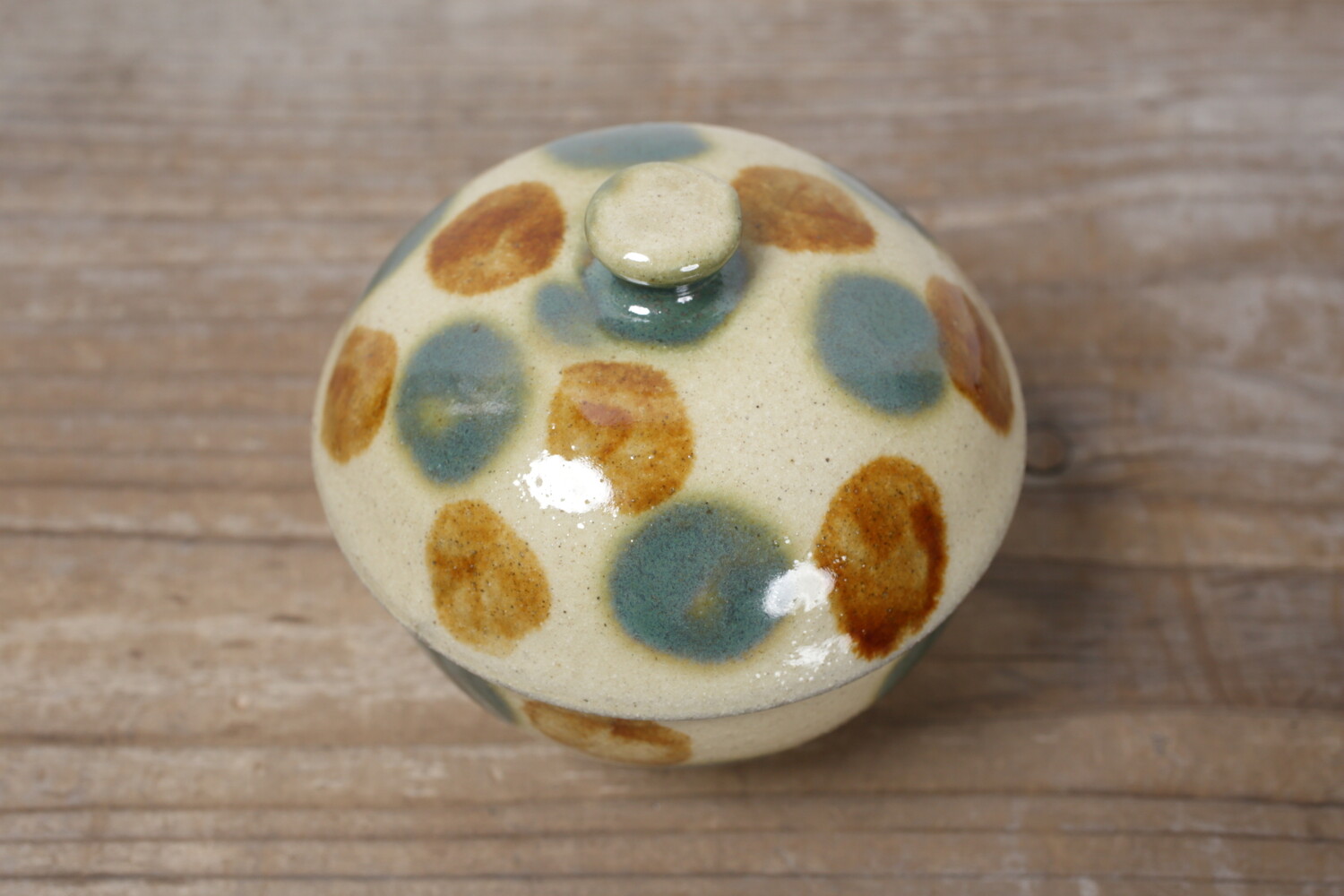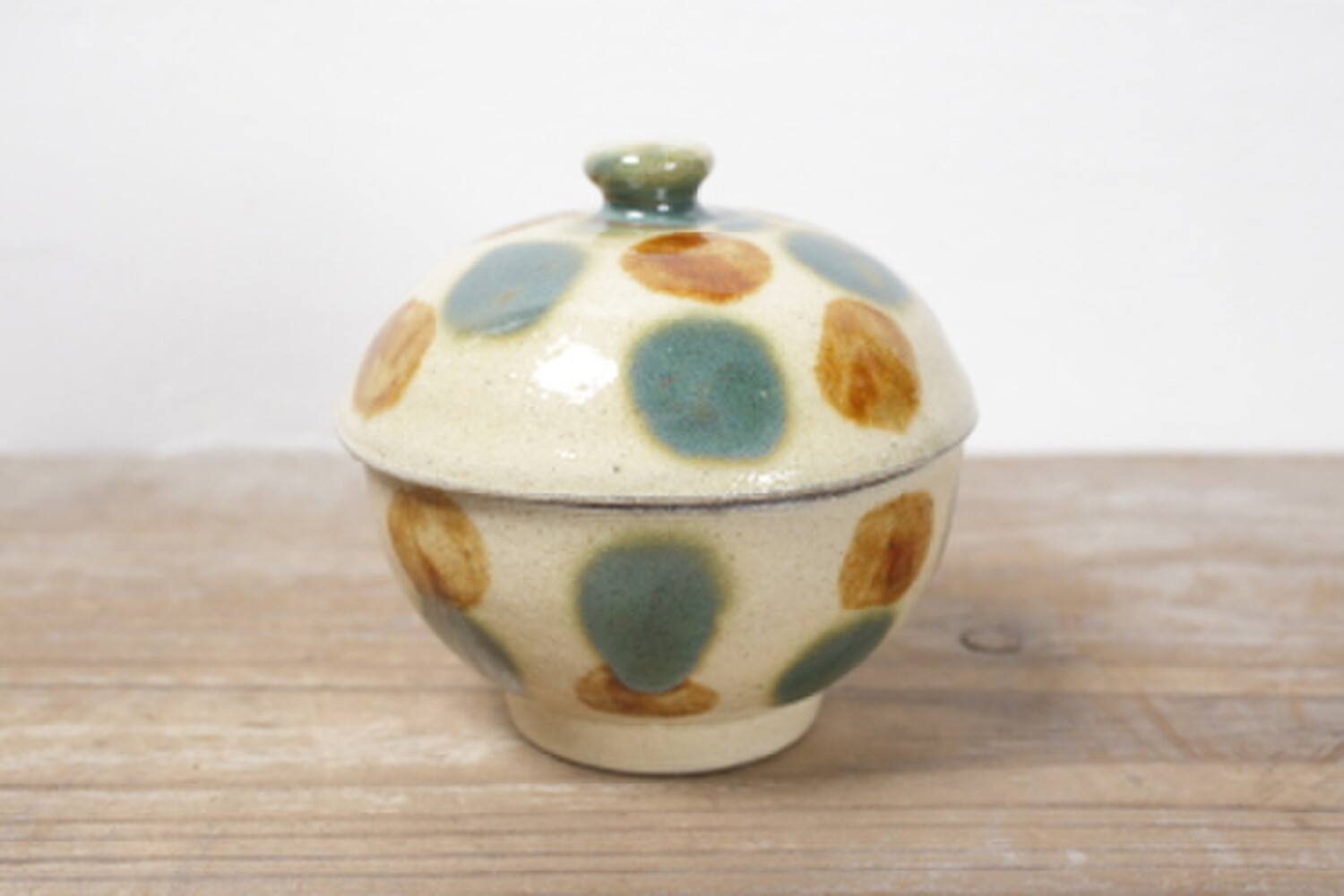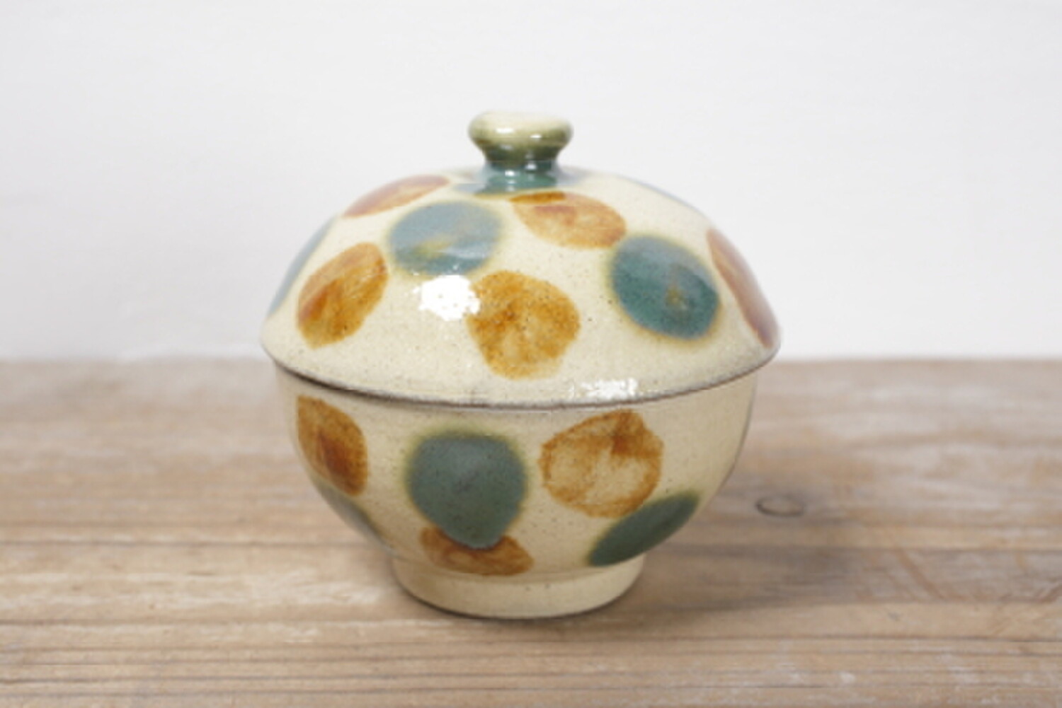 Pot avec pois vernis vert et brun