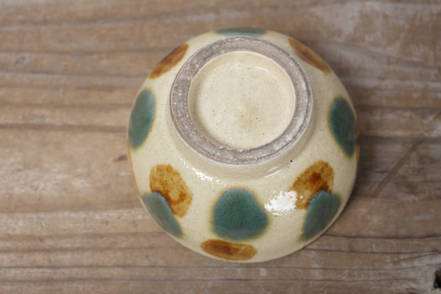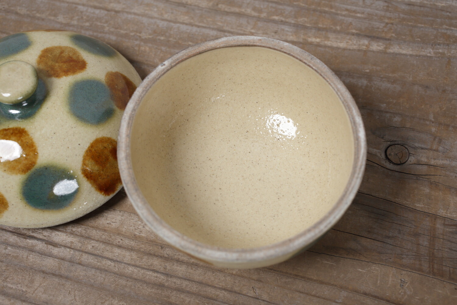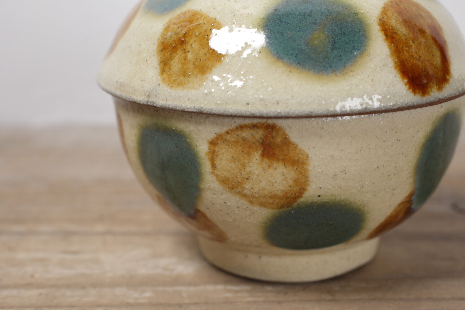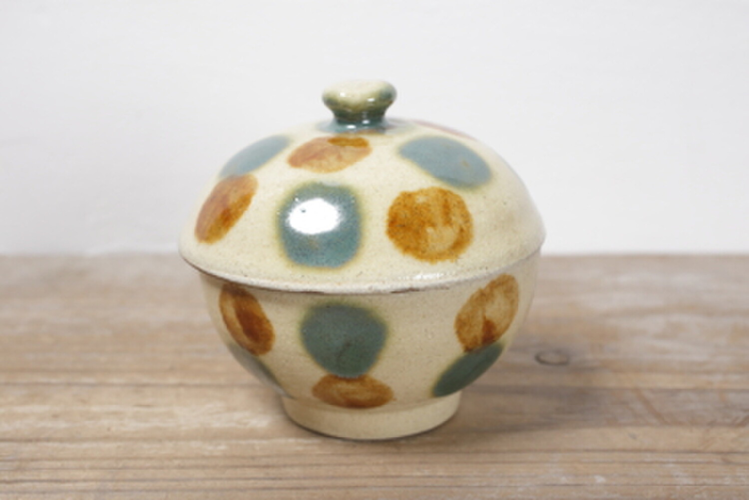 Pot avec pois vernis vert et brun