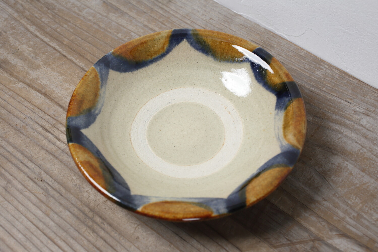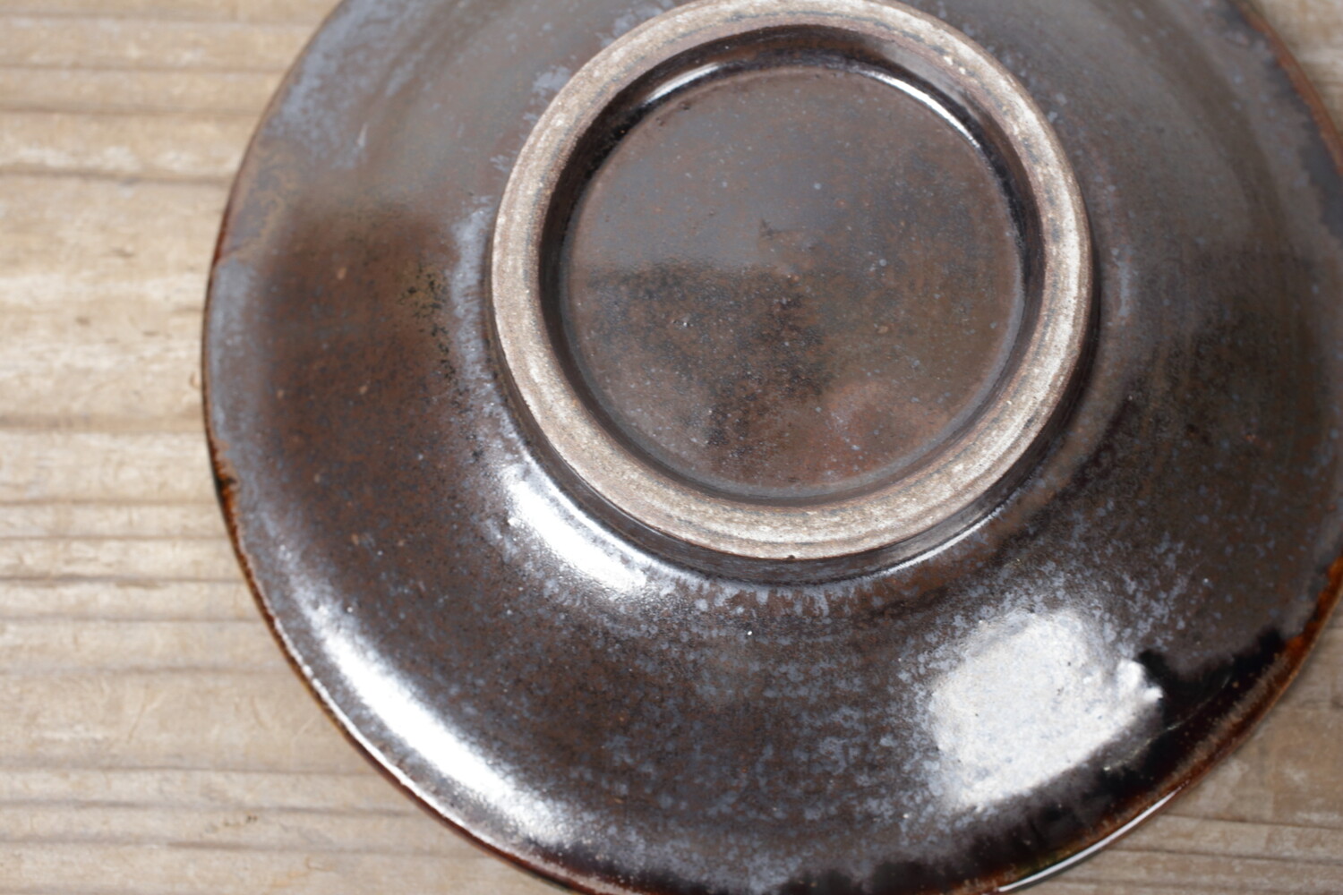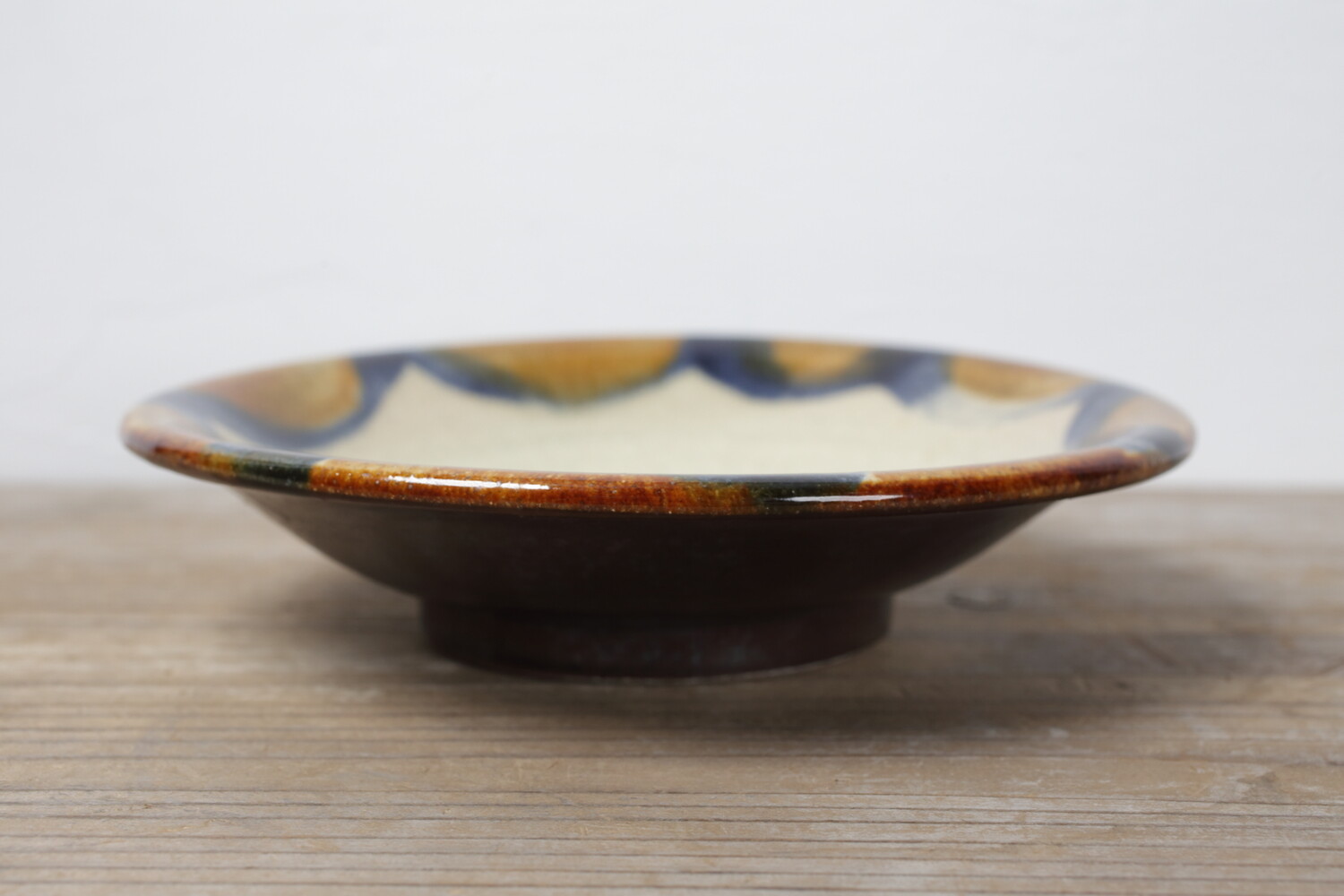 Plat avec decoration vernis brun et cobalt-bleu