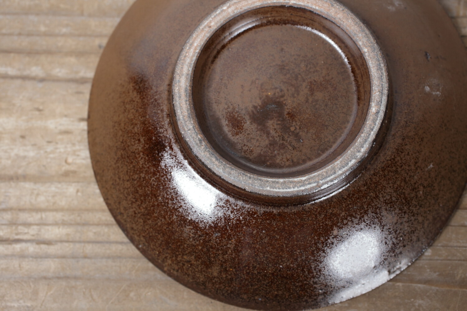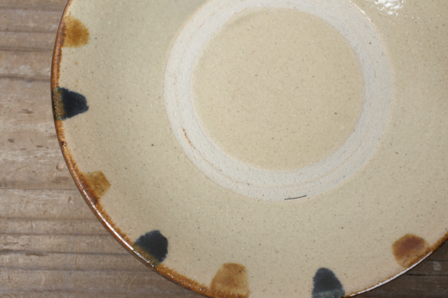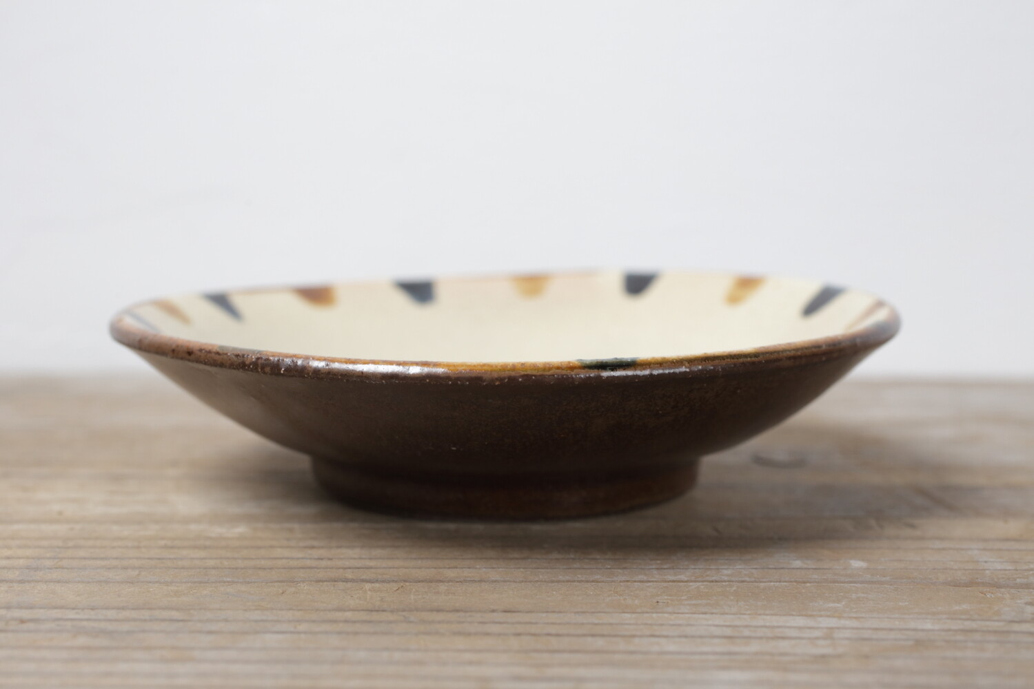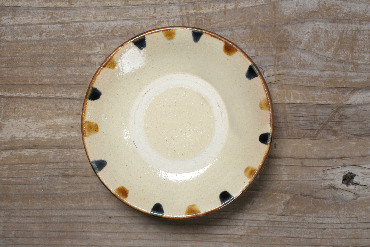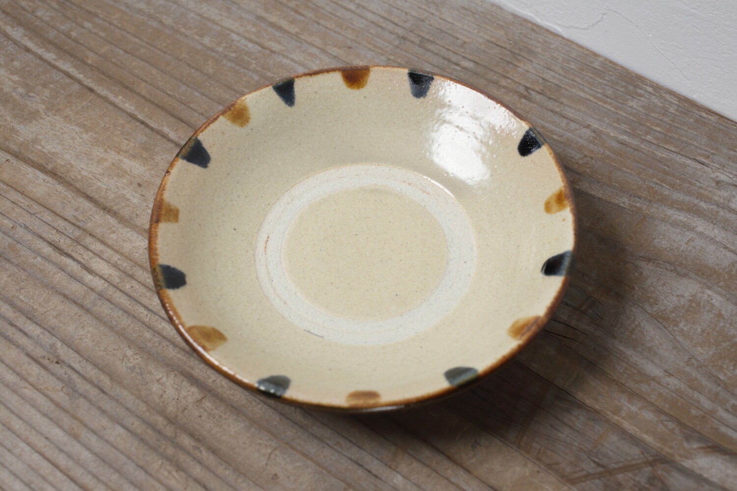 Plat avec pois vernis brun et cobalt-bleu