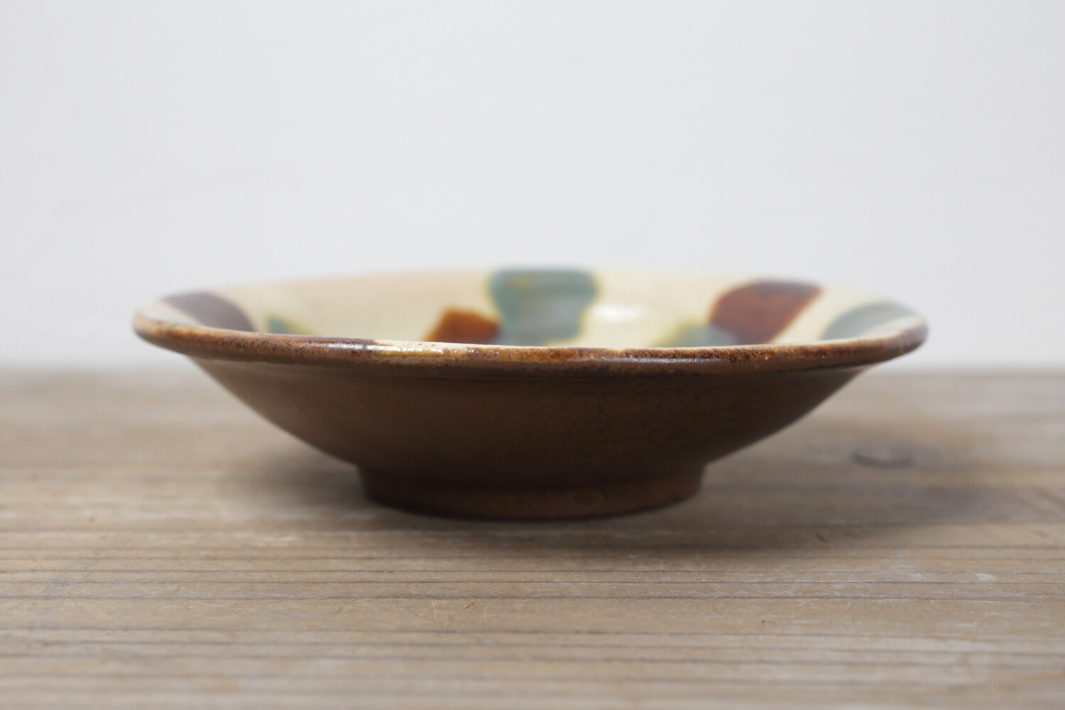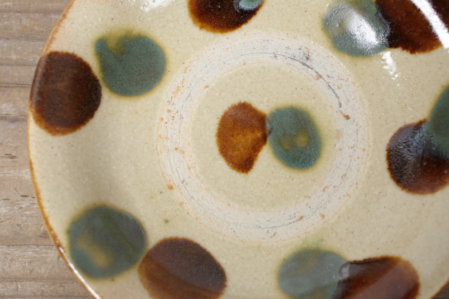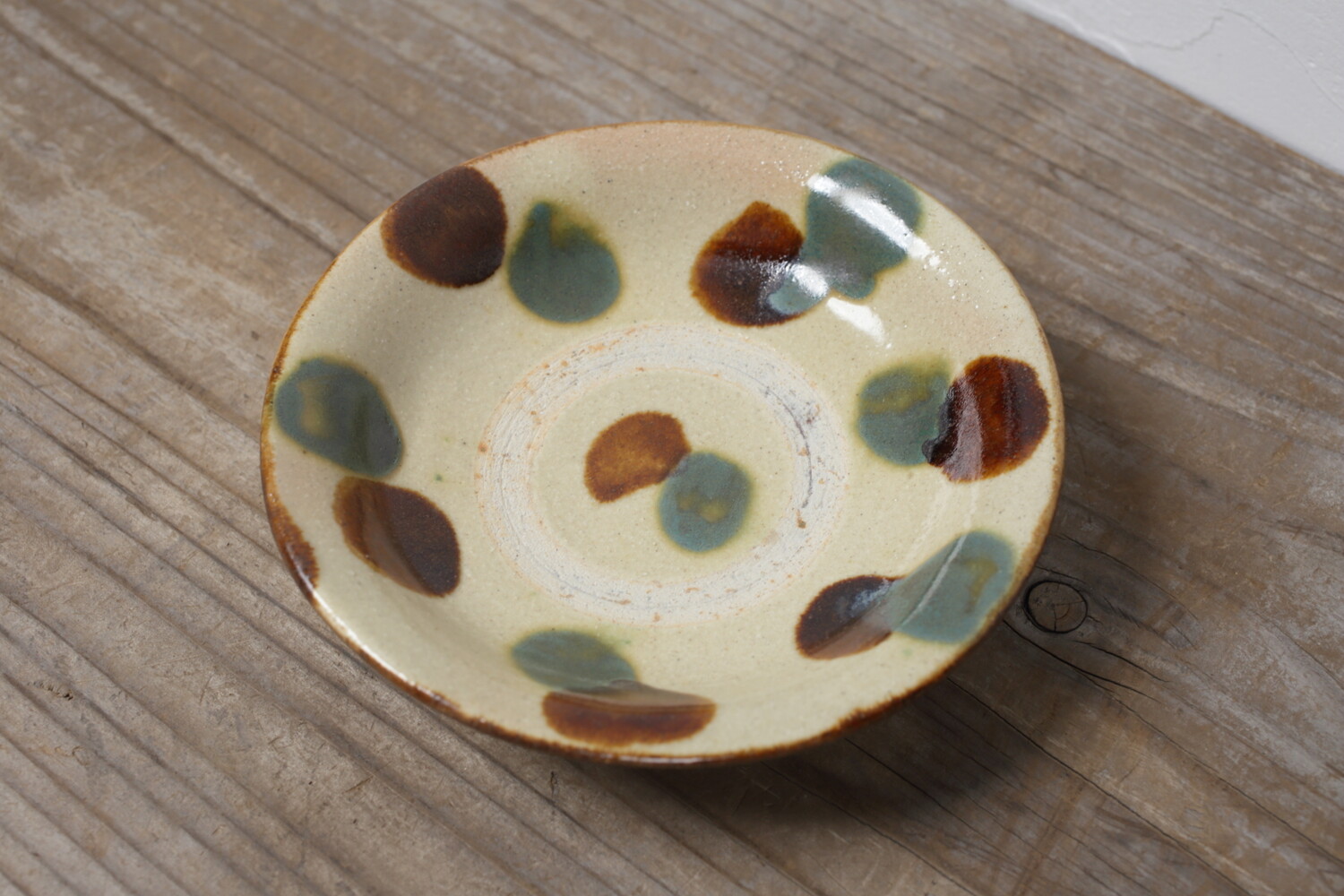 Plat avec pois vernis vert et ambre