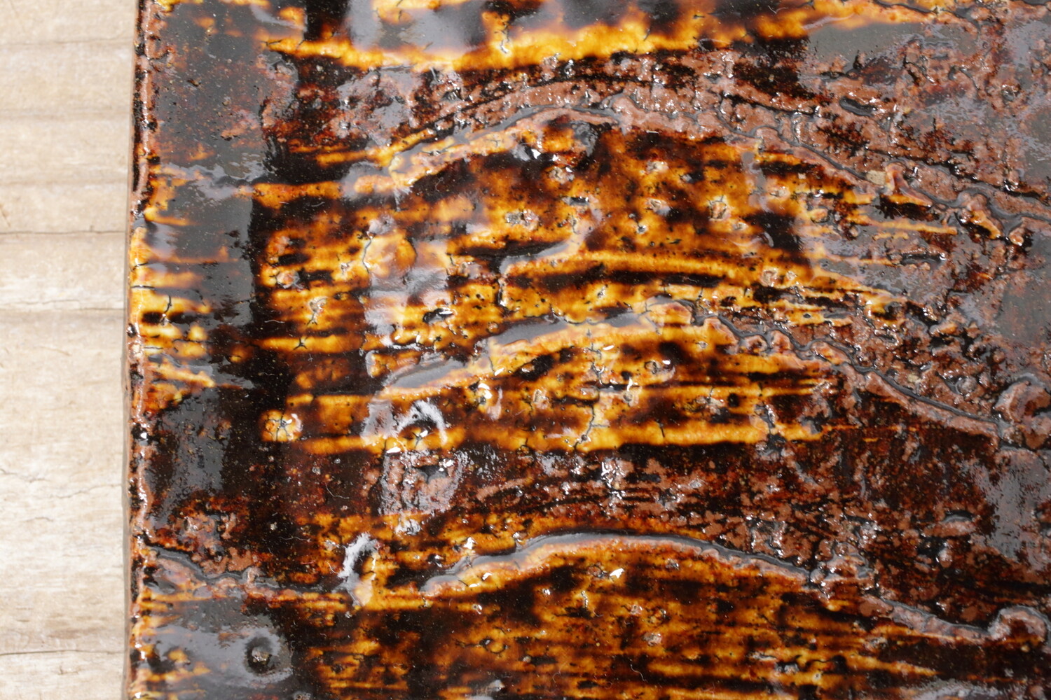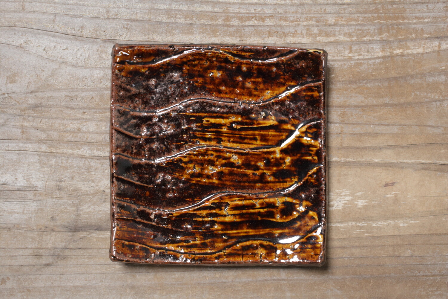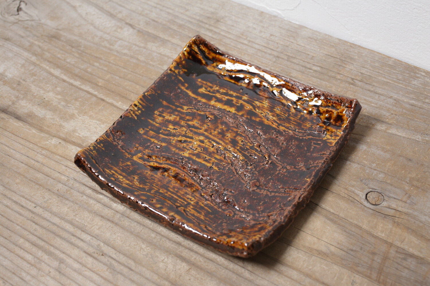 Square Plate brush marked decoration in amber glaze