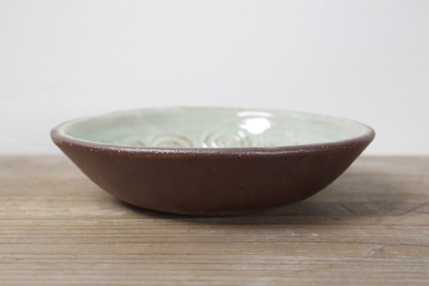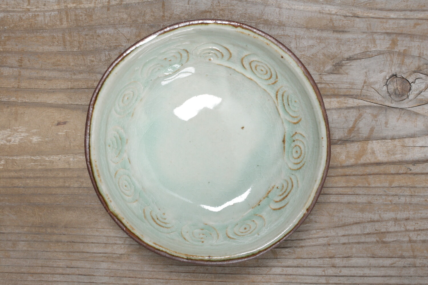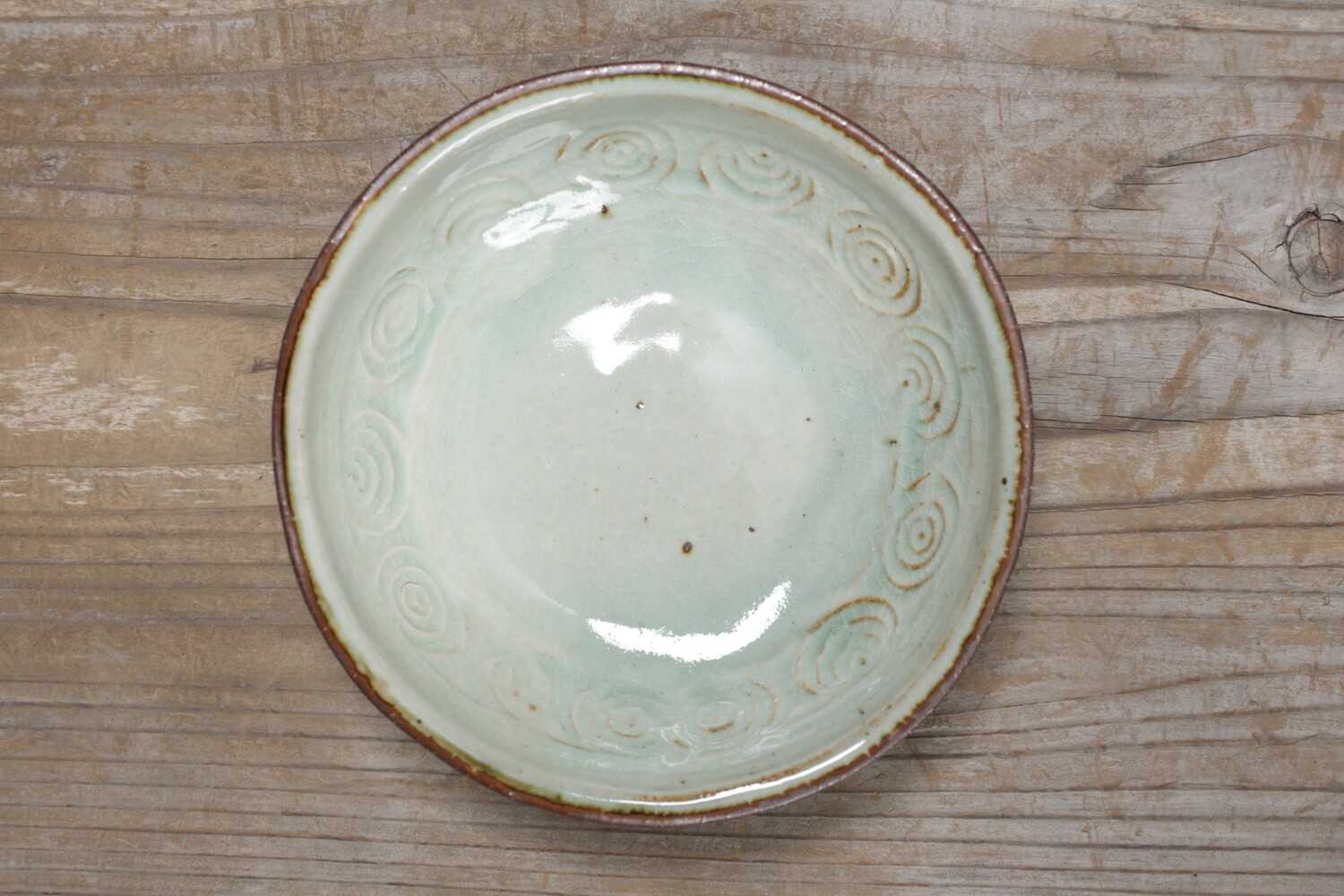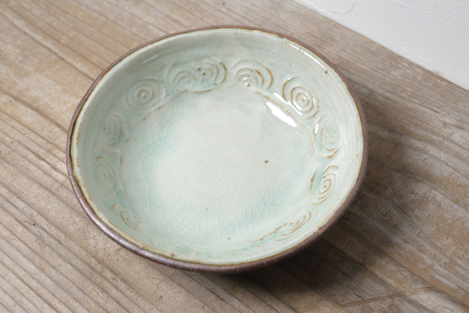 White plate with impressed circle pattern