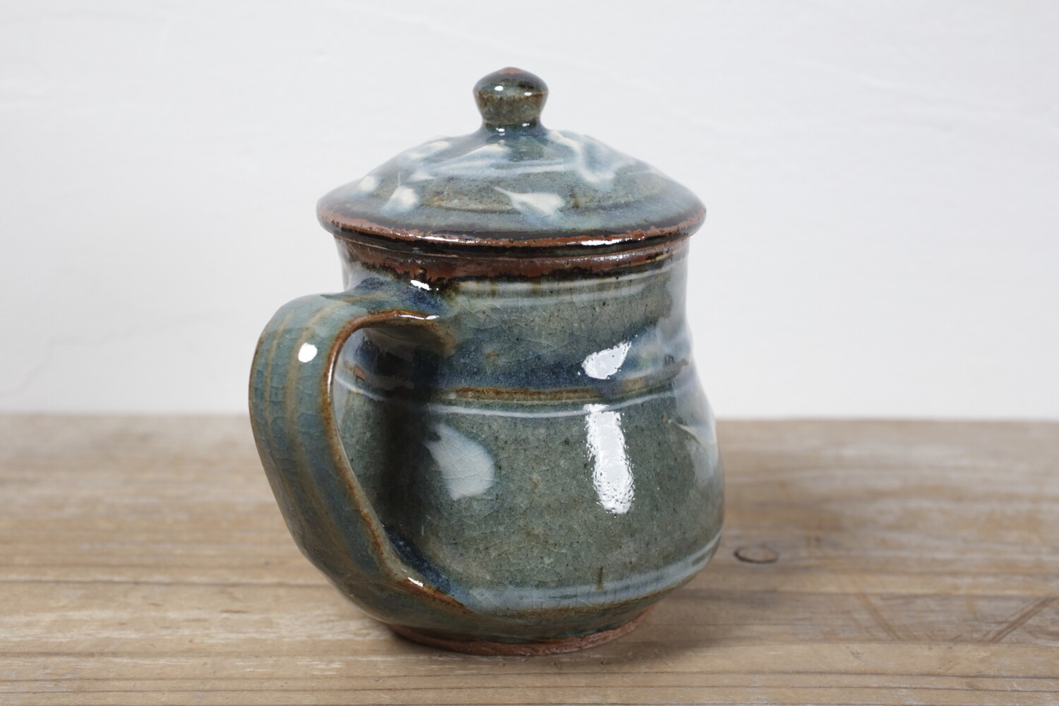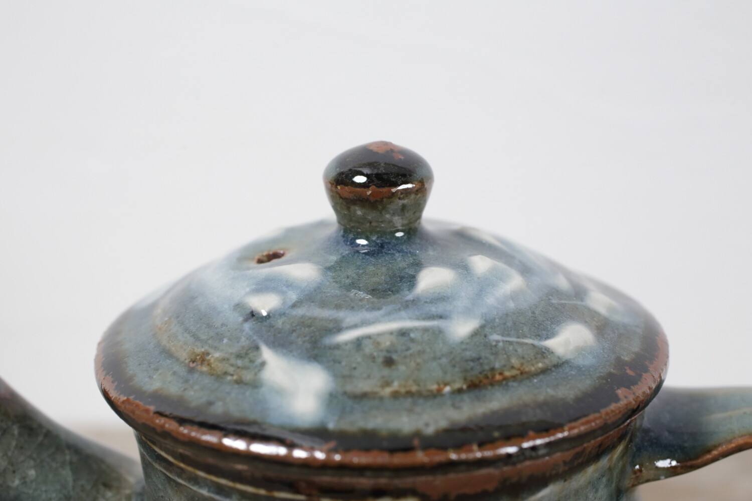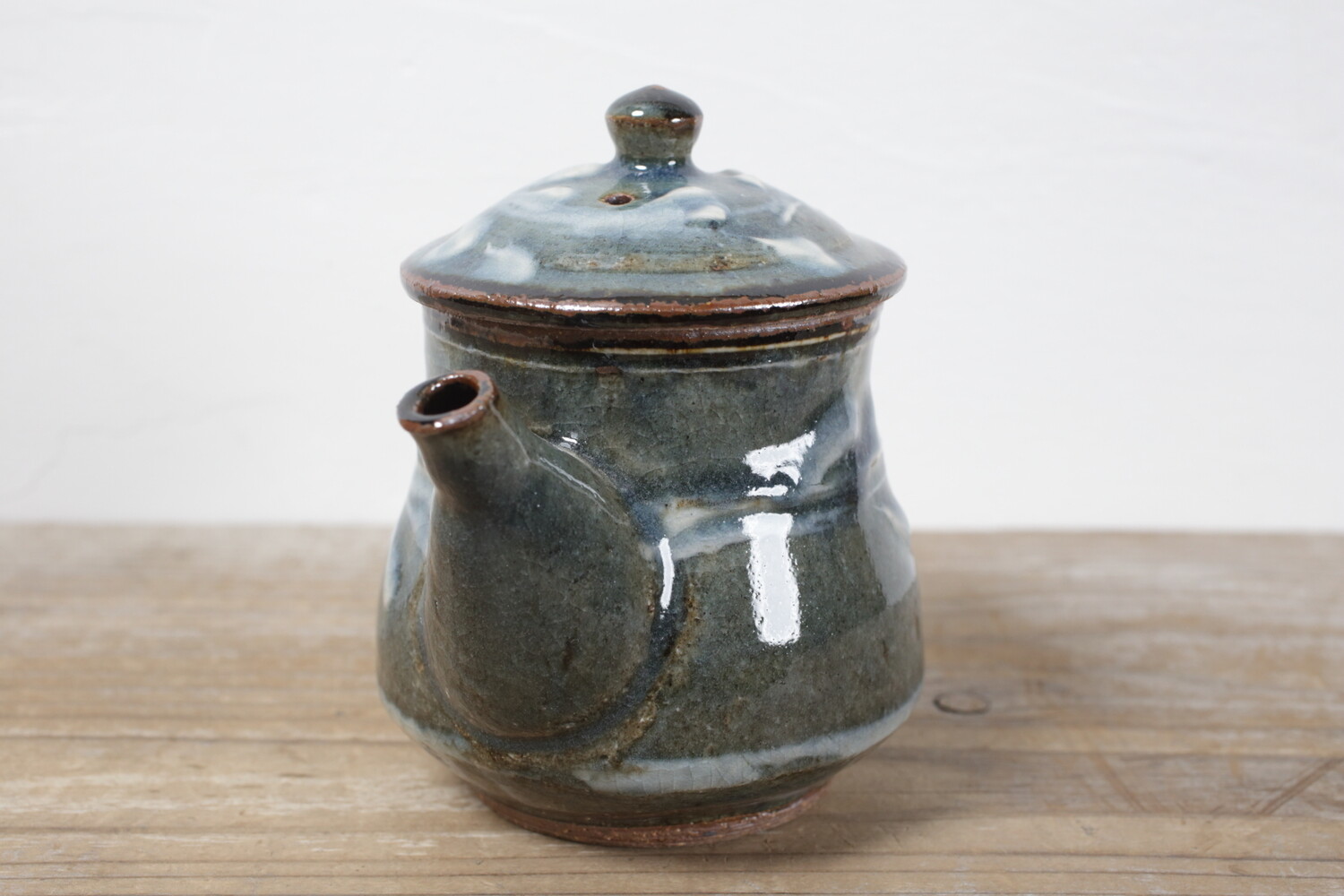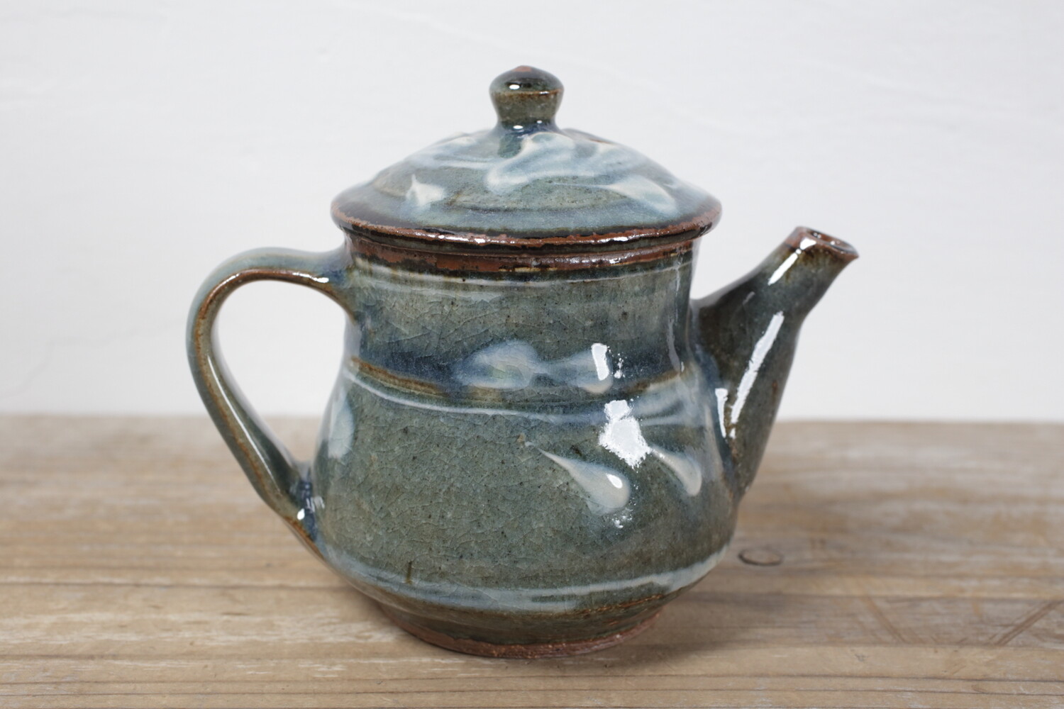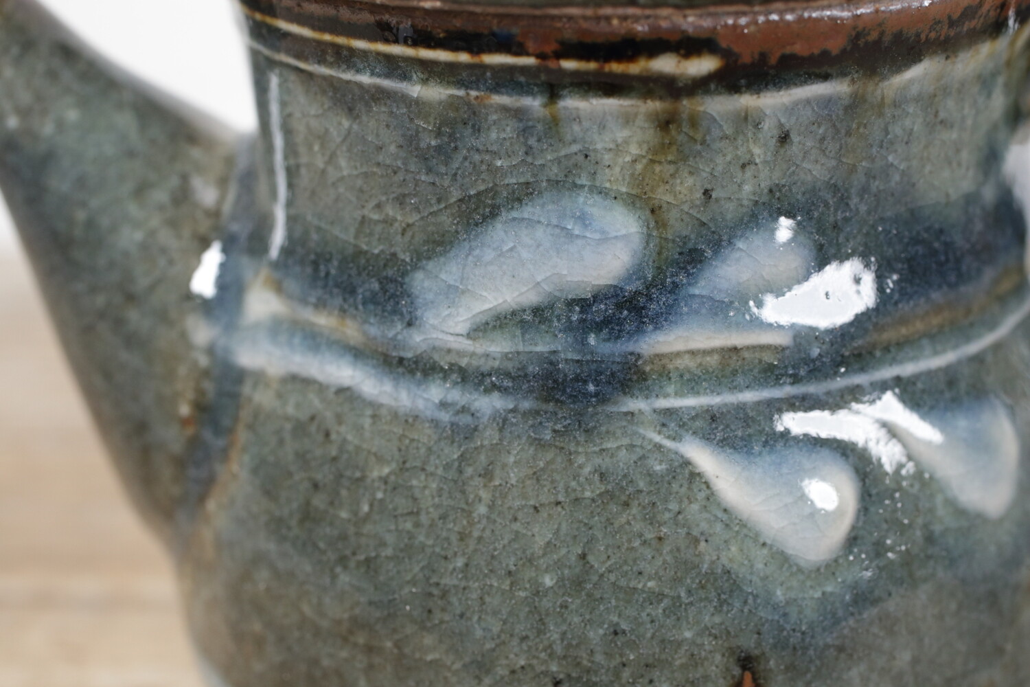 Tea Pot cobalt-blue glaze, white slip-trailed decoration