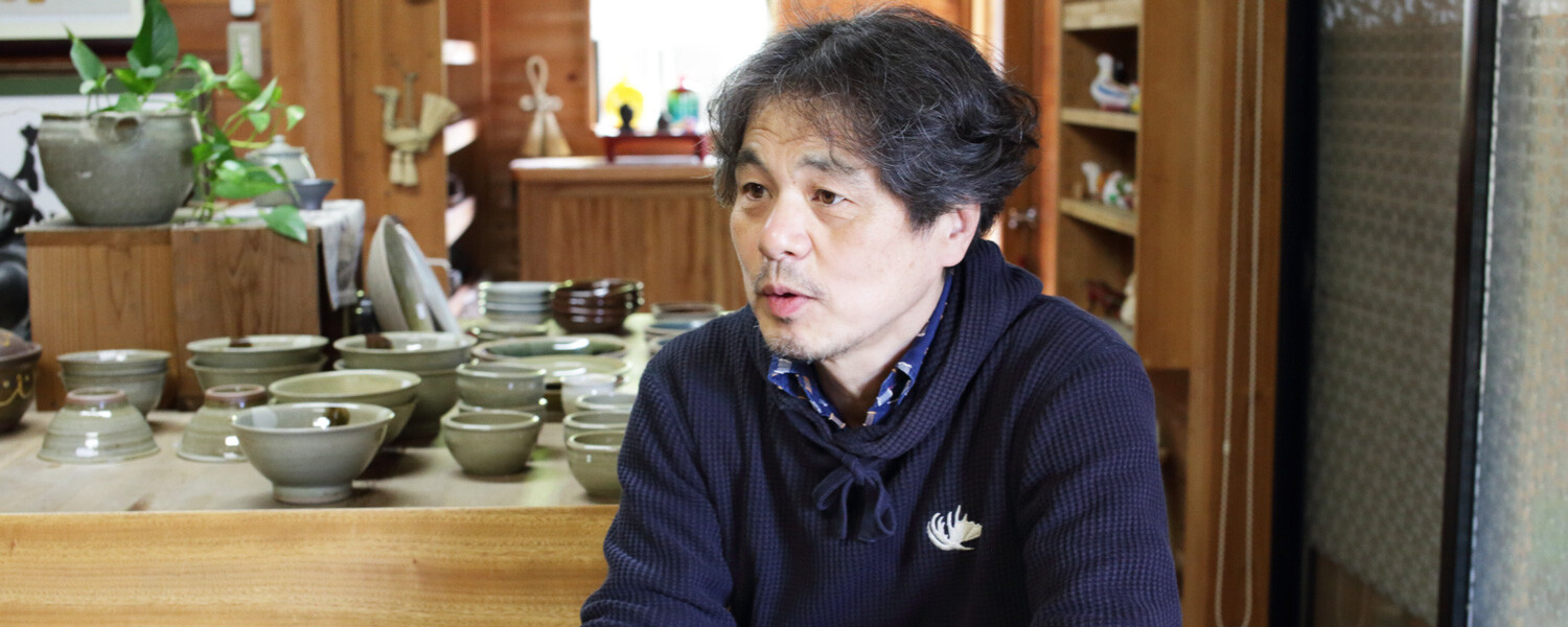 亮泰秋さんの奥さんが私の父親の妹で親戚なので、私が物心ついた頃から小代焼が自分の身近にずっとあったものだから。まぁ父親も母親も何個か焼き物を買ってたり、また親方の物もただでもらってたみたいで、必然的に家の中のものは全部小代焼だったんですよ。でもだからと言って焼き物をやりたいとかいうことではなかったんですよ。でも高校卒業して一応仕事について、けど腰を壊してですね。入院するために熊本に帰ってきたんですよ。