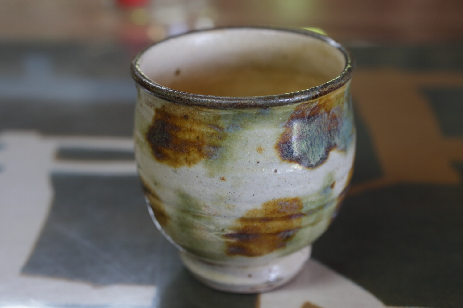 亮沖塩さんってロクロの名人がいたじゃないですか。あの人のことをよく話ししてて、融さんから「あなたは本当沖塩さんに本当よく似てる、ロクロが上手だから」って。でも沖塩さんはあまりにも上手だから何かねと。沖塩さんのレベルまで行ってないけど、そう言われると僕ももっと頑張らないとなって思ってました。倉敷に行った時に沖塩さんにお会いしたんですけど、すごい存在感だったですよ。展示場の物の置き方とか。この人すごいなと思ってから、何がすごいって食器しかないんですよ。その時に「持って行っていいよ」って言われて持って帰った急須をいまだに使ってるんですよ。本当にいいですよ。だからそれが俺も食器作ろうって思ったきっかけでしたね。魚座の上村さんからも言われていましたけど。「色んな展示会に行って物を見とった方がいい」って言われて、色々と見に行ったんですけど本当面白くないんですよ。誰かの作陶展とか。魚座の食器の展示会は面白かったですね。やっぱり自分も食器が好きなんだなと。沖縄の大嶺 實清さんのものとかも10枚重ねとかで置いてあるんですよ。ワクワクしましたね。