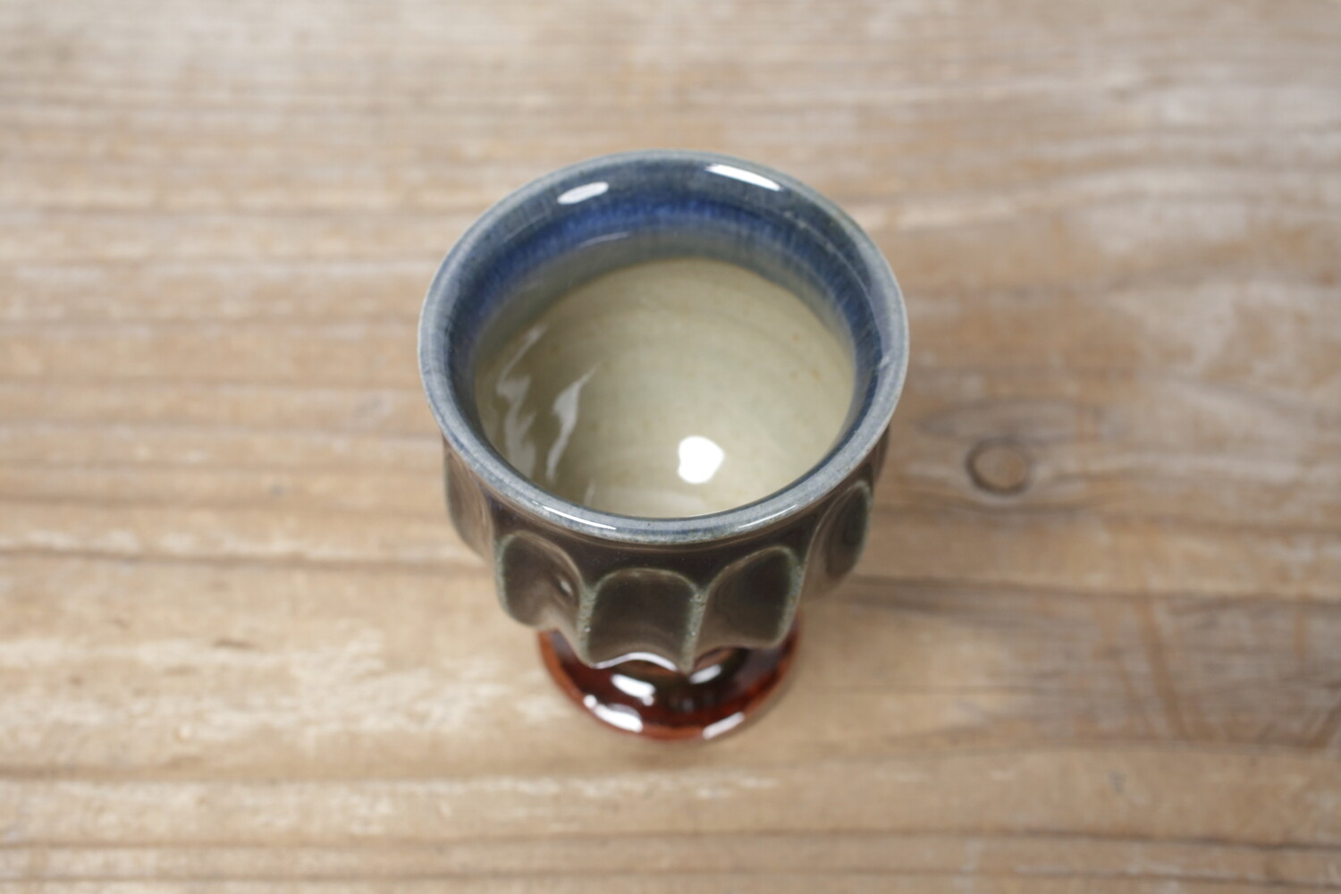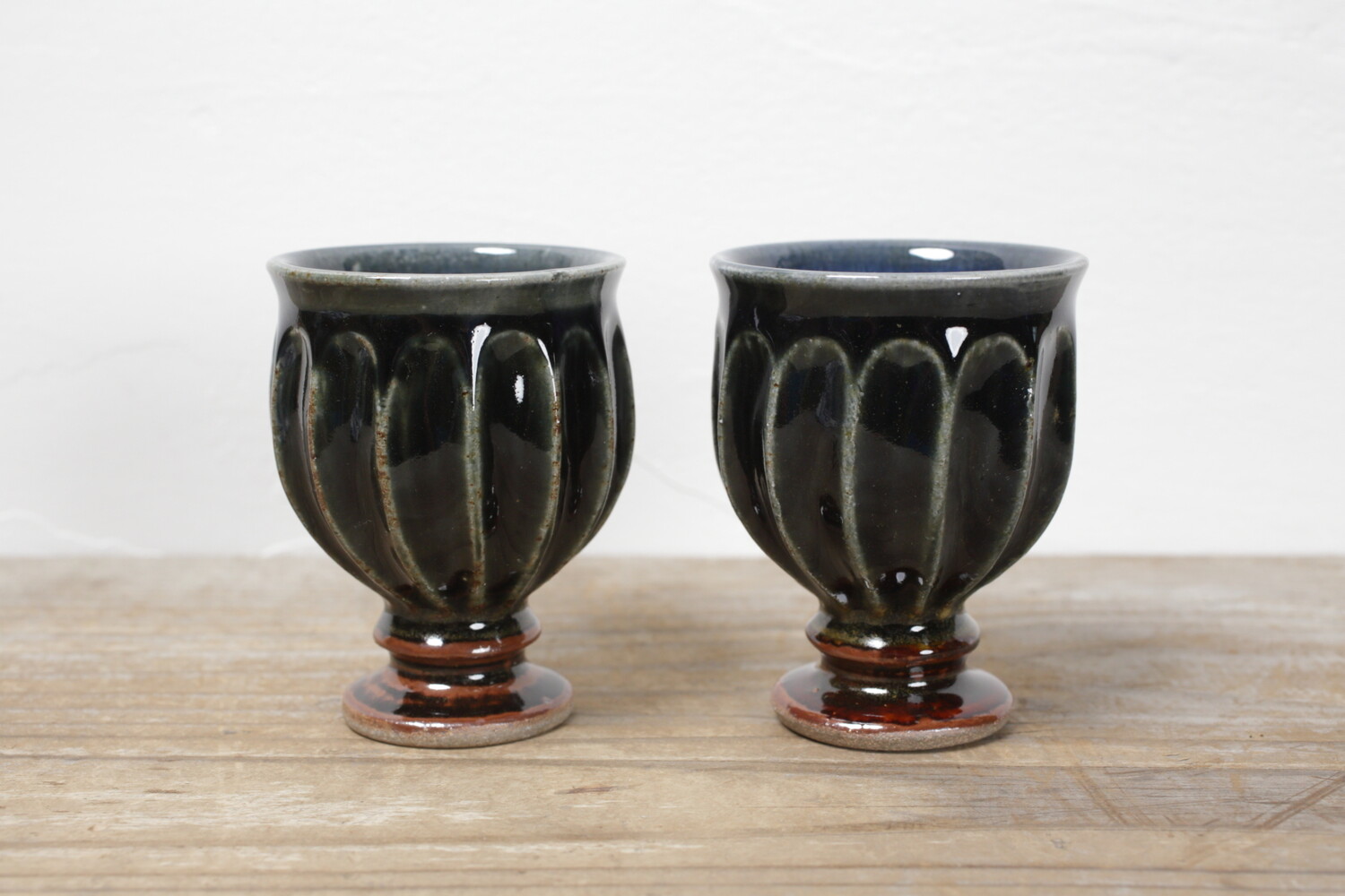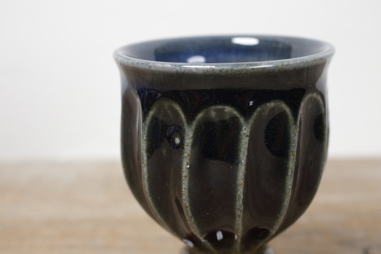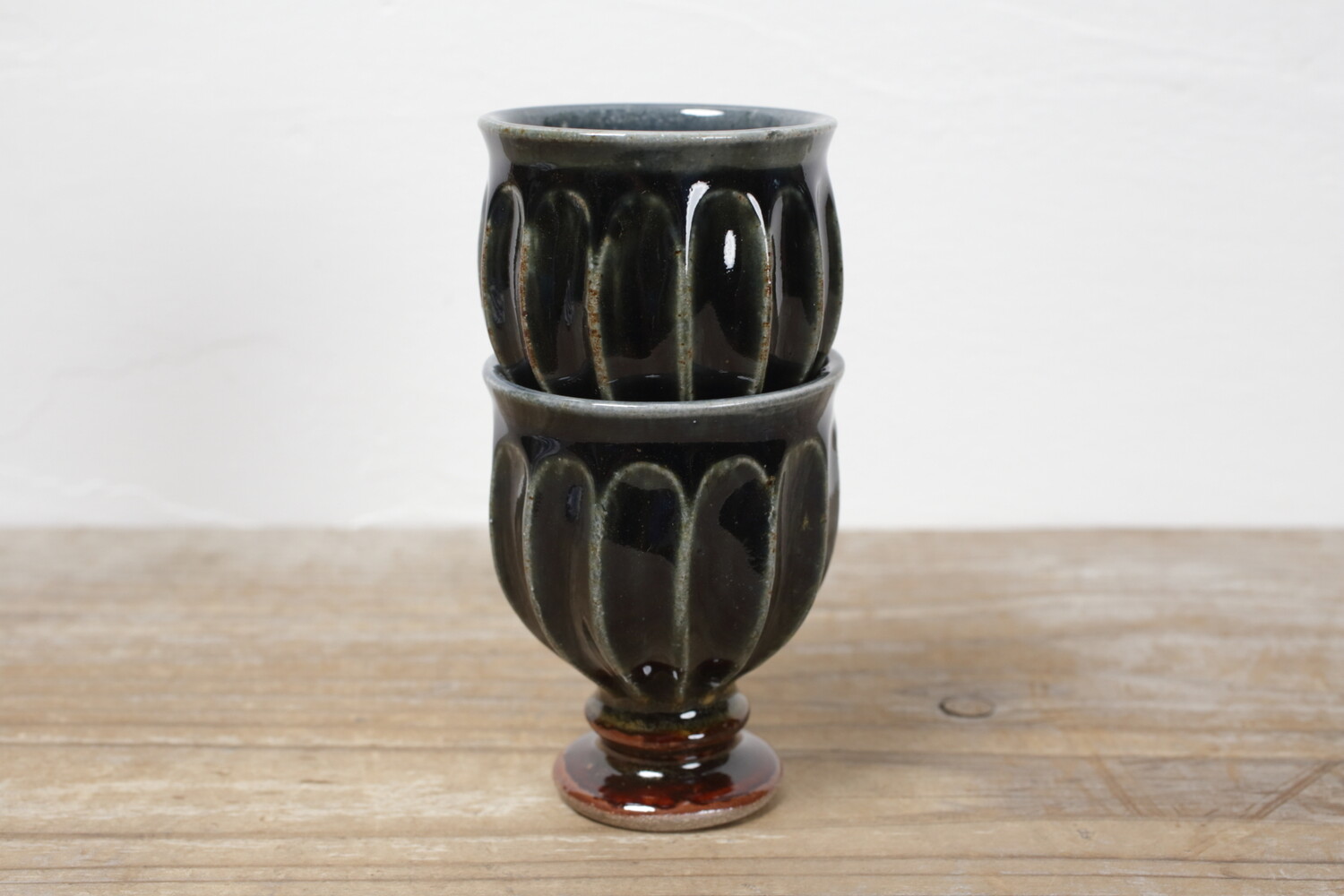重ねて収納できる足付きグラスを真弓さんにお願いし作って頂いてから、年月が経ちました。今では3サイズ展開になり、手に持った具合やお好みの大きさ等でお選び頂けます。コーヒーやワインにいい大きさでしょう。