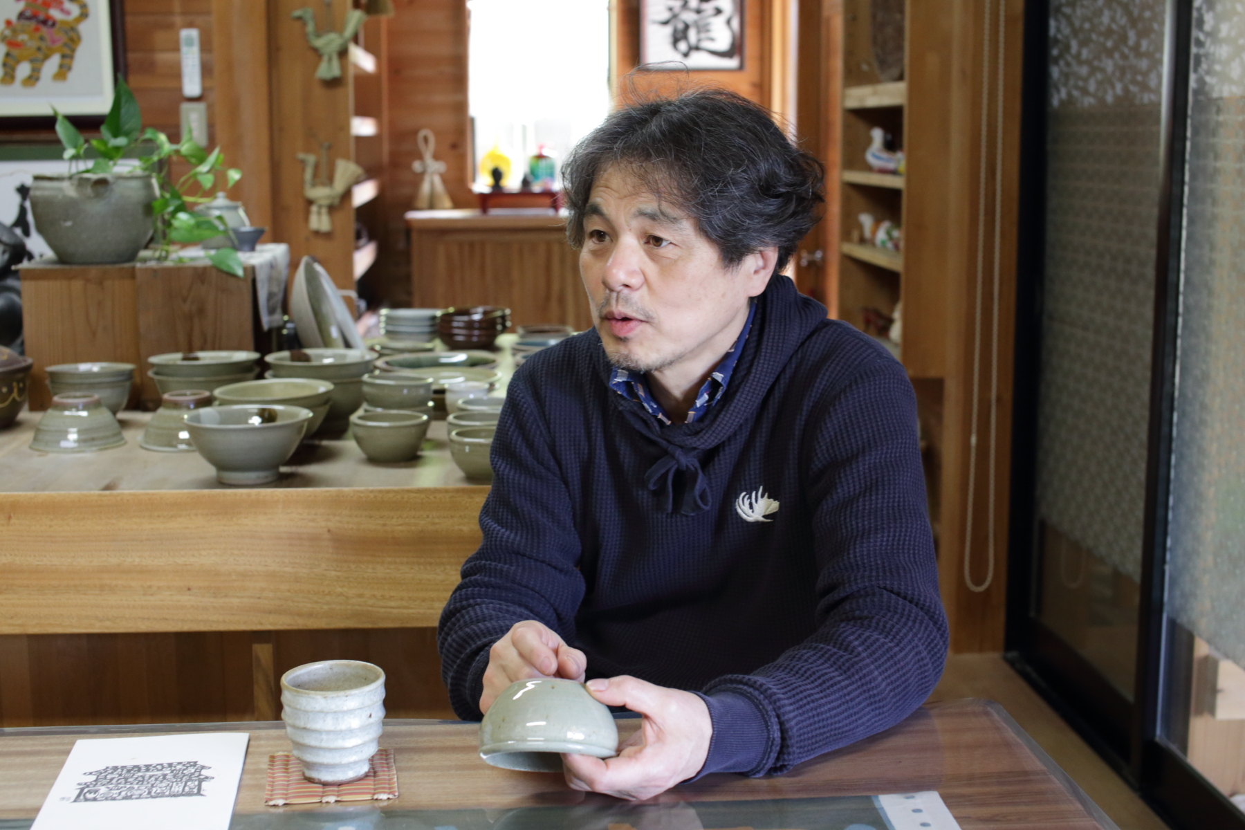 直径13.5cmほどの蓋物。口径が広いので、毎日お使い頂くのにも使い勝手がいい作りです。調味料を入れたり、梅干しや佃煮、薬味や作り置きの肉味噌などにもいいでしょう。