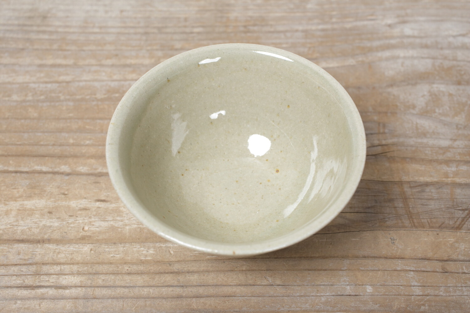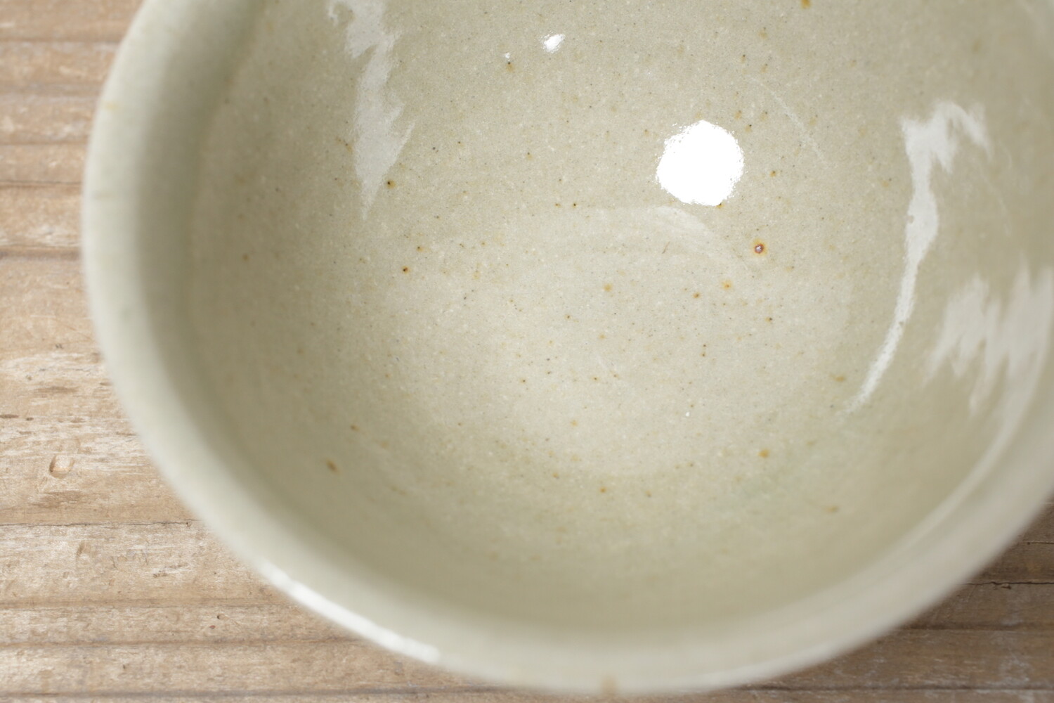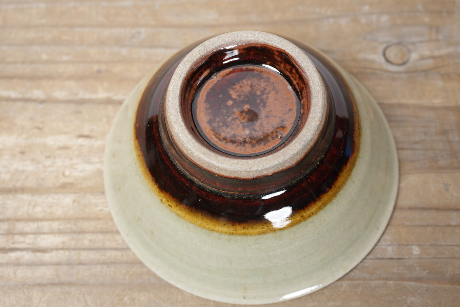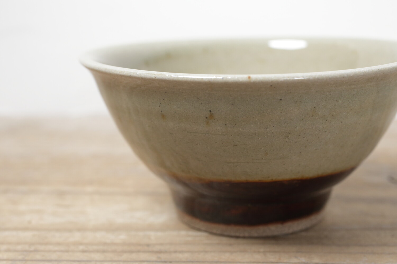 男女問わずお使いいただけるサイズの飯碗です。高台と下部に掛かった明るく美味しそうな色合いの飴釉と透明釉の組み合わせが軽やかです。程よいアクセントで他の器と組み合わせしやすいのもいいですね。