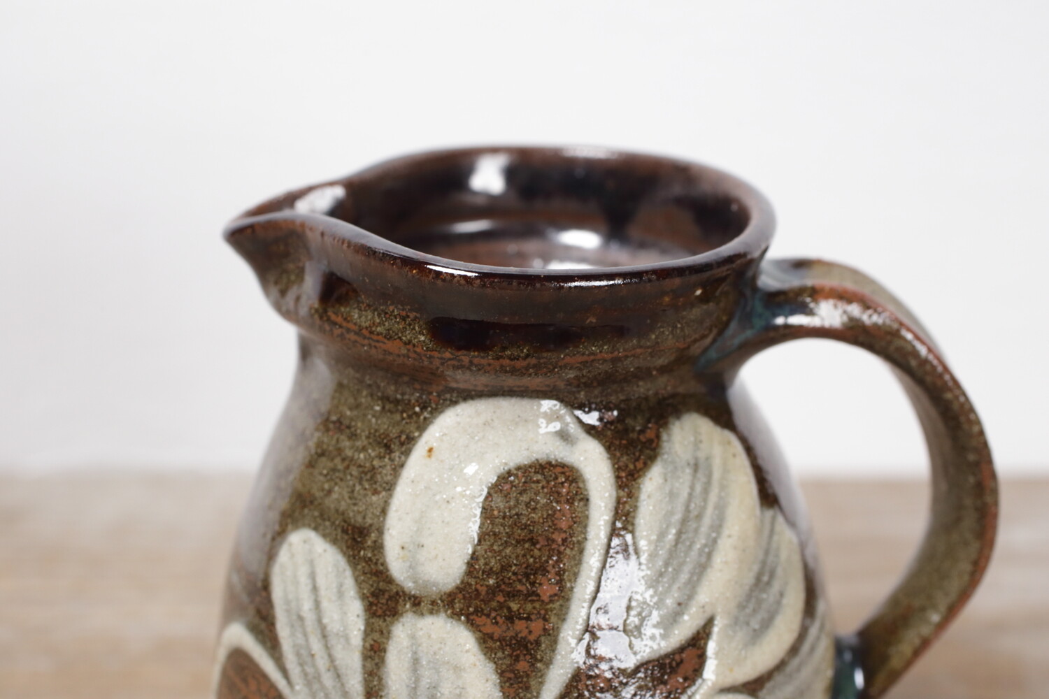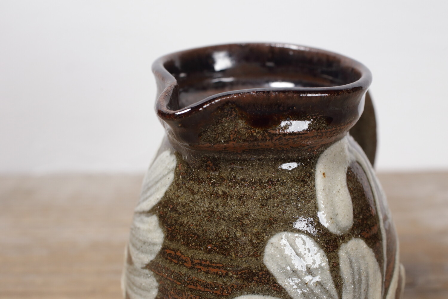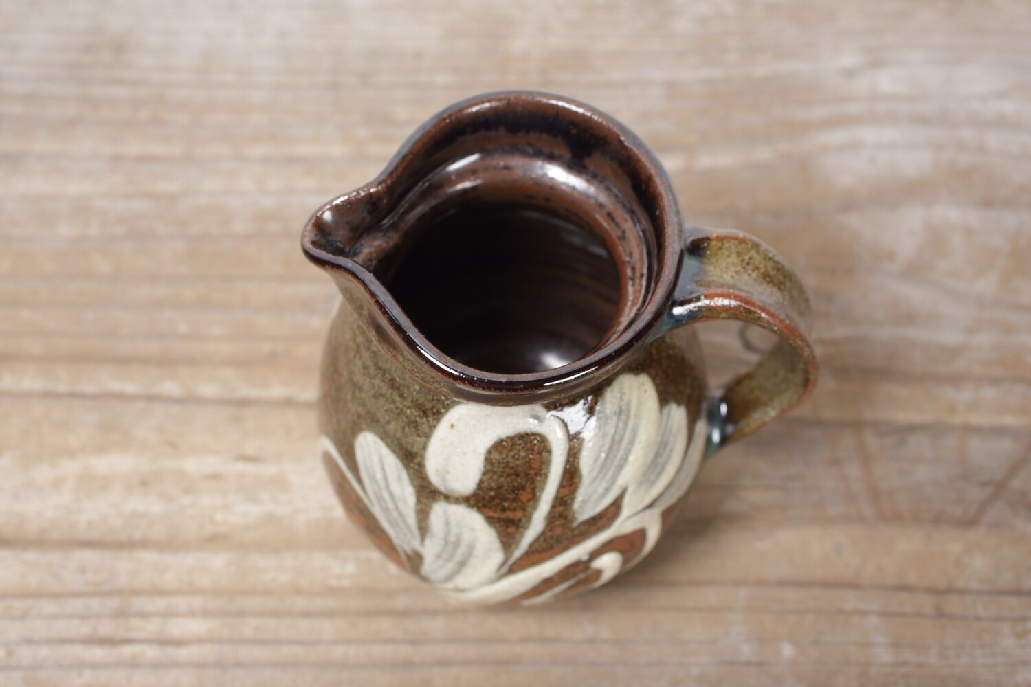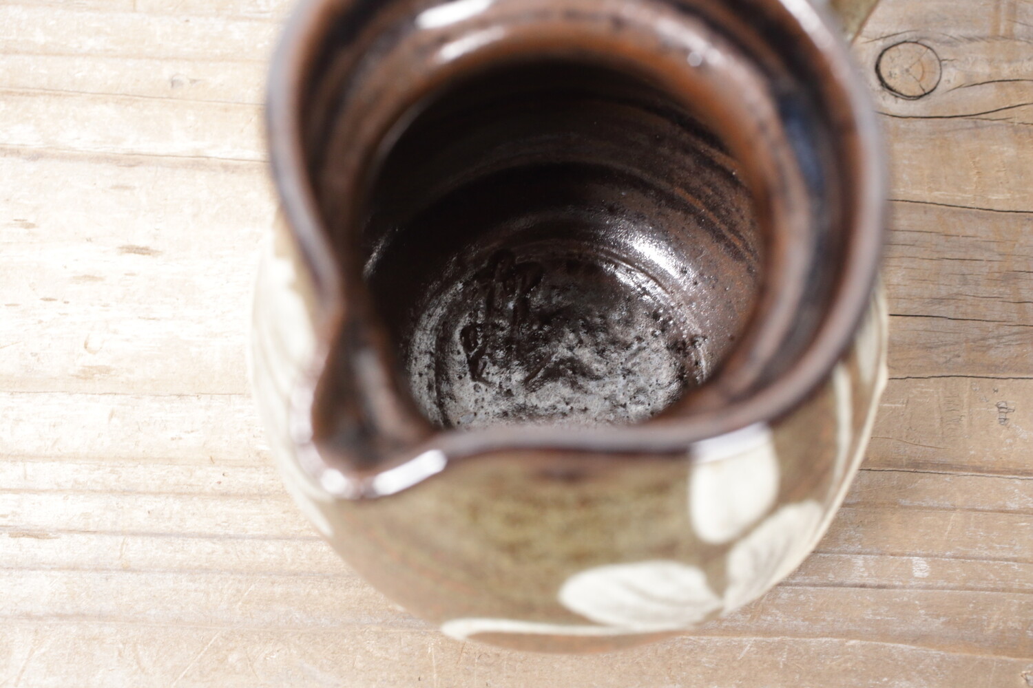 タレやドレッシングなどにちょうどいい小ぶりのピッチャーです。ピッチャーに描かれた唐草文様は、お庭や川沿いで摘んだちょっとしたさりげない草花を生けてもいいですね。