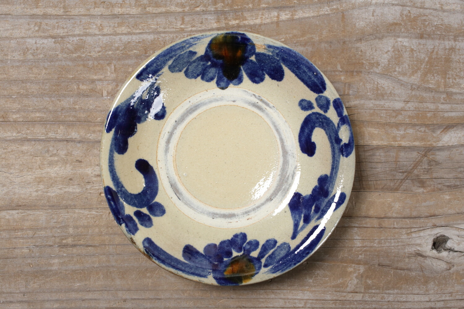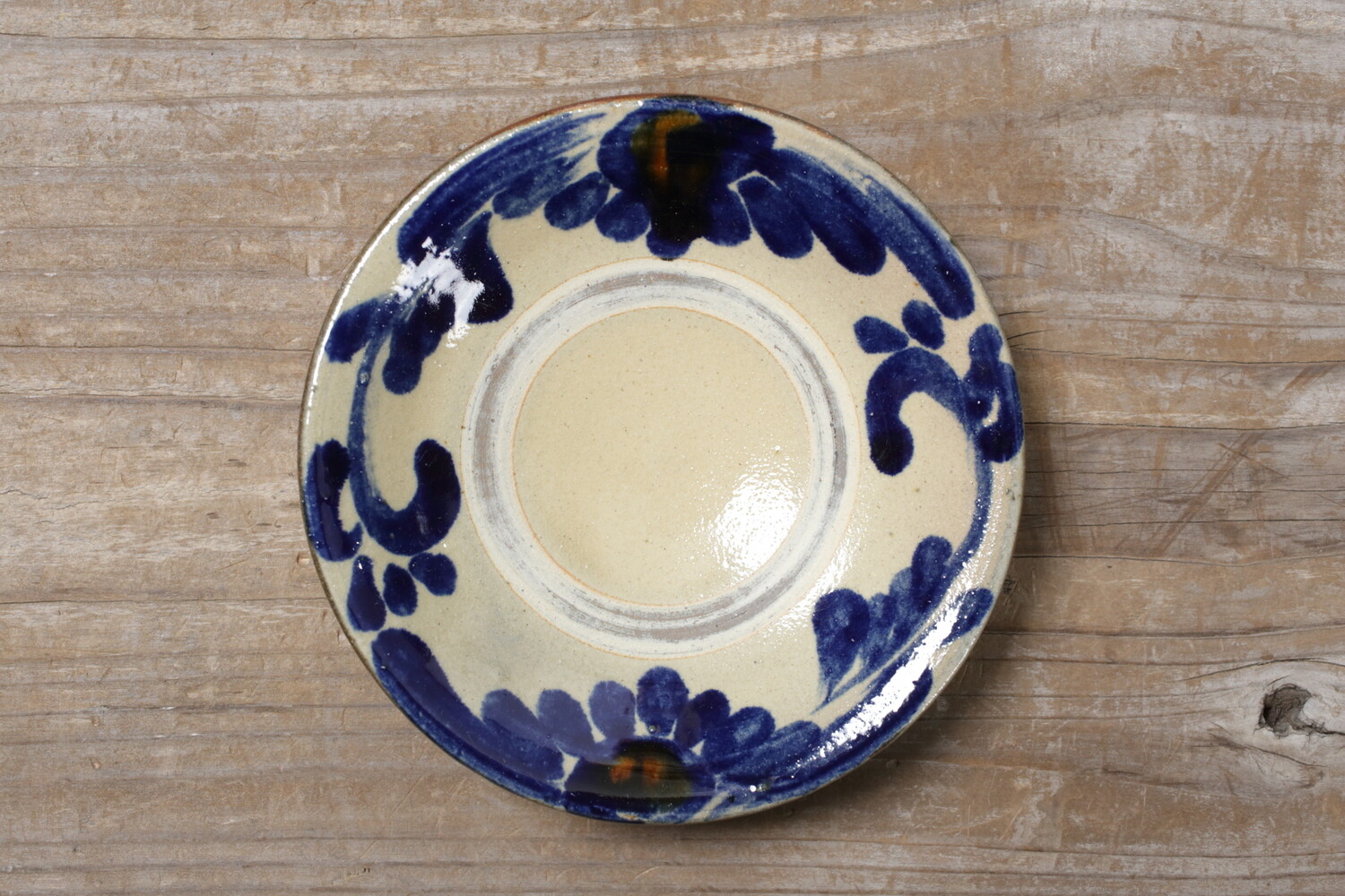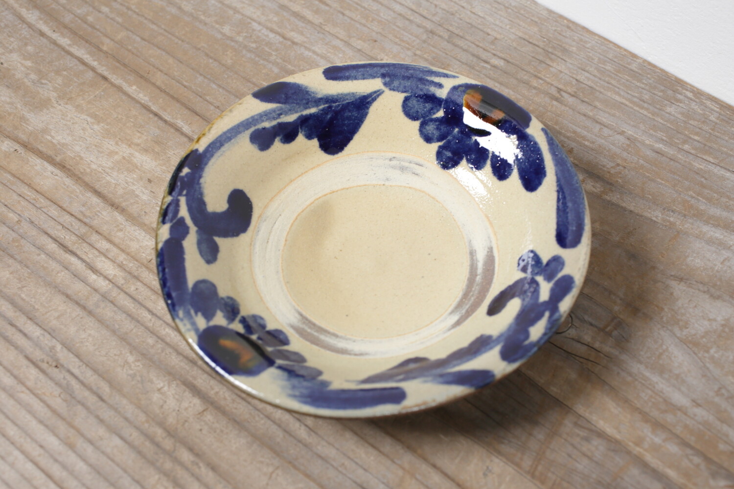 沖縄の伝統的な紋様 唐草模様が描かれた五寸皿。おかずやサラダなど、とりわけ皿として使い勝手のいい直径15.5cmほどの小皿です。デザートなどにもいいでしょう。