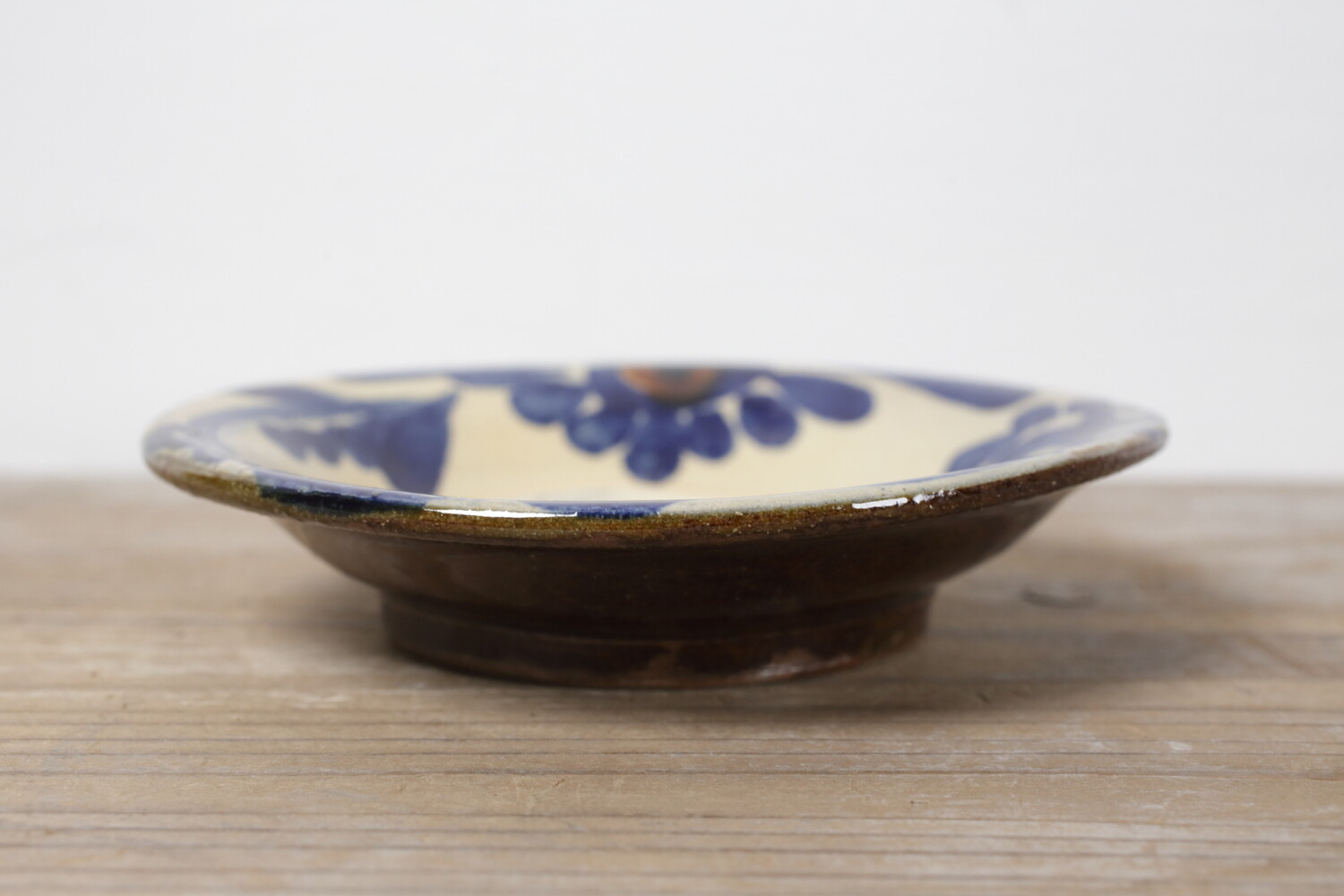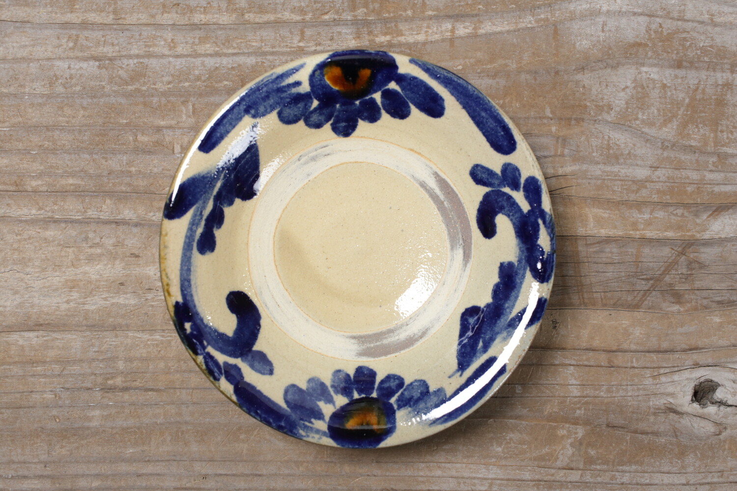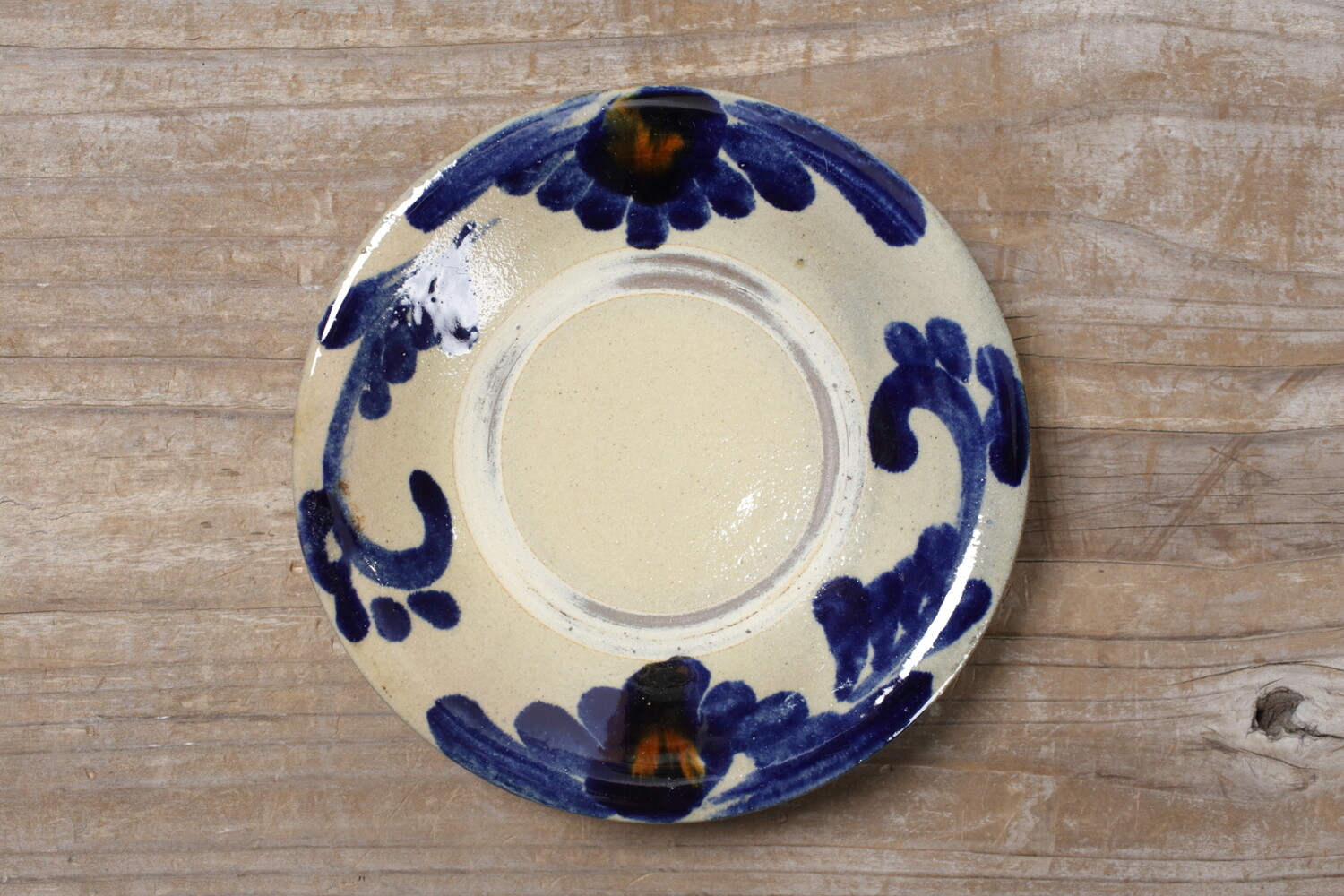 沖縄の伝統的な紋様 唐草模様が描かれた五寸皿。おかずやサラダなど、とりわけ皿として使い勝手のいい直径15.5cmほどの小皿です。デザートなどにもいいでしょう。