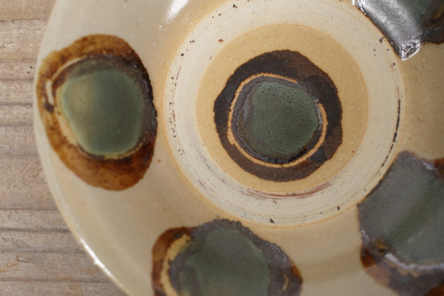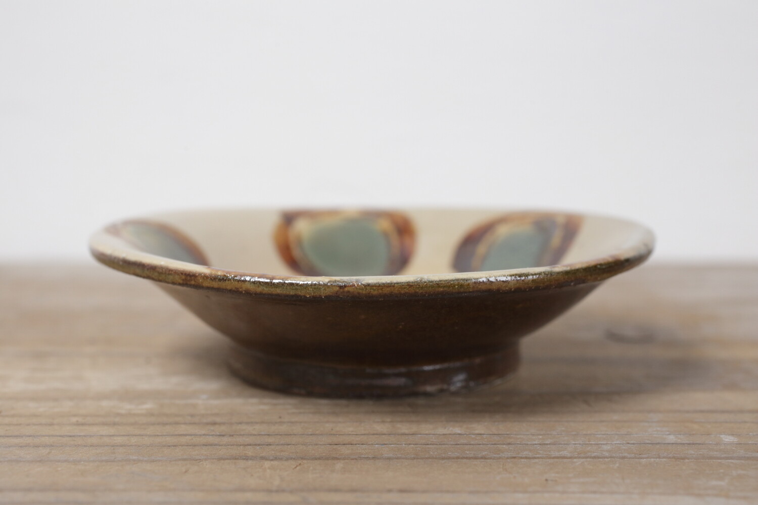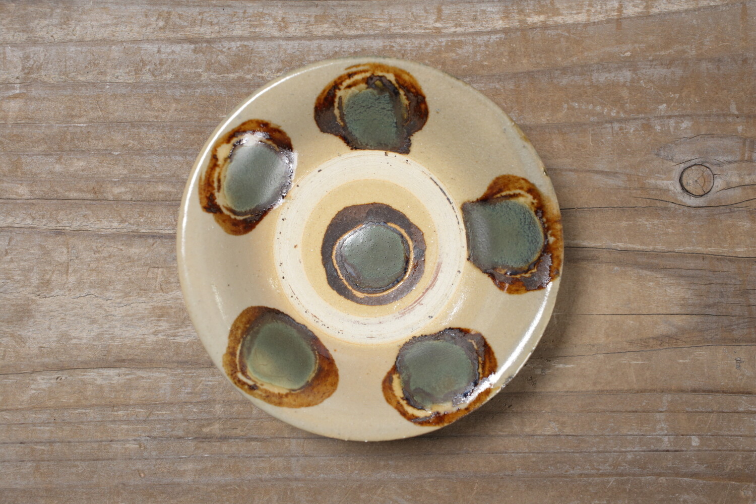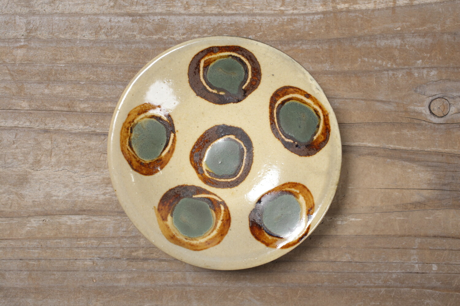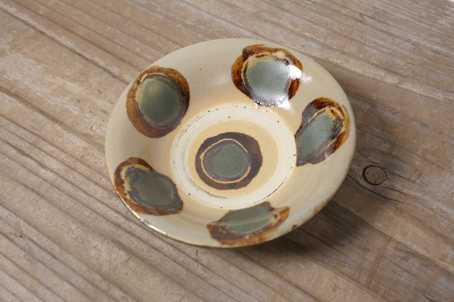 直径12.5cmほどの大きさの小皿に楽しげな丸紋が描かれた四寸皿。昔ながらの取り皿のサイズです。お酒のあてやチーズ、ナッツなどにもいいでしょう。