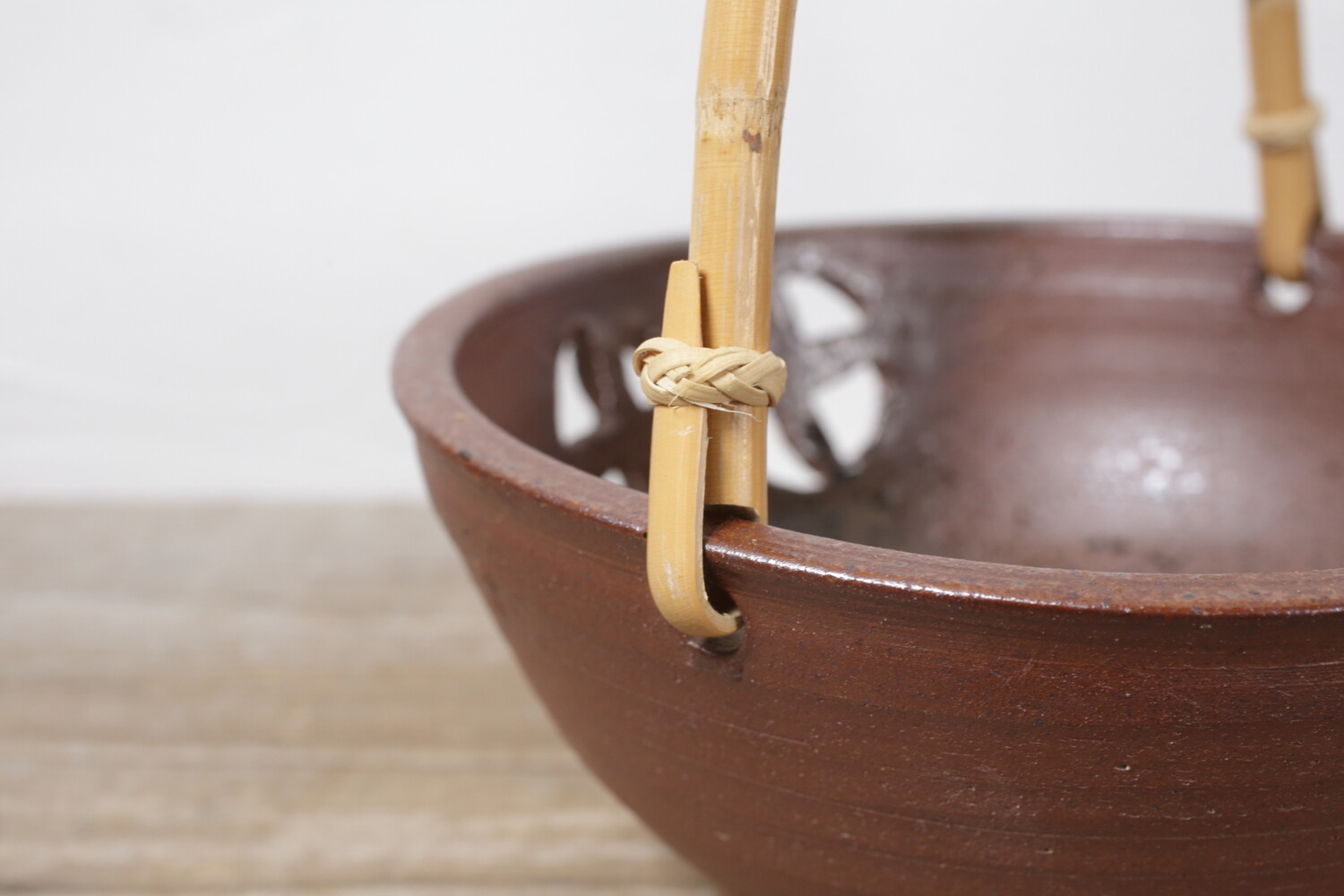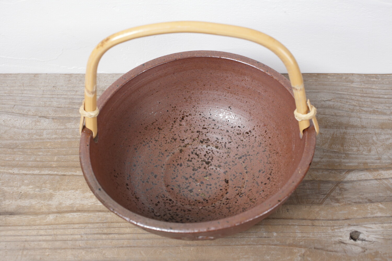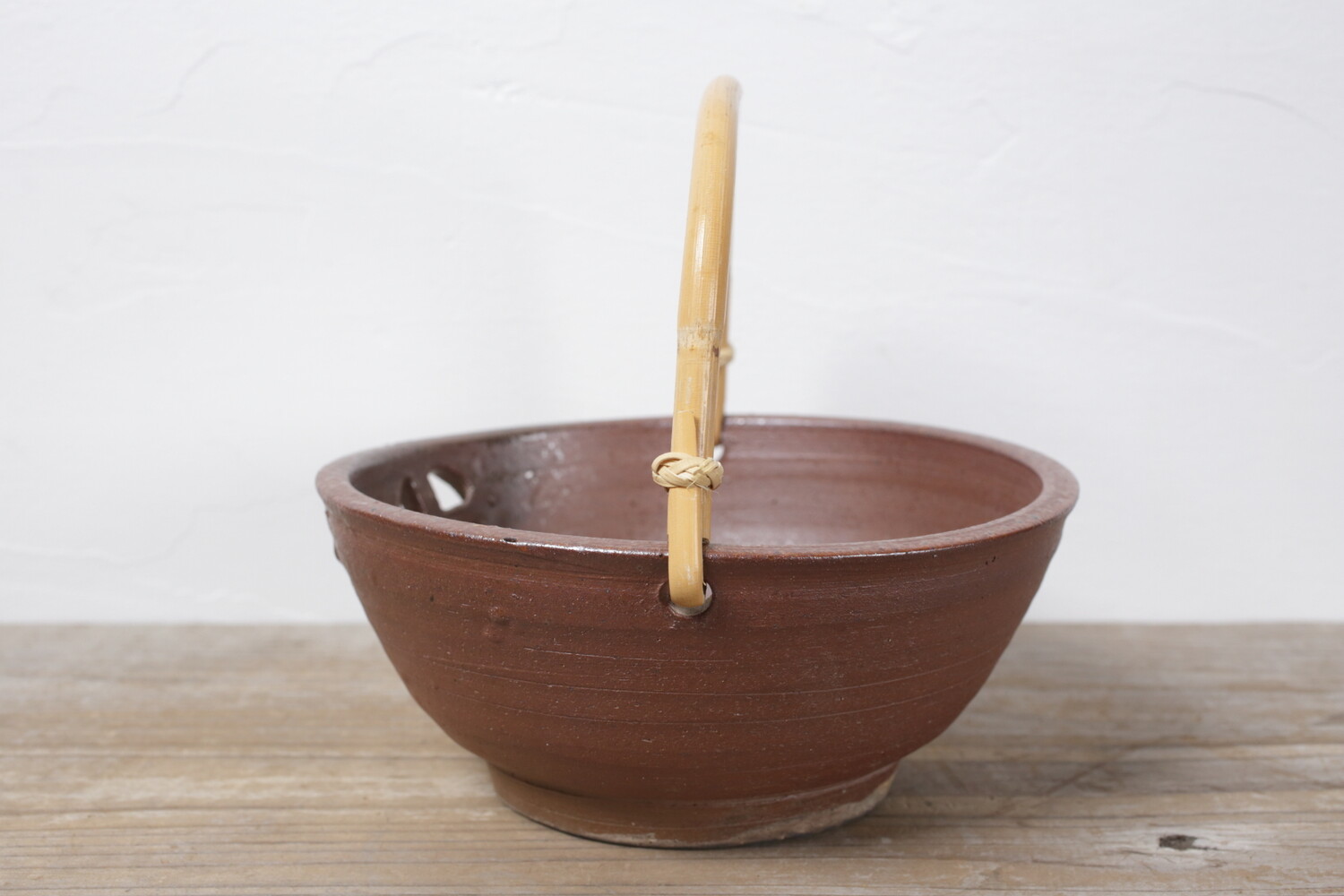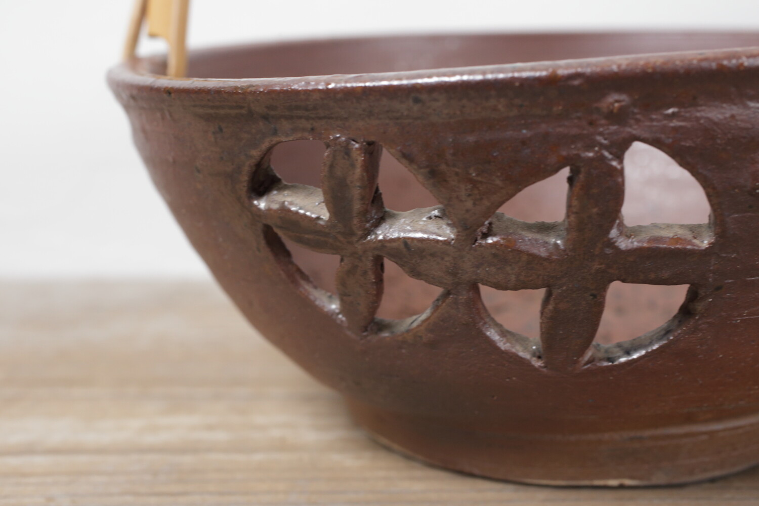 竹の持ち手がついた宮城正亨さんご本人による菓子鉢。工房にお邪魔すると、サーターアンダギーやちんすこう、お菓子などが入って、お茶と共に頂戴します。お菓子を入れてお庭やベランダ、外へピクニックなどにもいいでしょう。栗やシークワーサーなどを入れてもいいですね。果物や野菜入れとしてもいいでしょう。