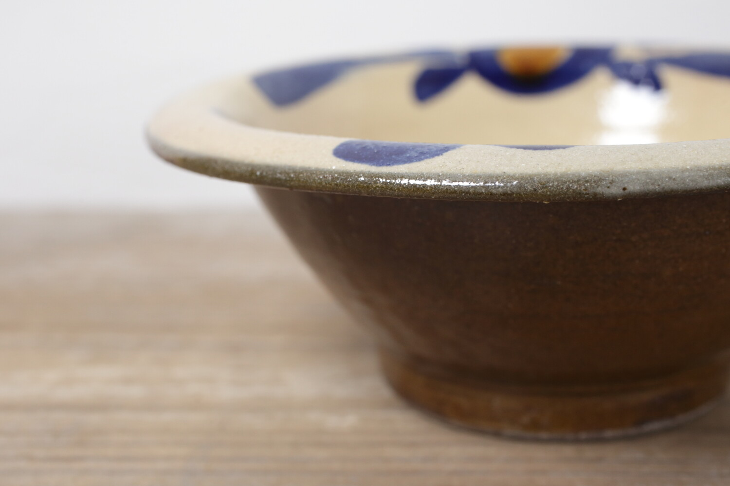 沖縄の言葉でワンブーと呼ばれる縁がついた沖縄の伝統的な形の器です。縁を含め直径18.5cmほどの大きさは、お二人分の和え物や果物。また生野菜の横にディップを添えて、食卓に出してもテーブルが楽しくなることでしょう。