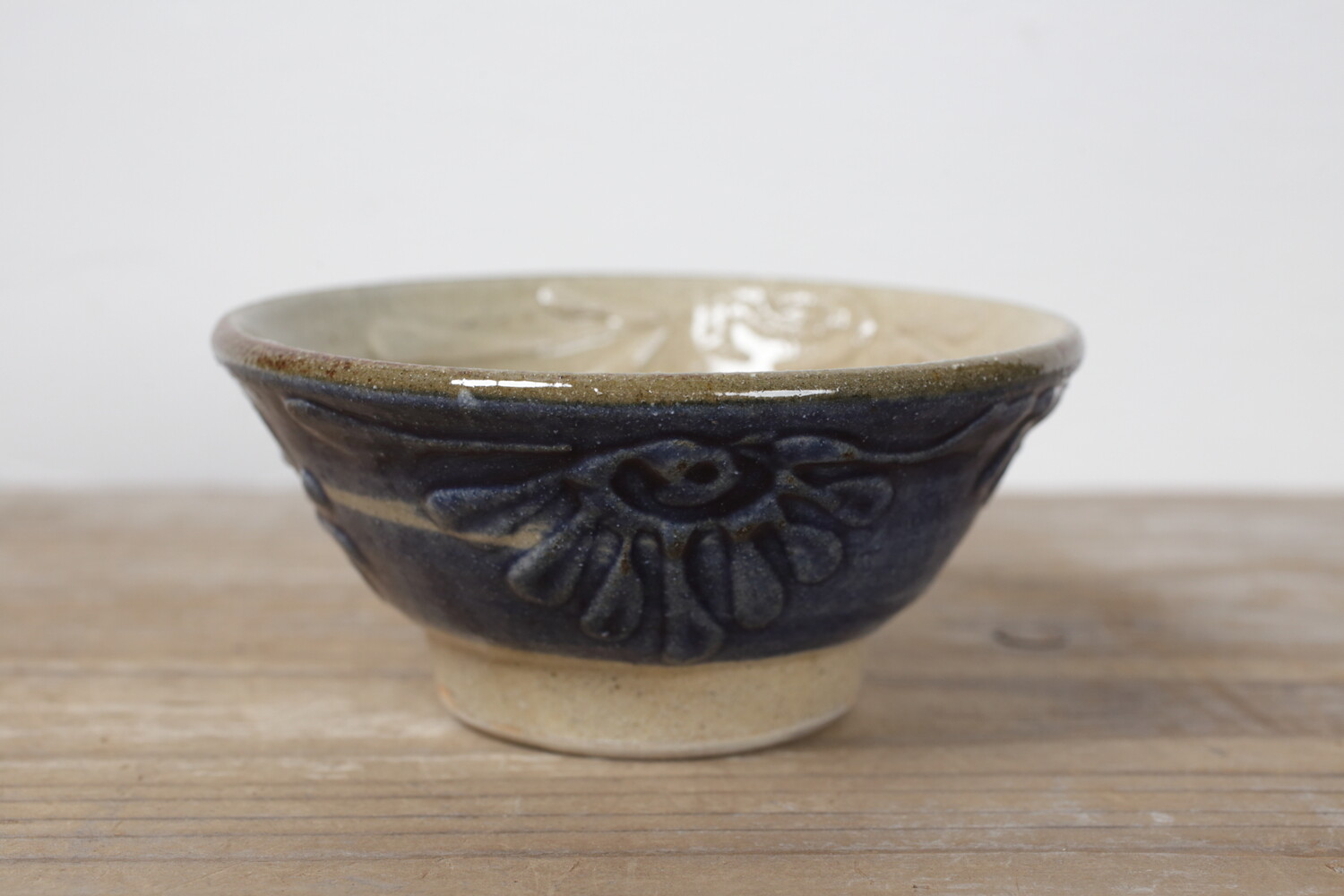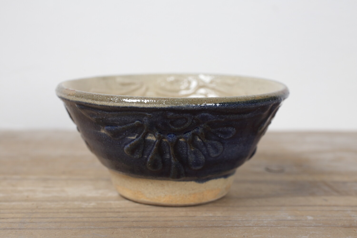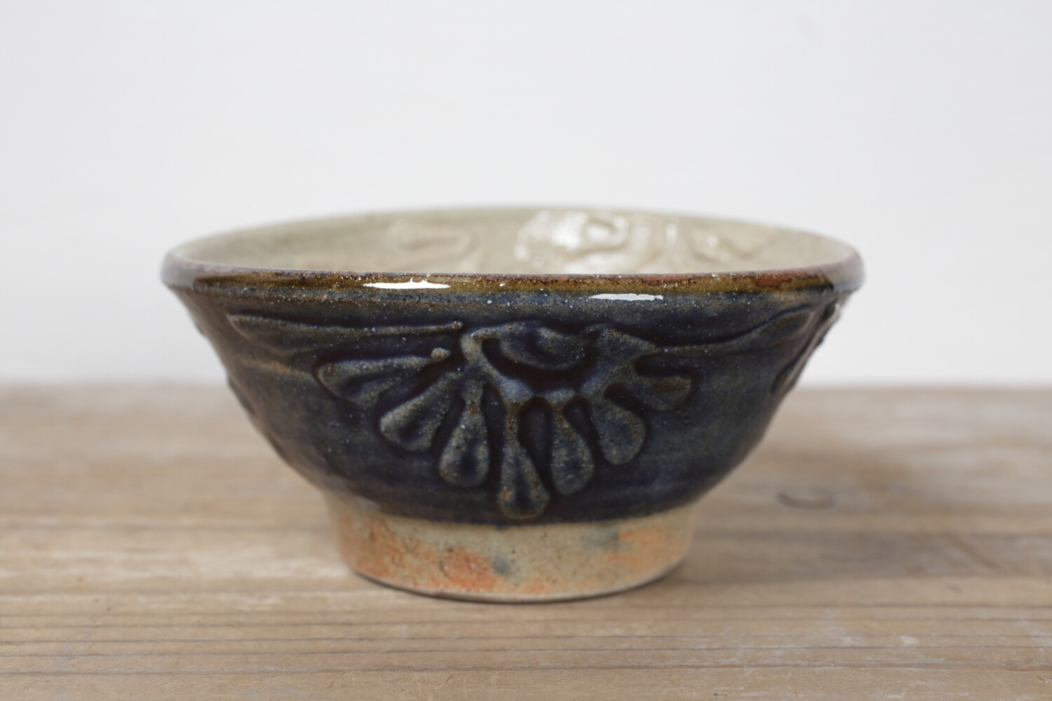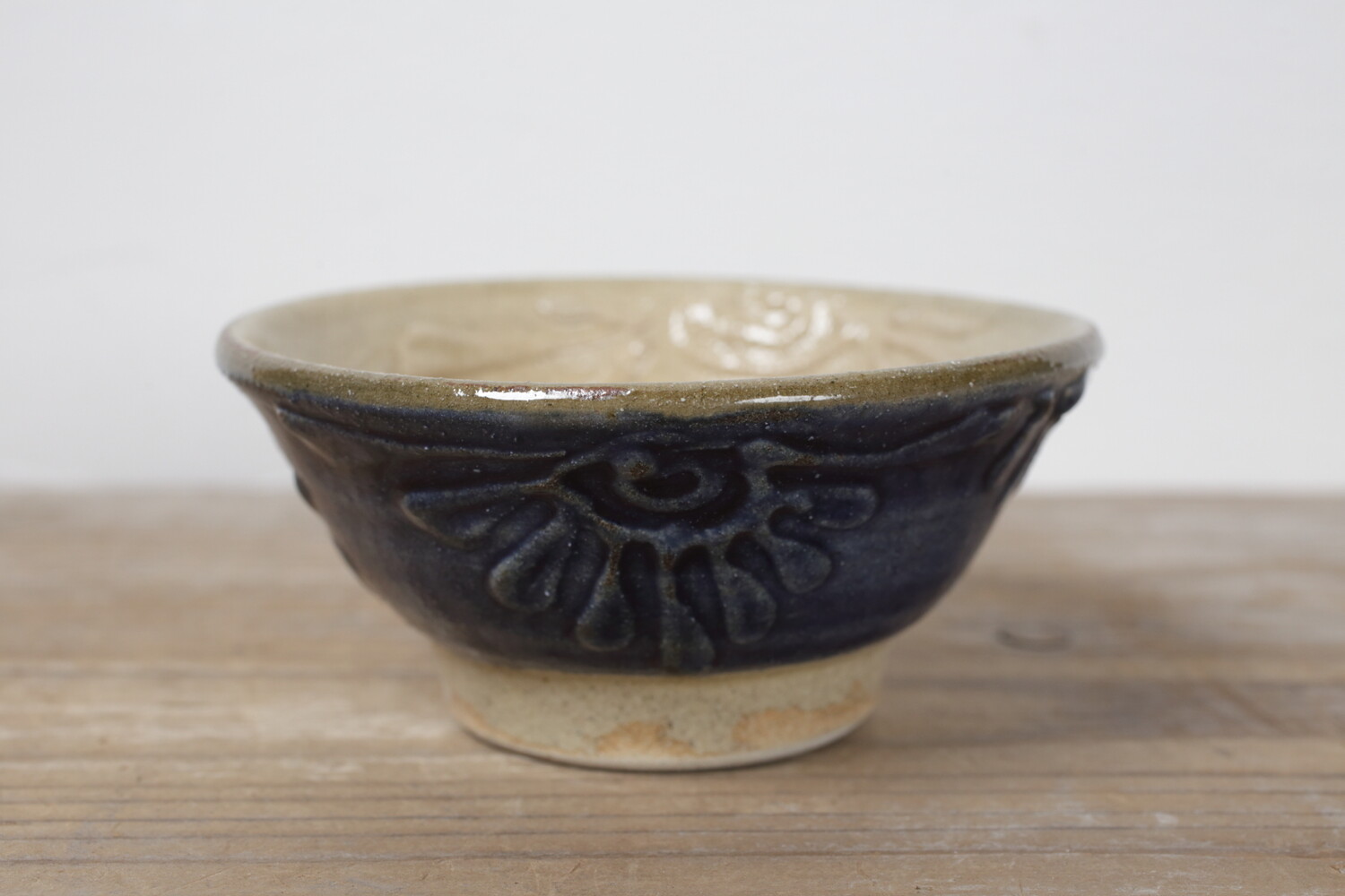 4寸碗はご飯茶碗の中サイズの大きさです。男女問わずお使い頂けます。沖縄の伝統的紋様 唐草模様がイッチンで描かれその上に釉薬が掛けられているため、イッチンの凹凸が表情のアクセントとなっています。