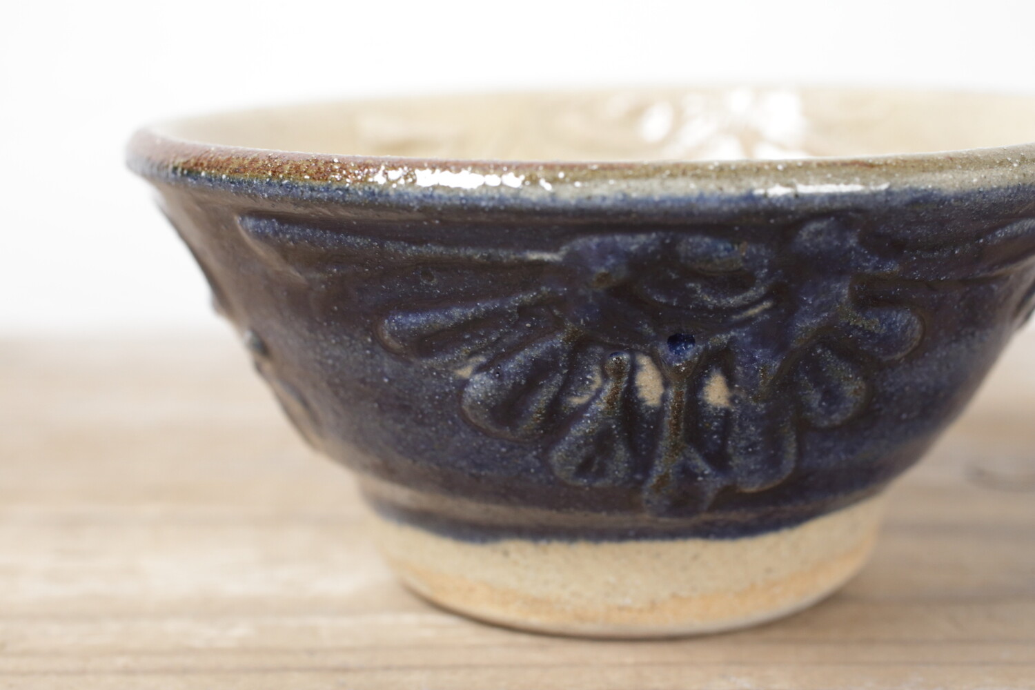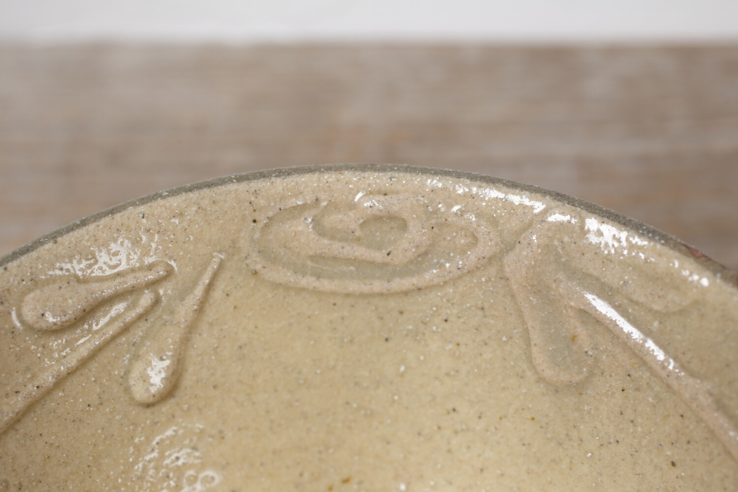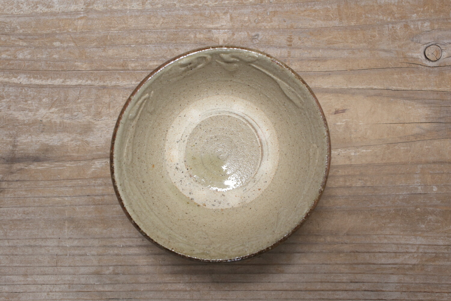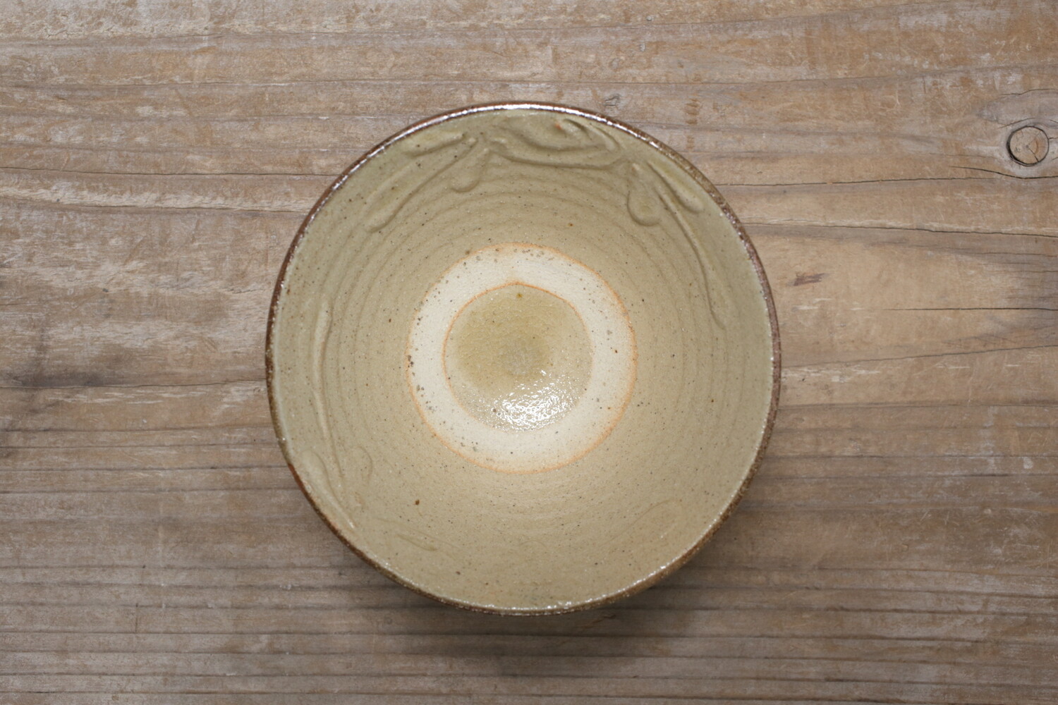 4寸碗はご飯茶碗の中サイズの大きさです。男女問わずお使い頂けます。沖縄の伝統的紋様 唐草模様がイッチンで描かれその上に釉薬が掛けられているため、イッチンの凹凸が表情のアクセントとなっています。