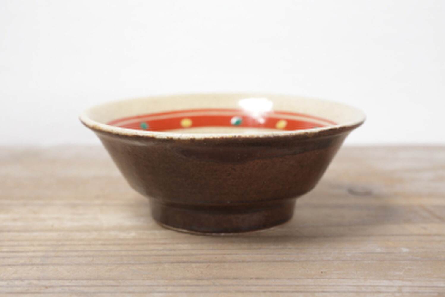 祝儀の色でもあるためか、どこかおめでたい印象も感じる赤絵。ベトナム北部の安南で作られた底が平らな鉢から形がきているため、安南鉢と呼ばれています。酢の物や和え物、あんみつやアイスクリームなどのデザート小鉢としてもいいでしょう。