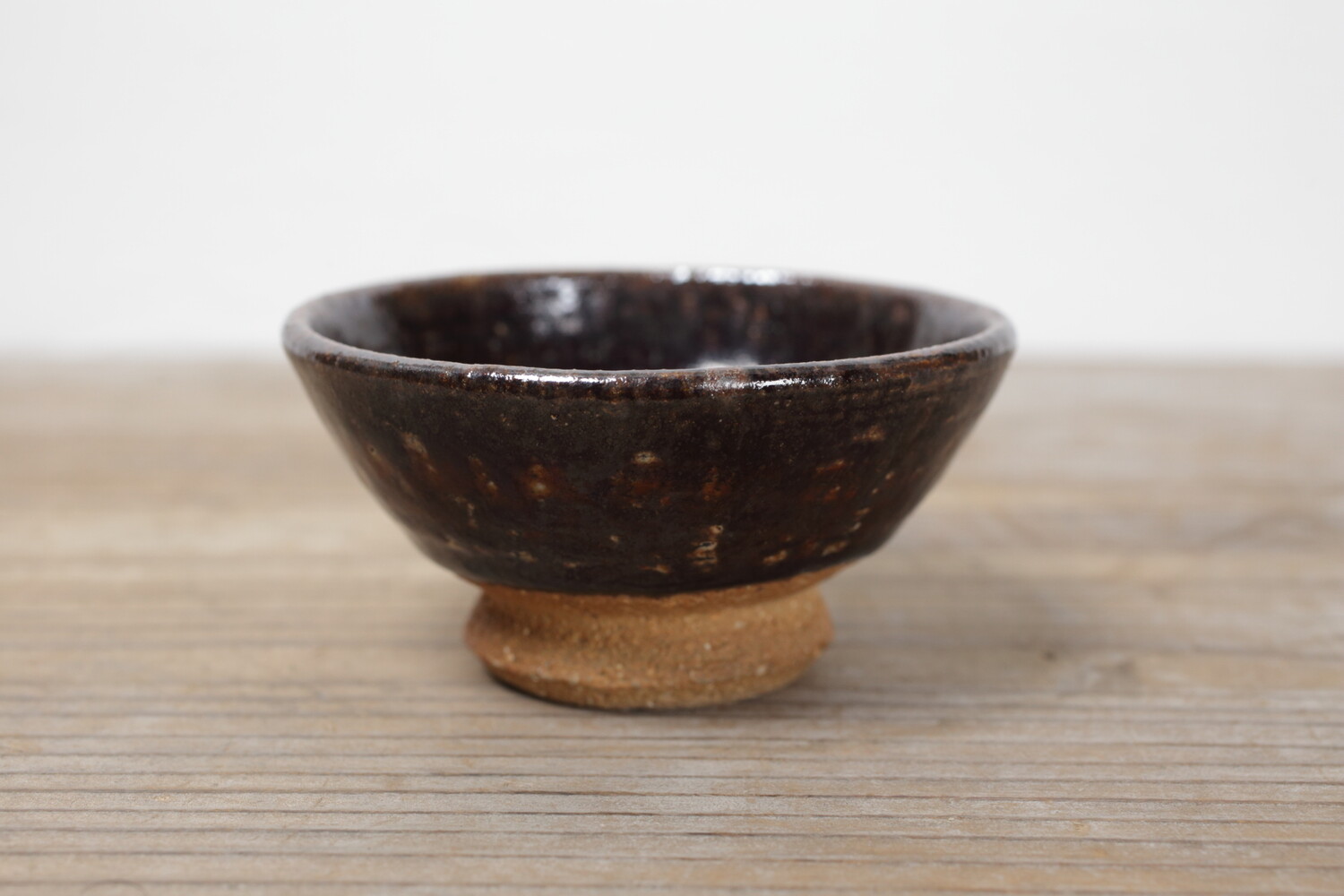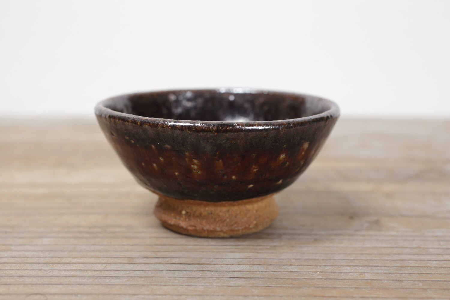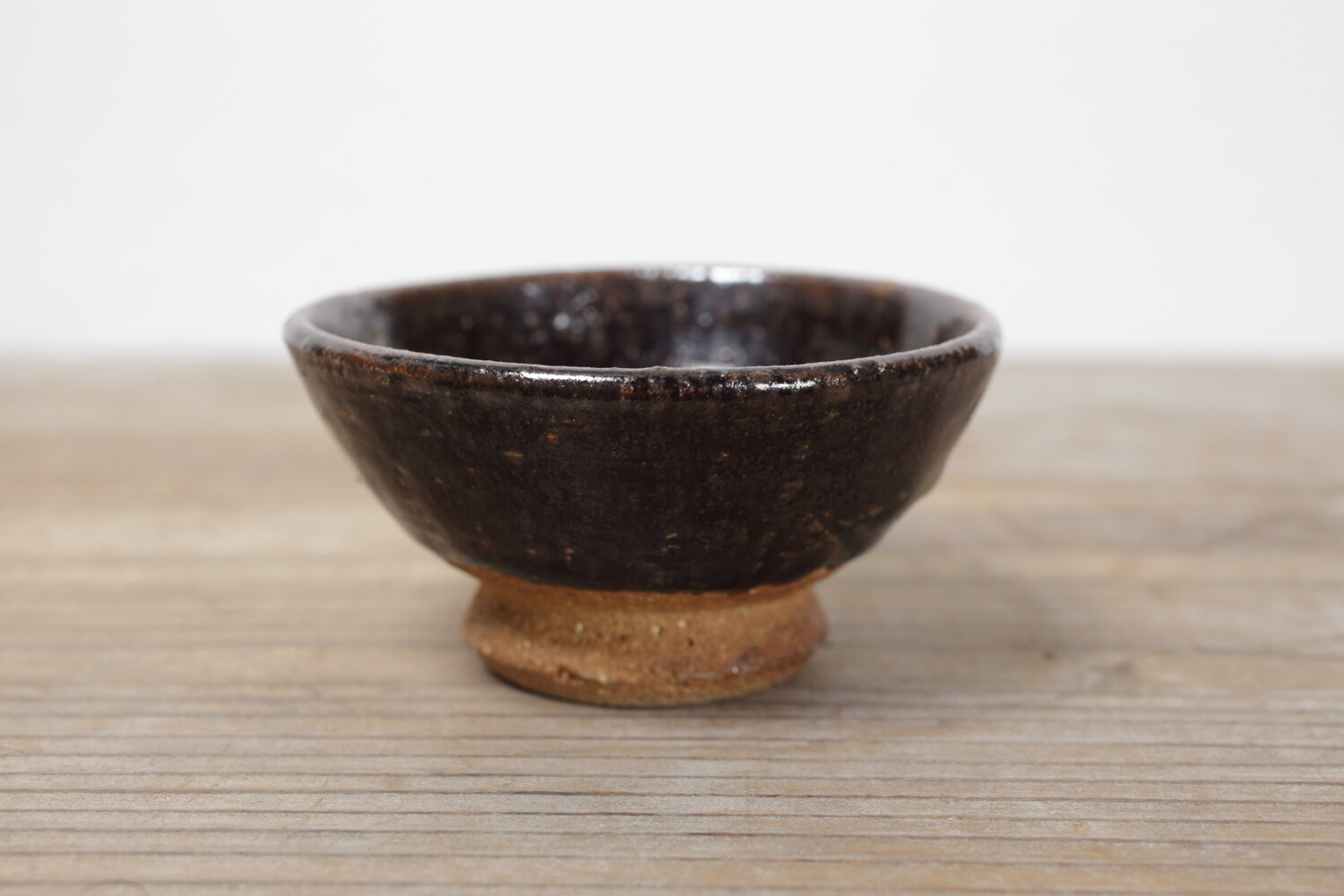 益子の代表的な黒釉のぐい呑み。どこかぽてっとしていて、横から見ても愛らしさが漂います。