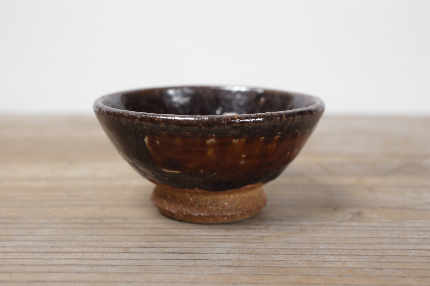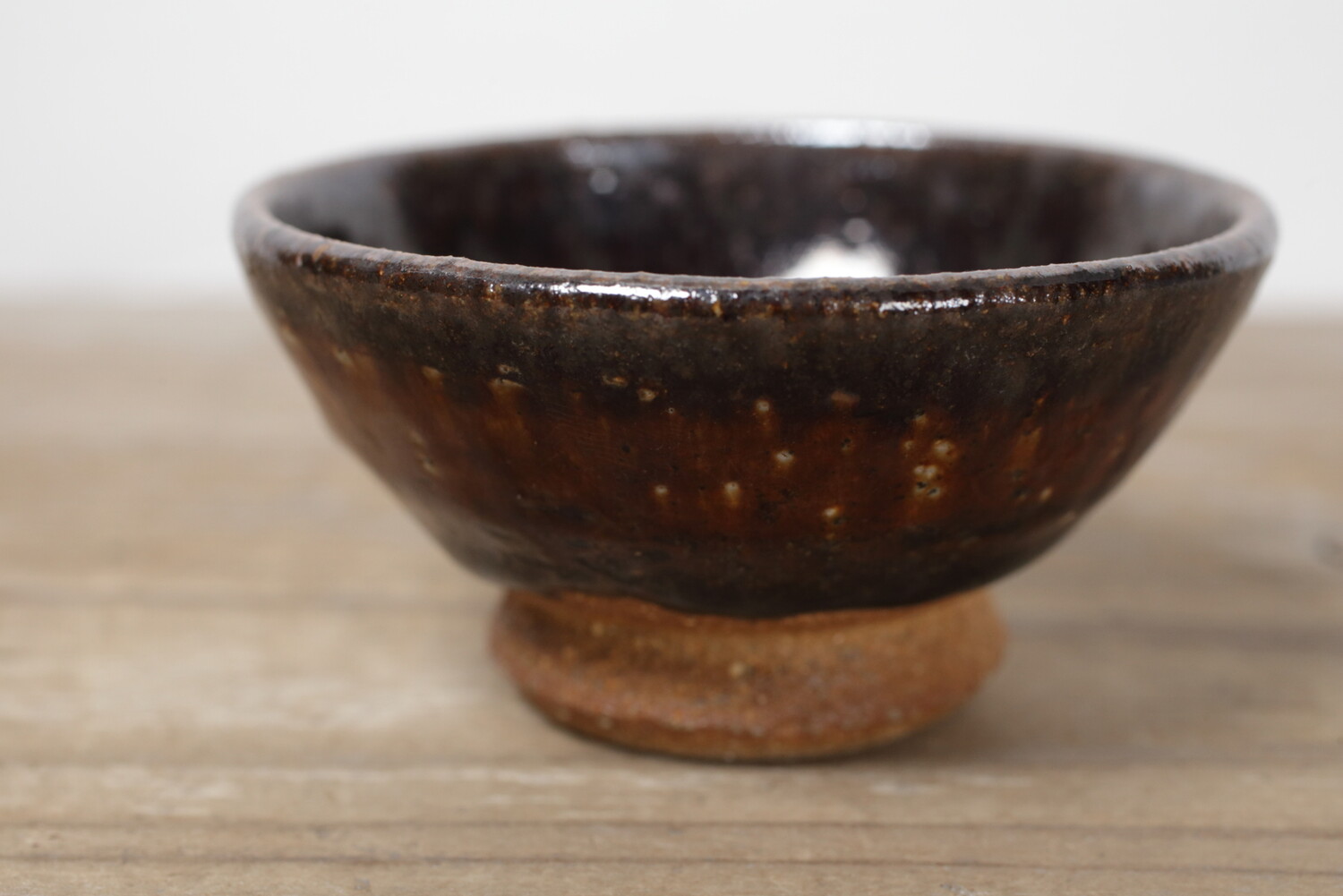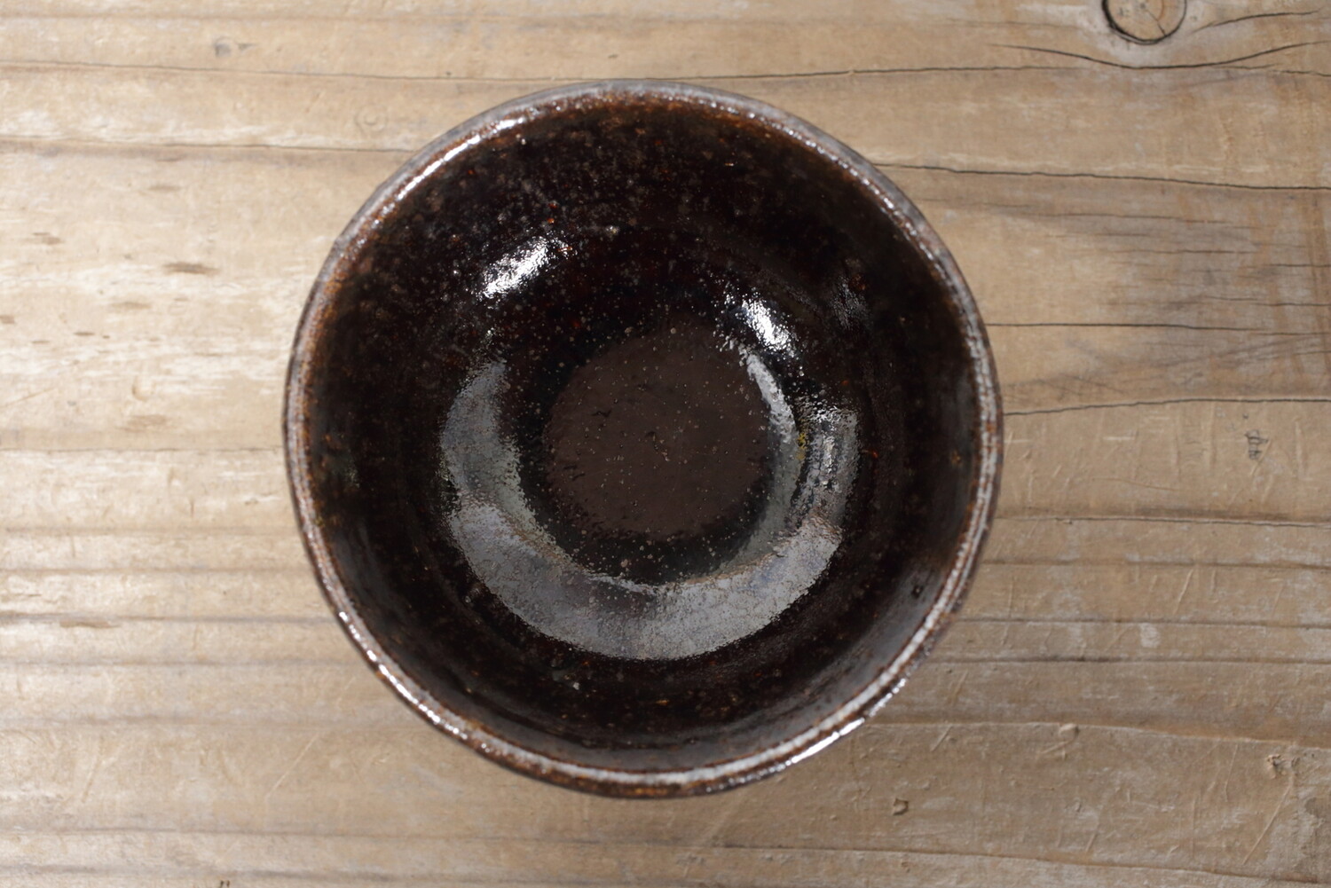 益子の代表的な黒釉のぐい呑み。どこかぽてっとしていて、横から見ても愛らしさが漂います。