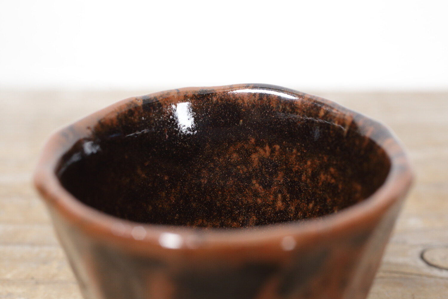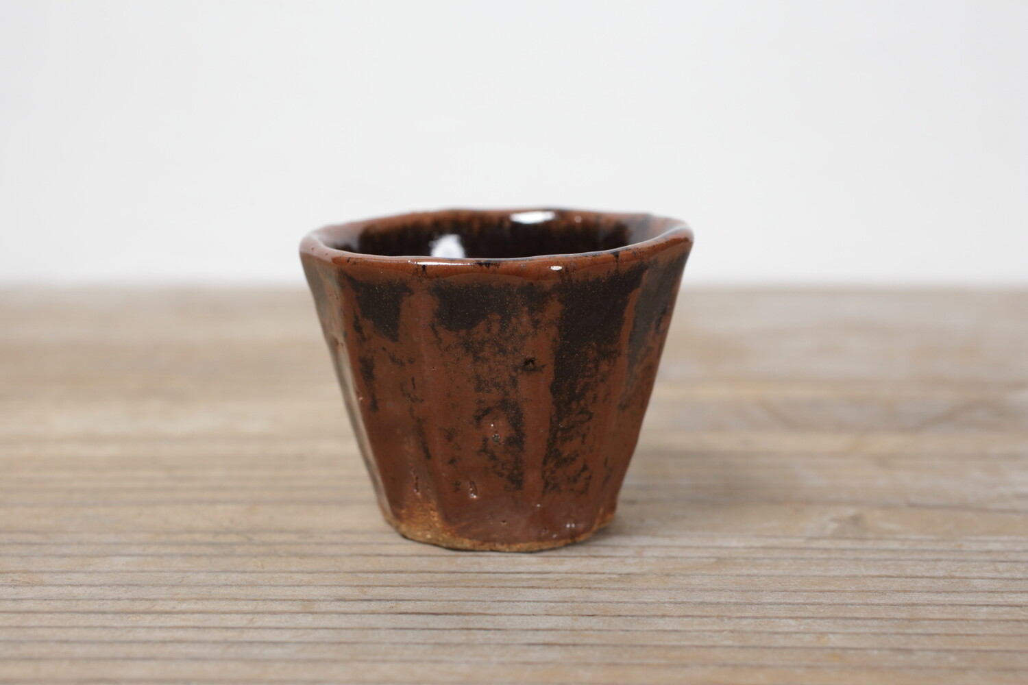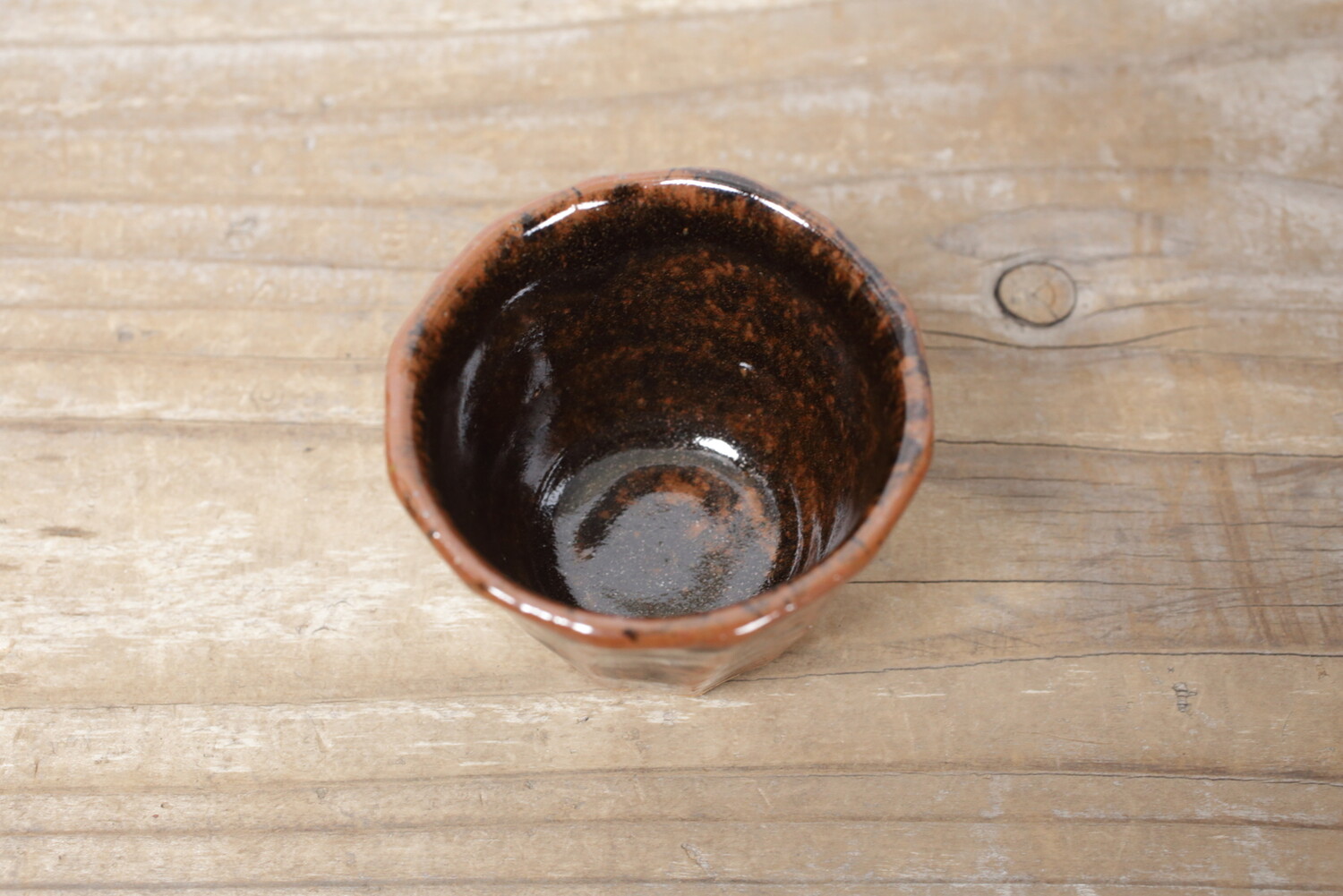 面取りを施した黒釉のぐい呑み。綿を削ることで、通常より少し軽めの作りとなっています。