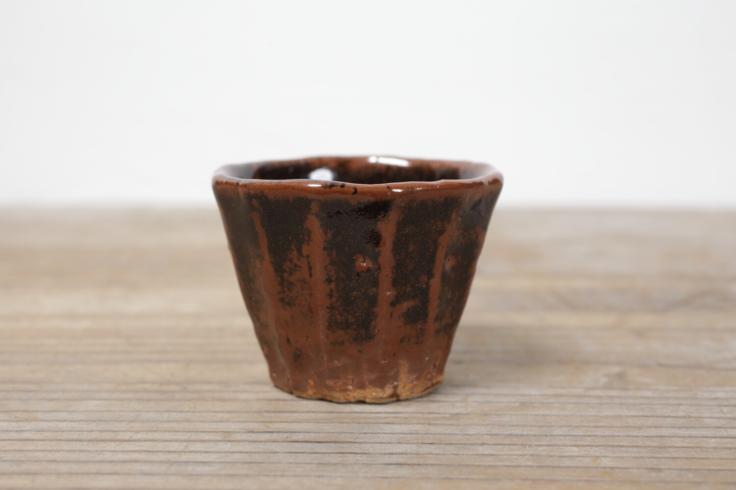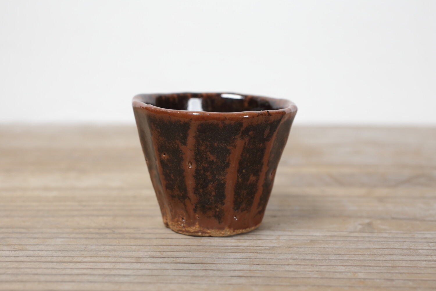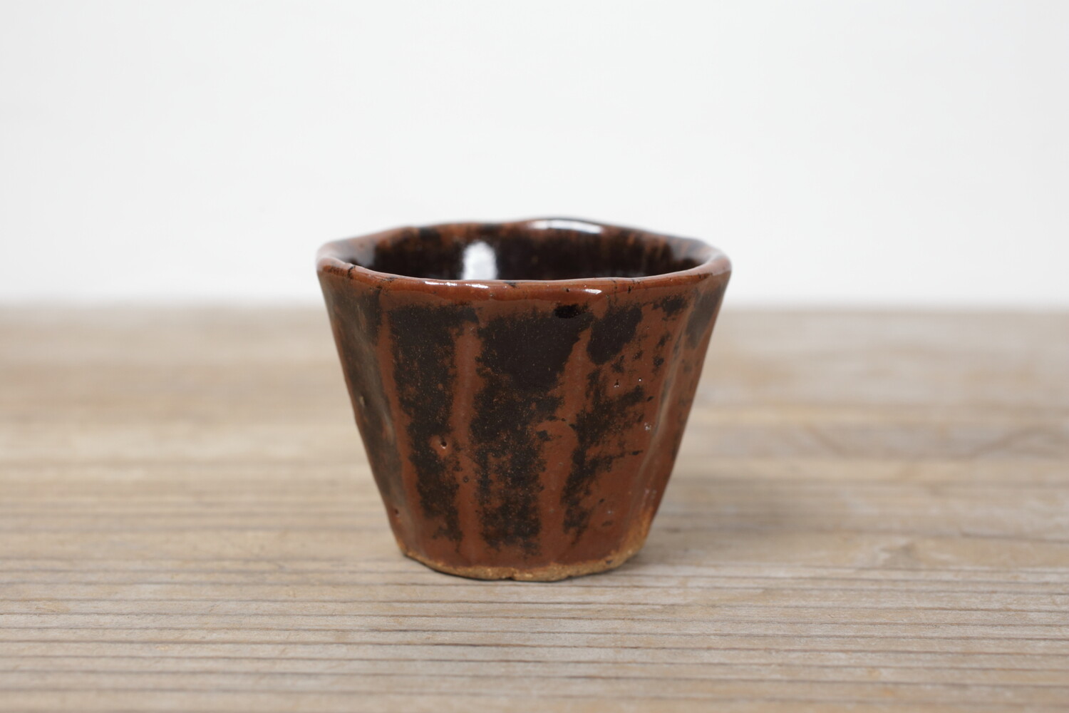面取りを施した黒釉のぐい呑み。綿を削ることで、通常より少し軽めの作りとなっています。