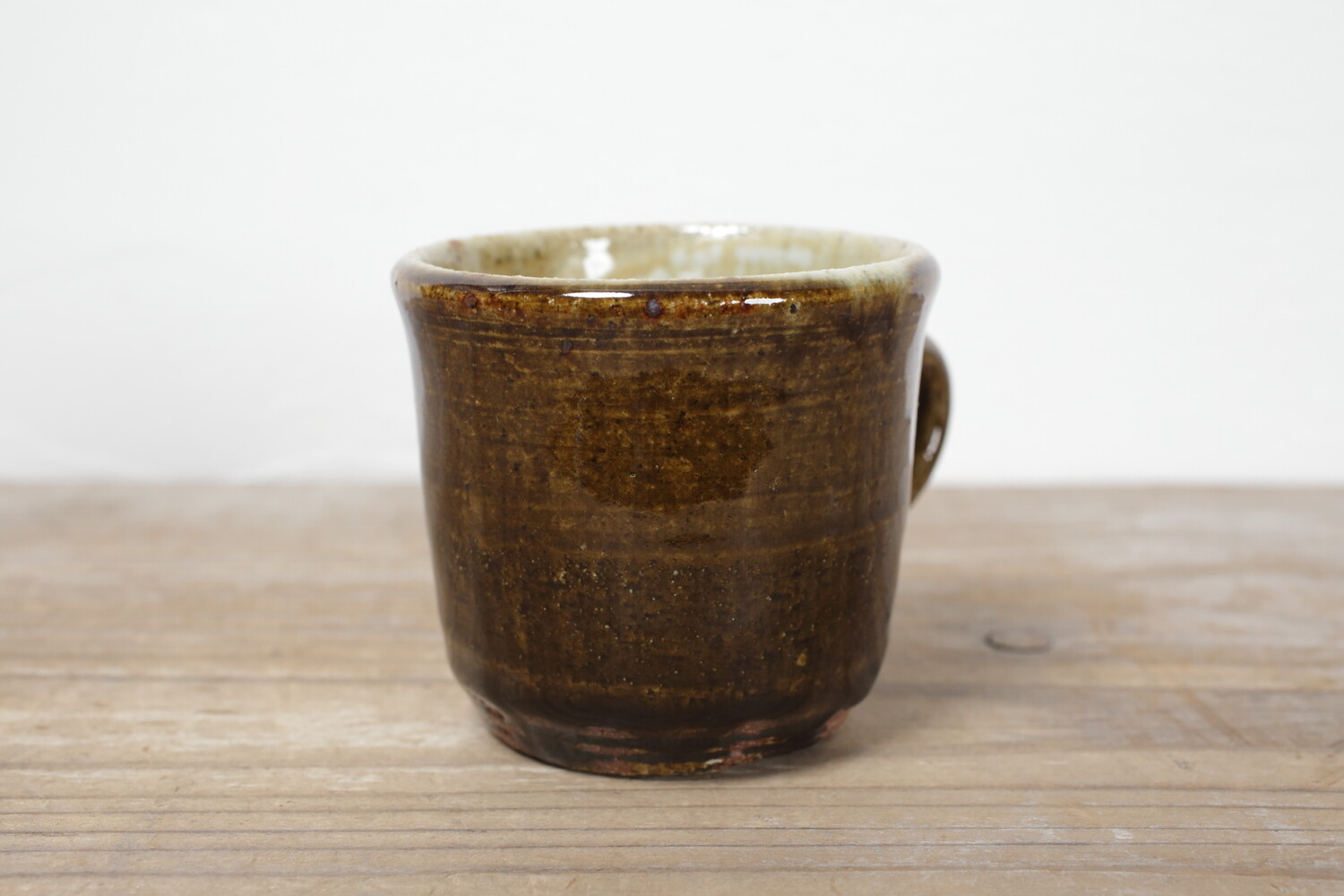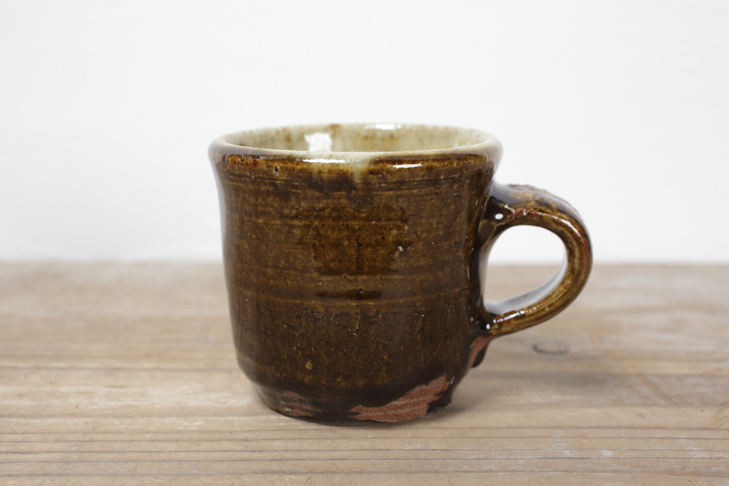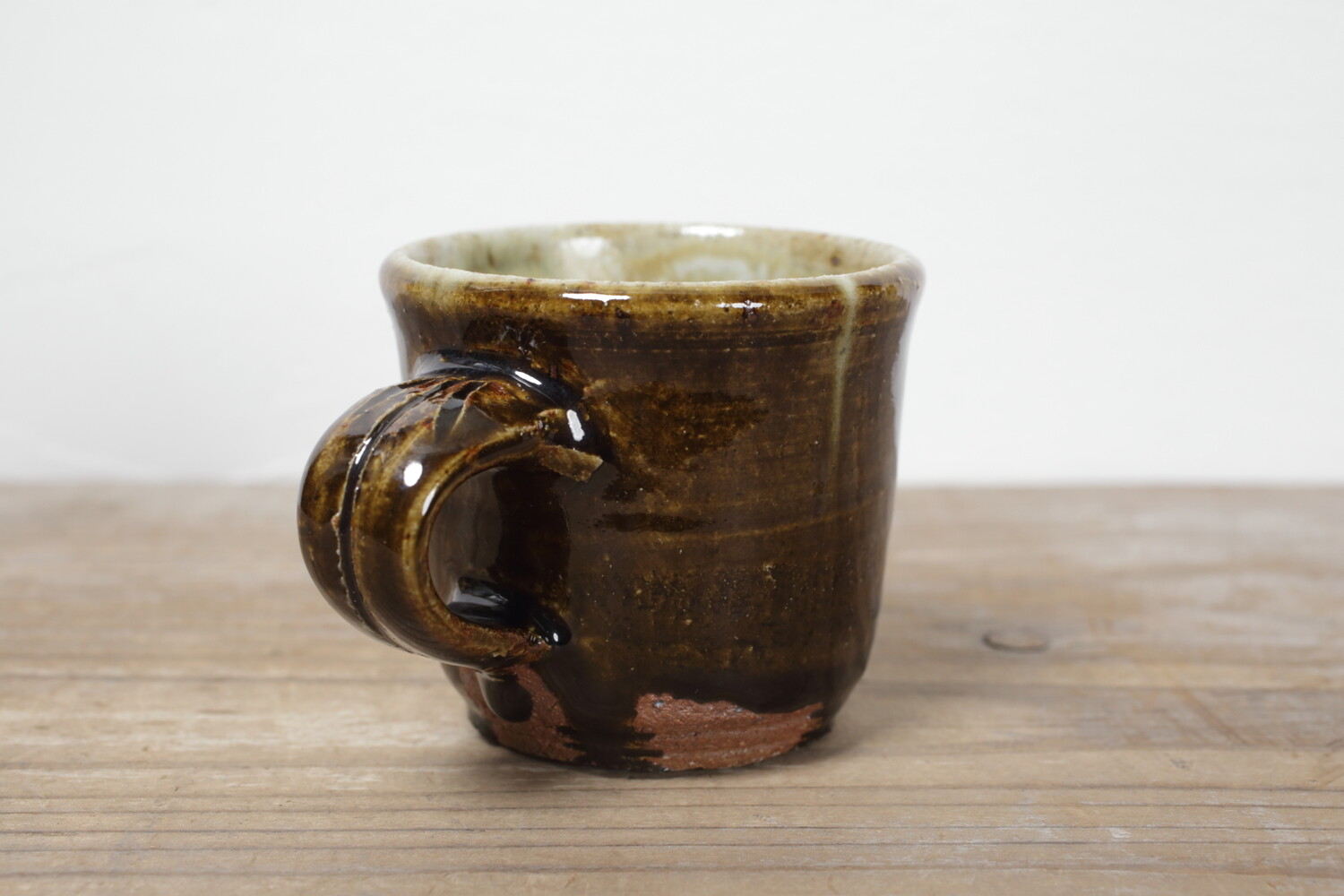 飴釉のマグカップ。持ち手の幅もあり、男女問わずお使い頂けます。全体的にぽってりとしていて、何だか惹きつけられるマグカップです。