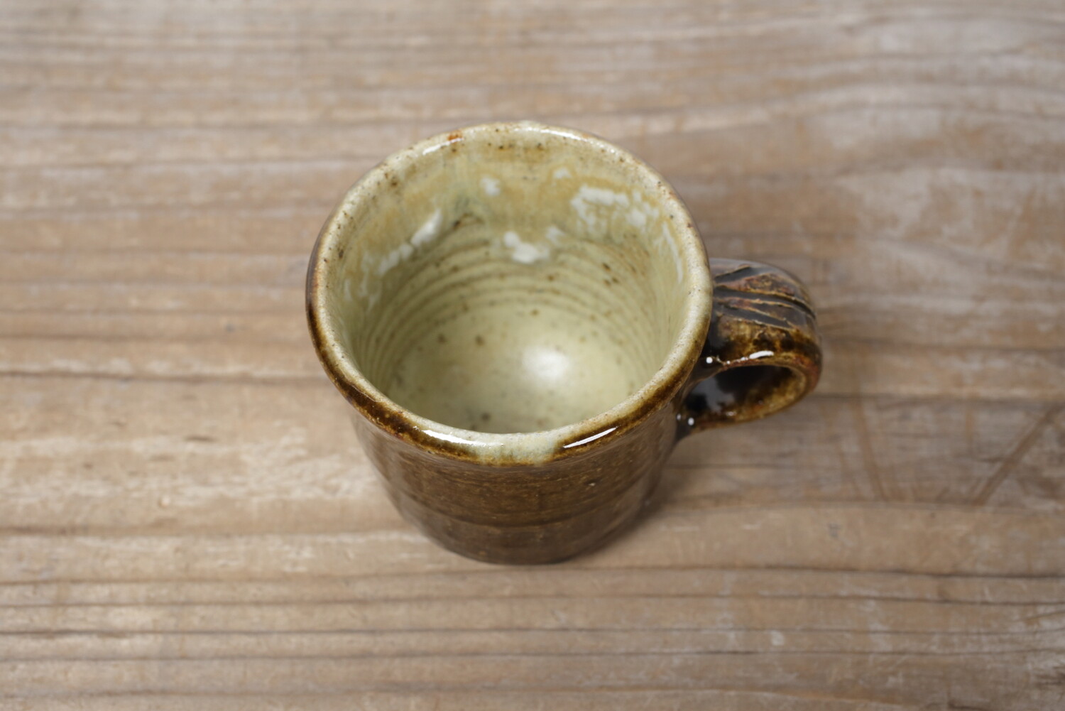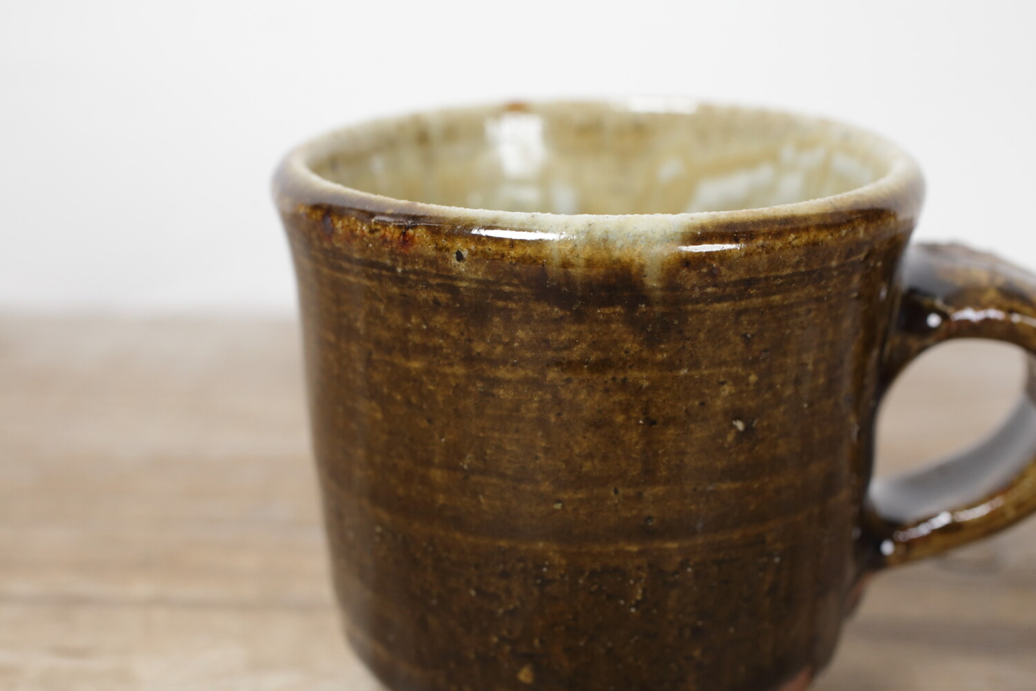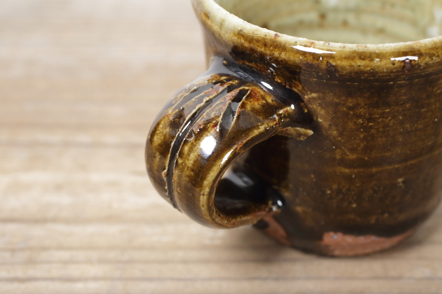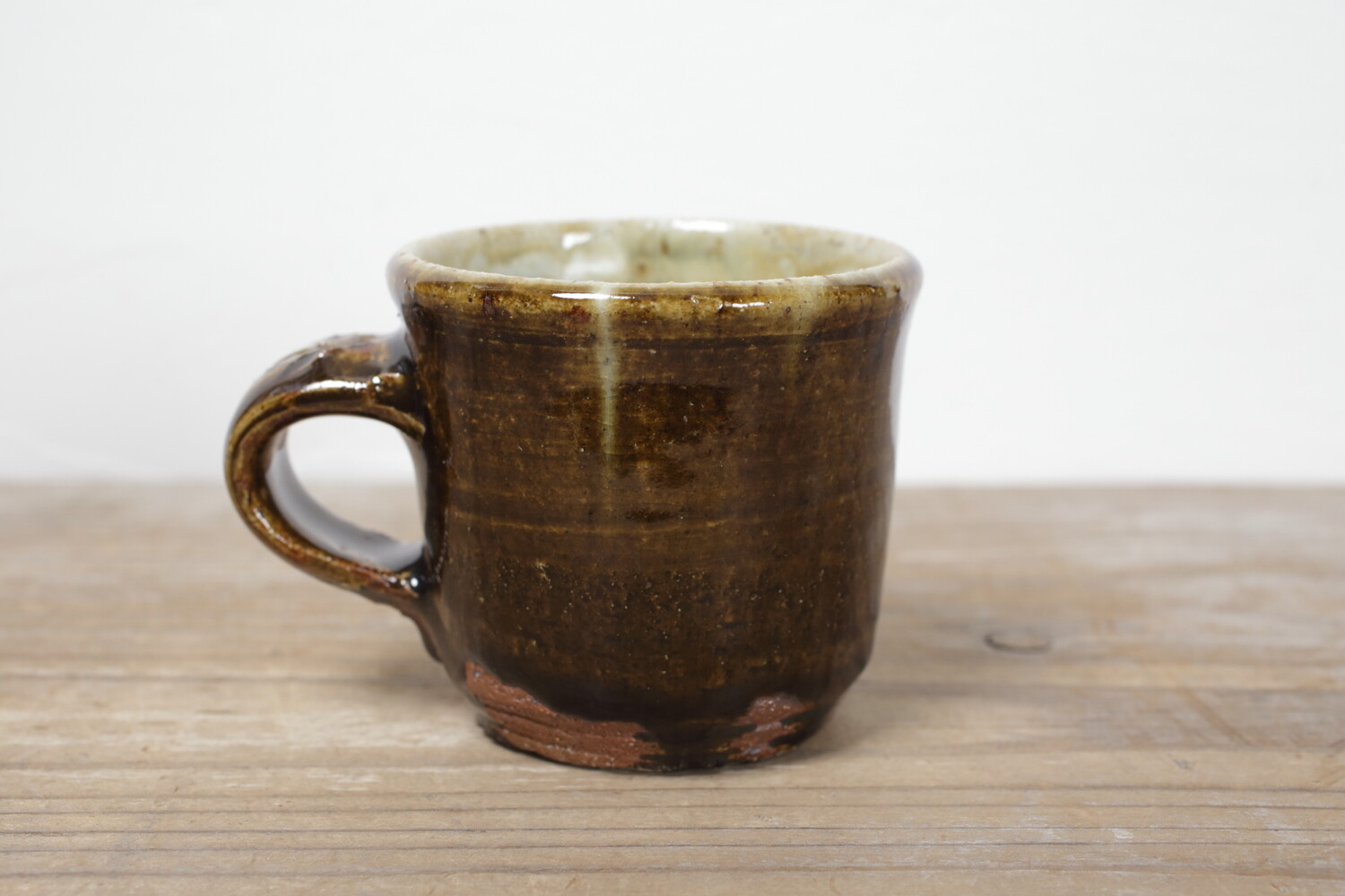 飴釉のマグカップ。持ち手の幅もあり、男女問わずお使い頂けます。全体的にぽってりとしていて、何だか惹きつけられるマグカップです。
