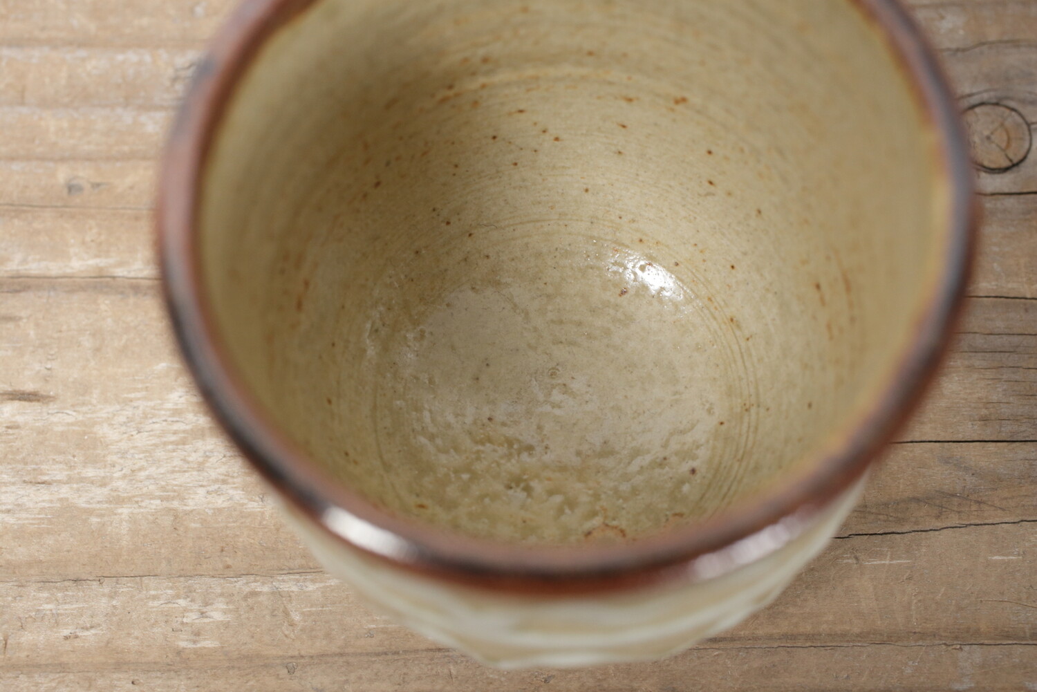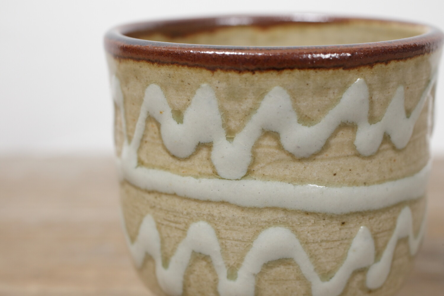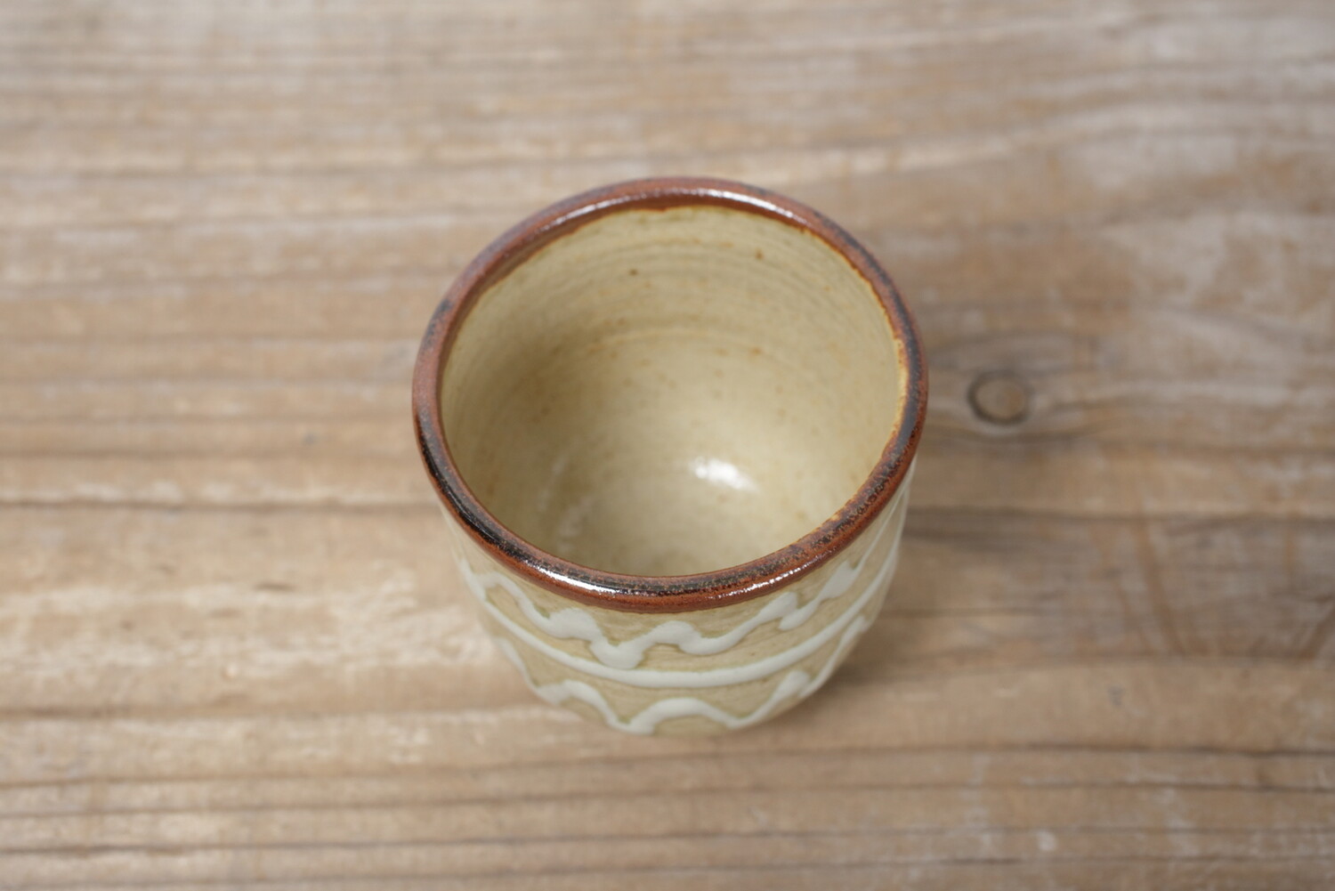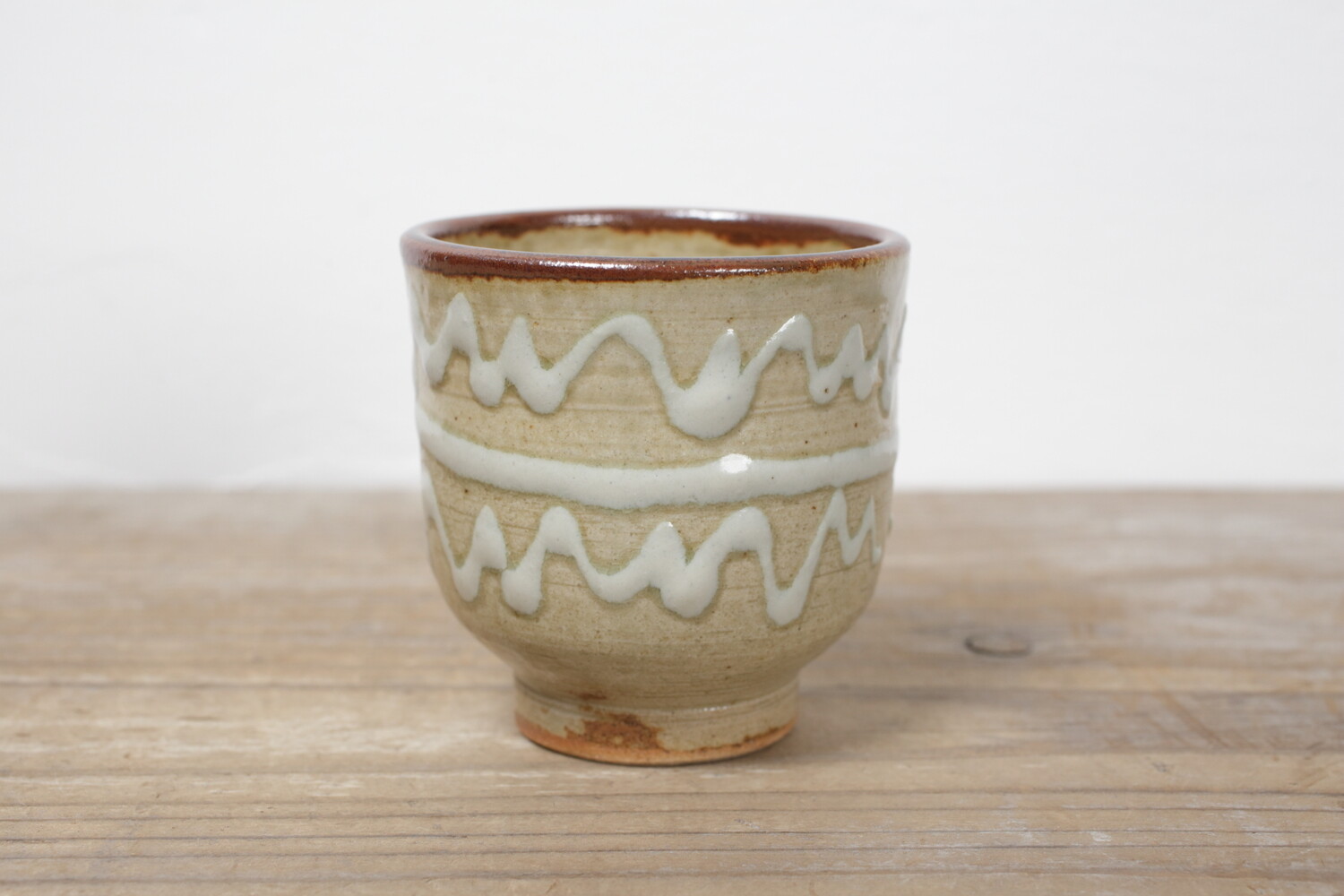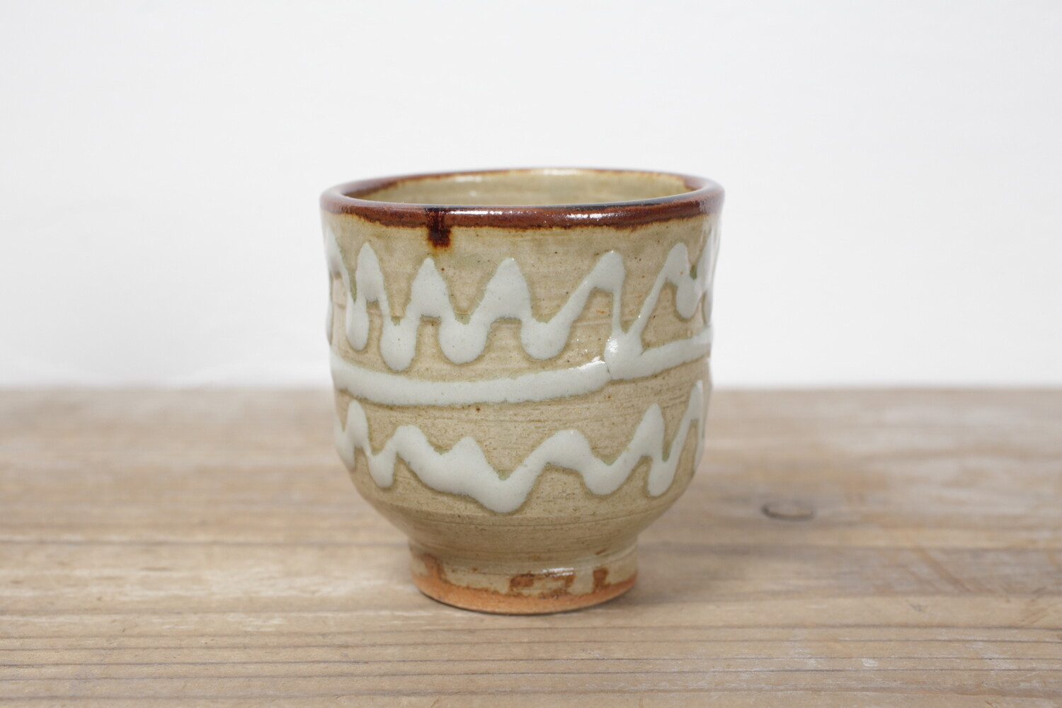 どこか現代の空気を纏ったイッチン模様の湯呑み。お酒やコーヒーにもいい雰囲気があります。
