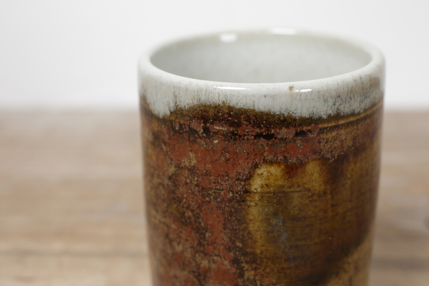 小ぶりの筒形湯呑みは煎茶やほうじ茶などにもいいですが、お酒を頂くにもいいでしょう。それほど重さも感じませんので、お薬を頂く際の水飲み用カップとしてもいい大きさです。釉薬の出方がとても美しい湯呑みです。