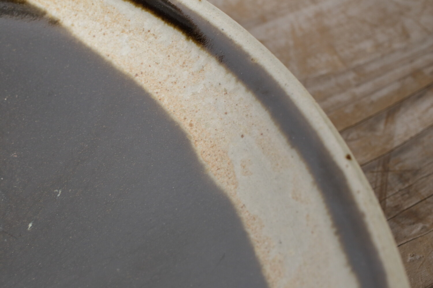 写真の3枚目と4枚目でご確認頂けますが、陶土のヨレのような中央に緩やかに高さが少し異なる箇所がございます。裏を見ましてもご使用にあたり問題はございませんが、気になる方はご購入をお控えください。