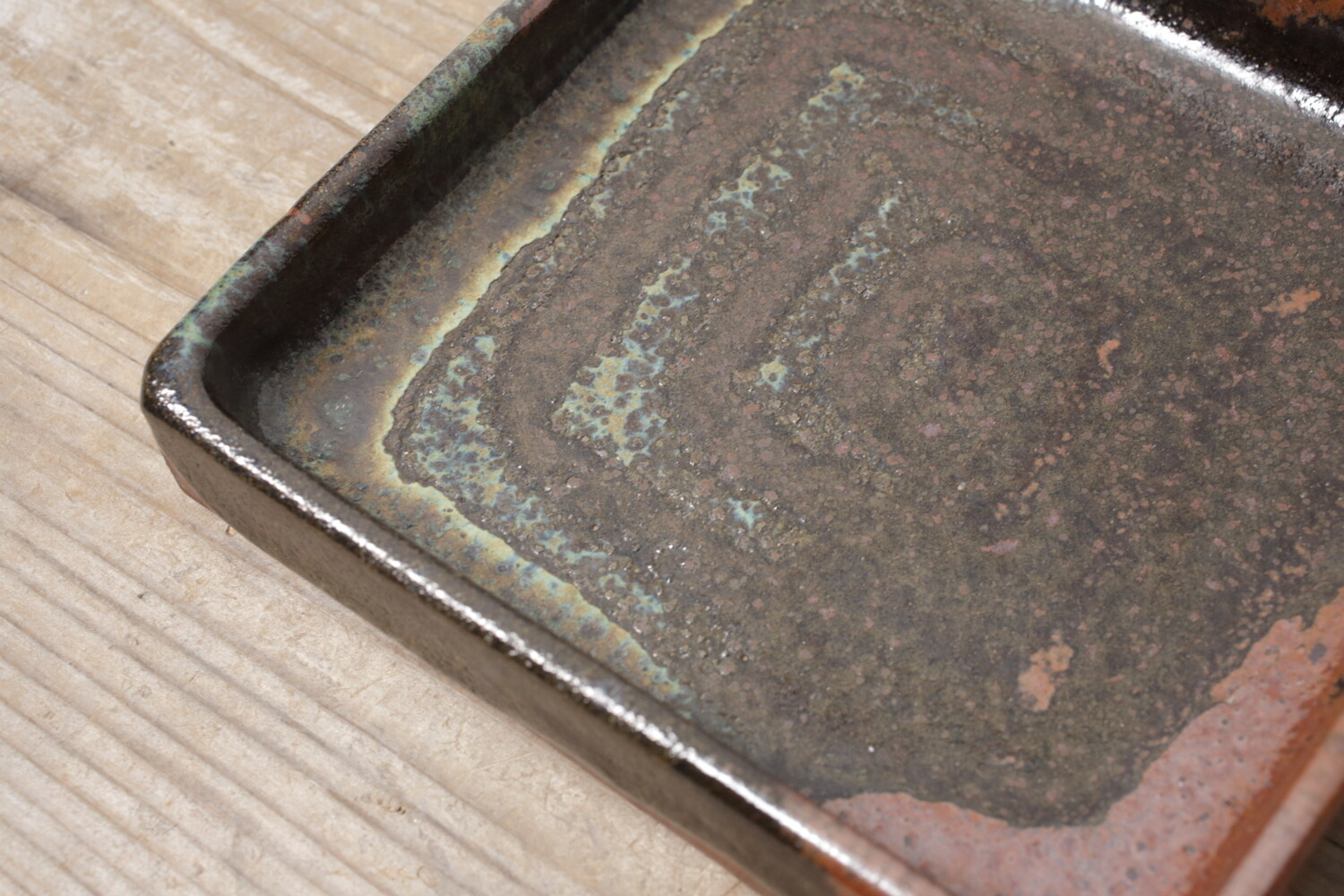 幅20.5cmほどの正方皿。お餅やお饅頭、お漬物や唐揚げなど。日常遣いはもちろん、盛り付けによってはおめでたい日にもいいのが嬉しいですね。