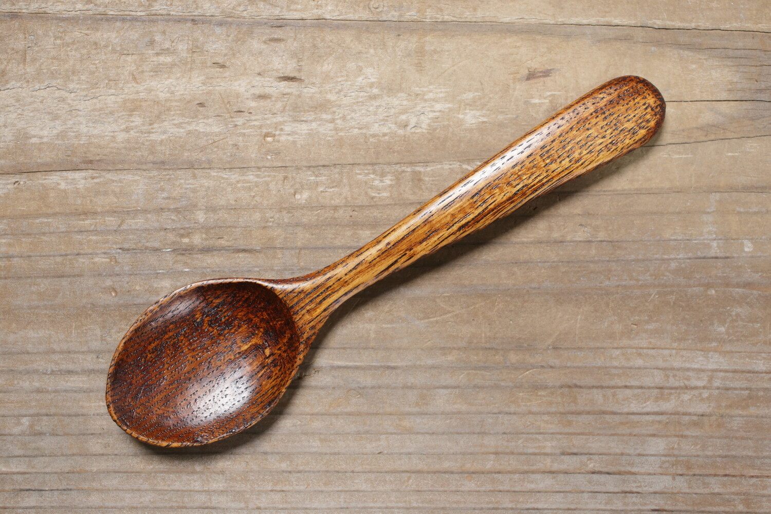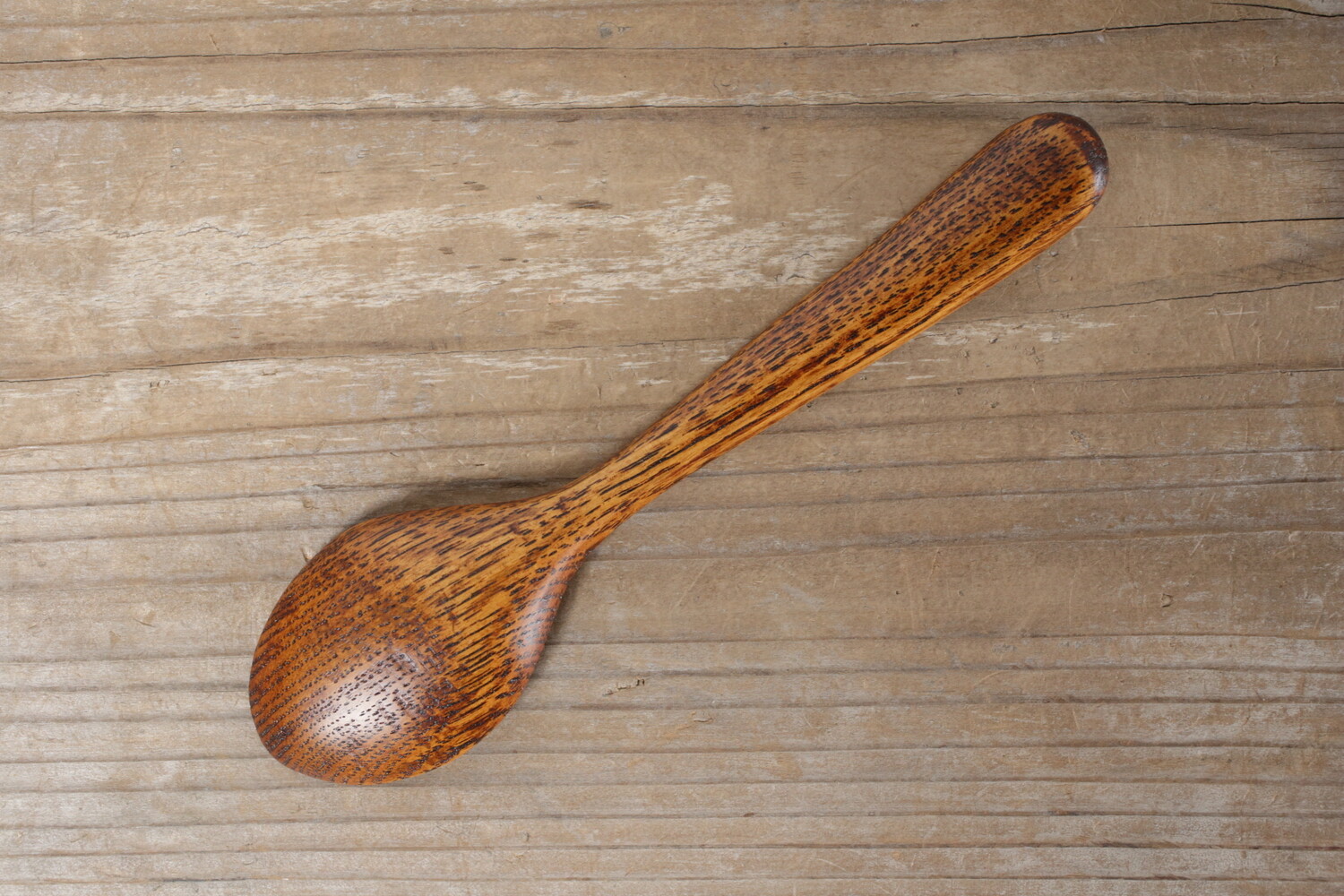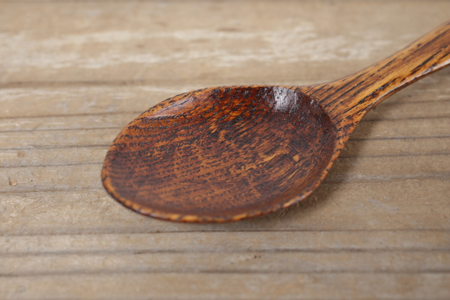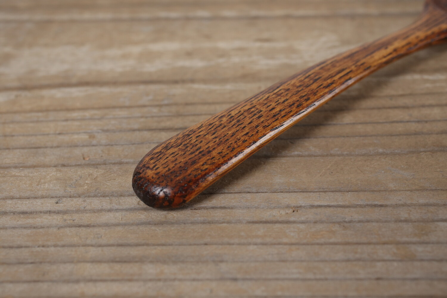 拭き漆が施されたケヤキの匙。カレーやチャーハンなどを頂くのにもちょうどいいサイズ感です。