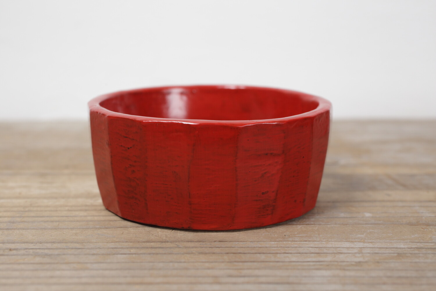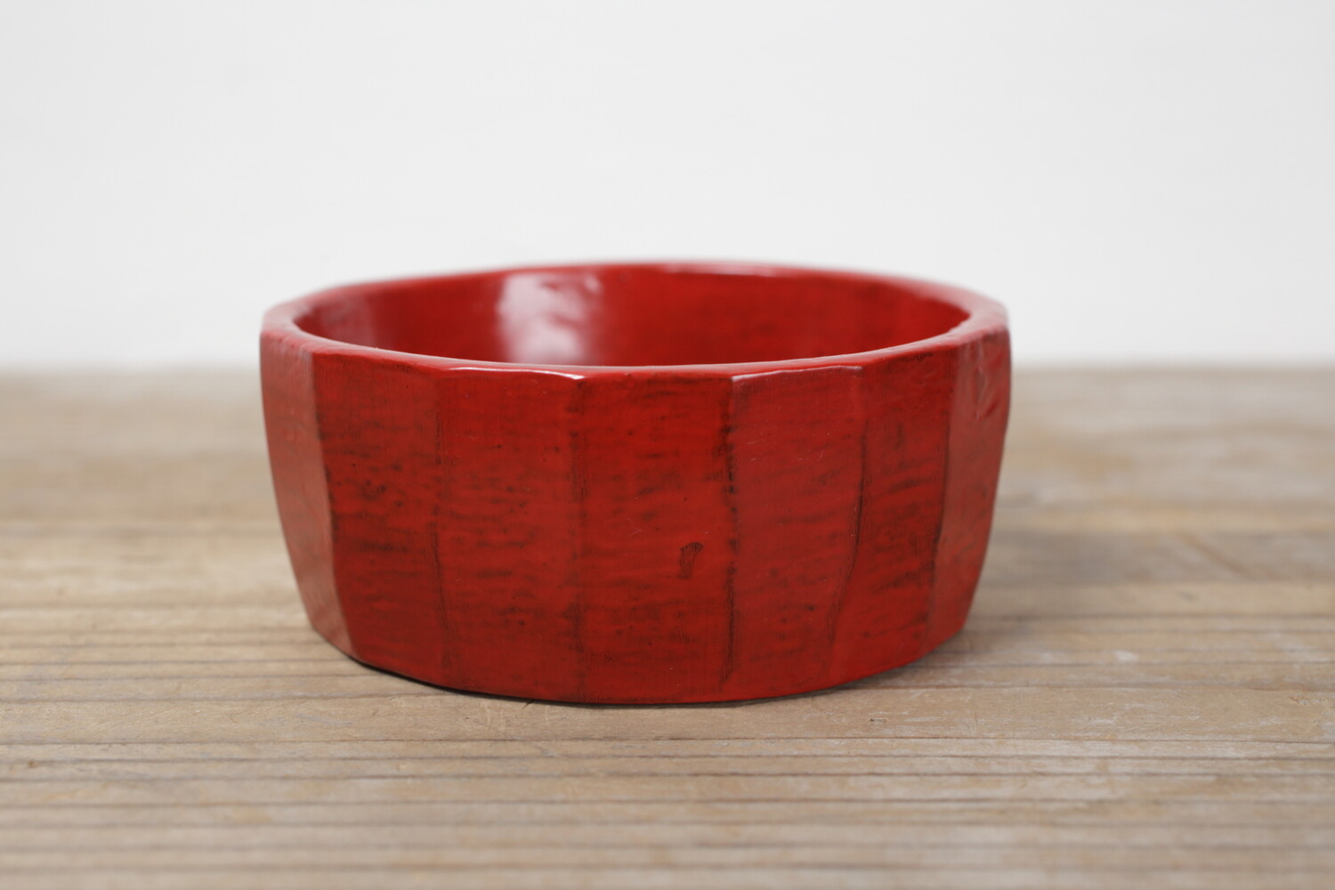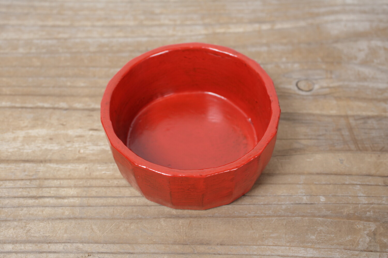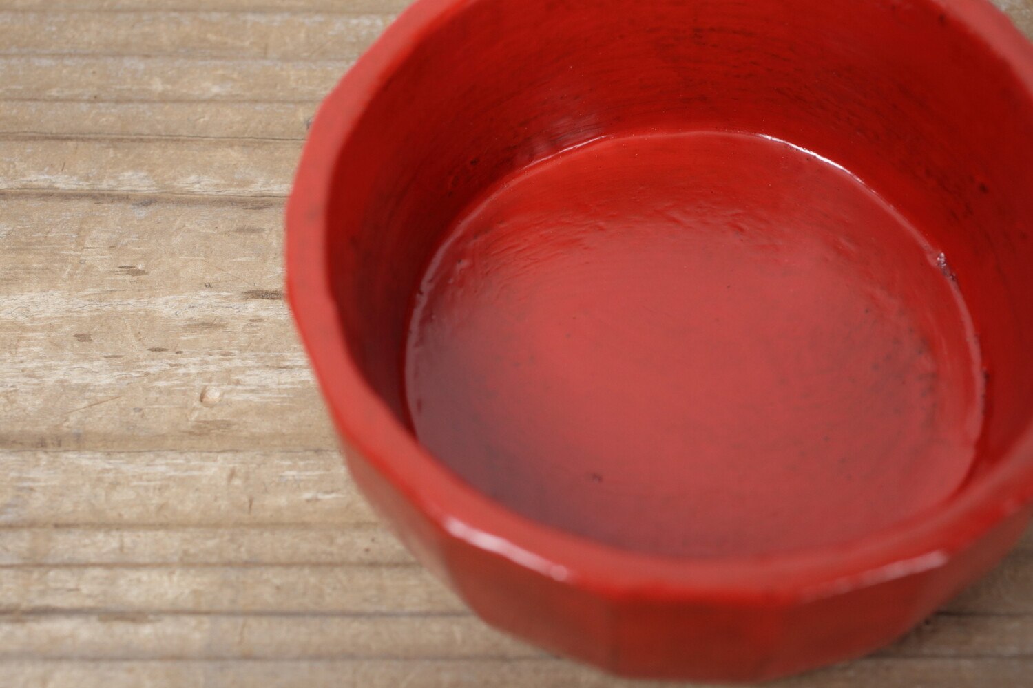 手彫りによる造形後に黒漆による下塗りを幾重にも重ねた後に朱塗りをする根来塗(ねごろぬり)という手法で漆が塗られています。直径は10.5cmほど、高さは4cmほど(#15296-5だけ高さ少し高い4.5cm)の小鉢ですので和え物などにいいでしょう。