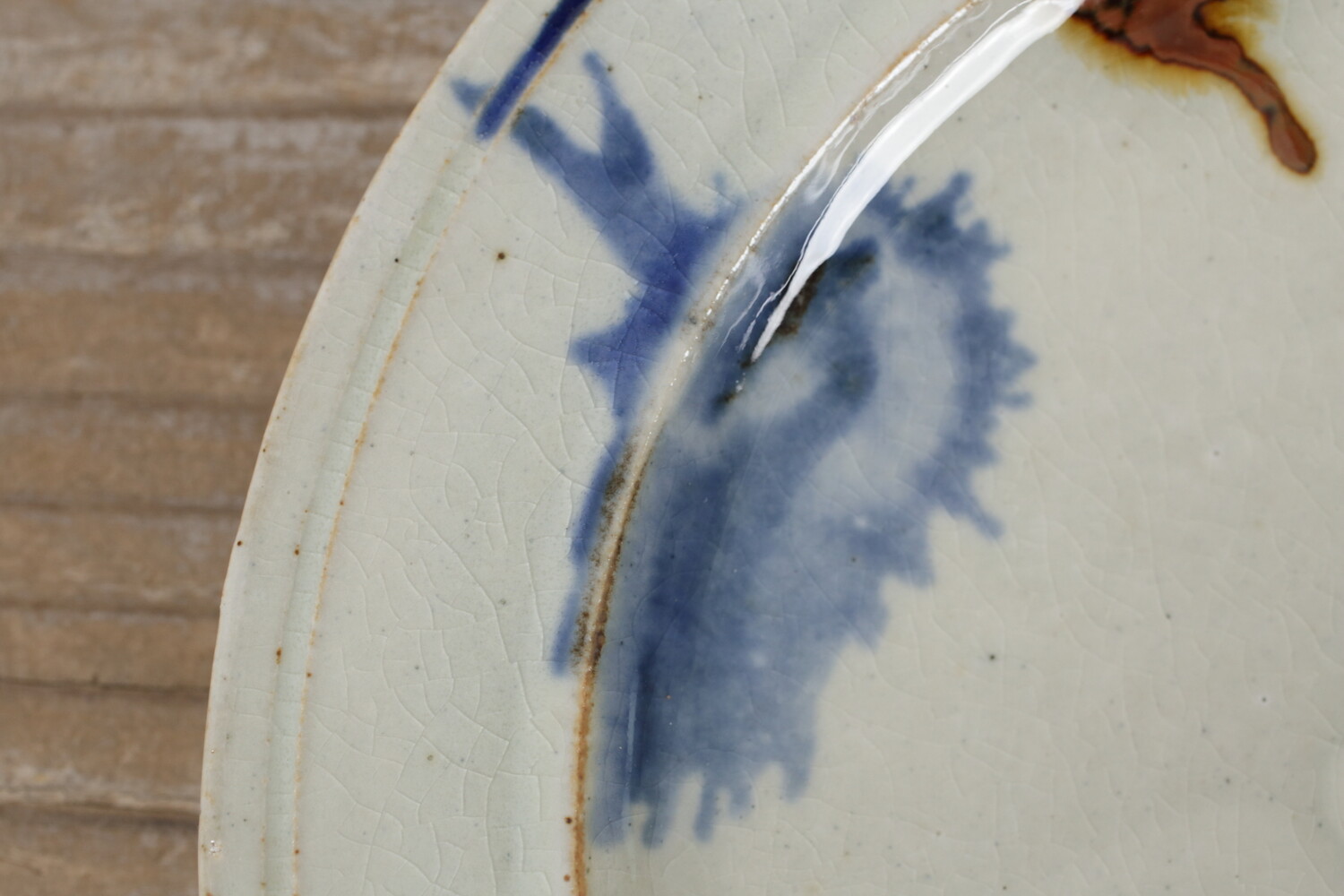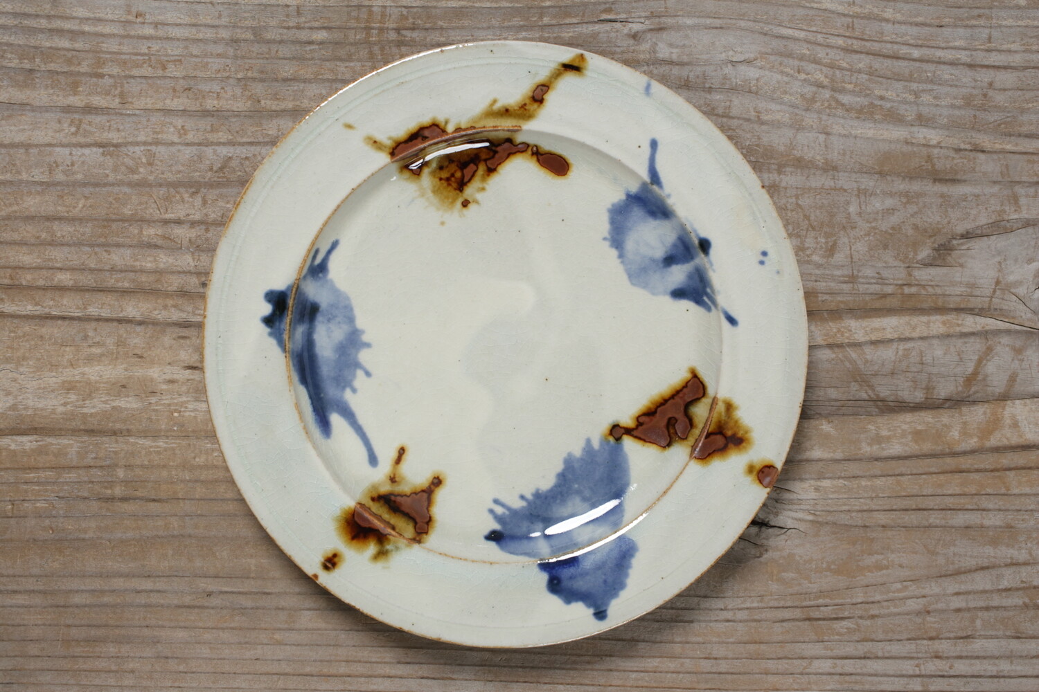 森山さんが過去に作ったものをどういう経緯か工房の奥に置いて、今まですっかり忘れられていたという打ち掛け平皿。そのため見たことがないという森山さんの器のファンの方も声も多く聞かれました。打ち掛けと言っても、森山さんが作られるのはあくまで食器のため控えめな印象です。お料理を盛り付けた時に少し垣間見えるスリップウェアのような感じでしょうか。