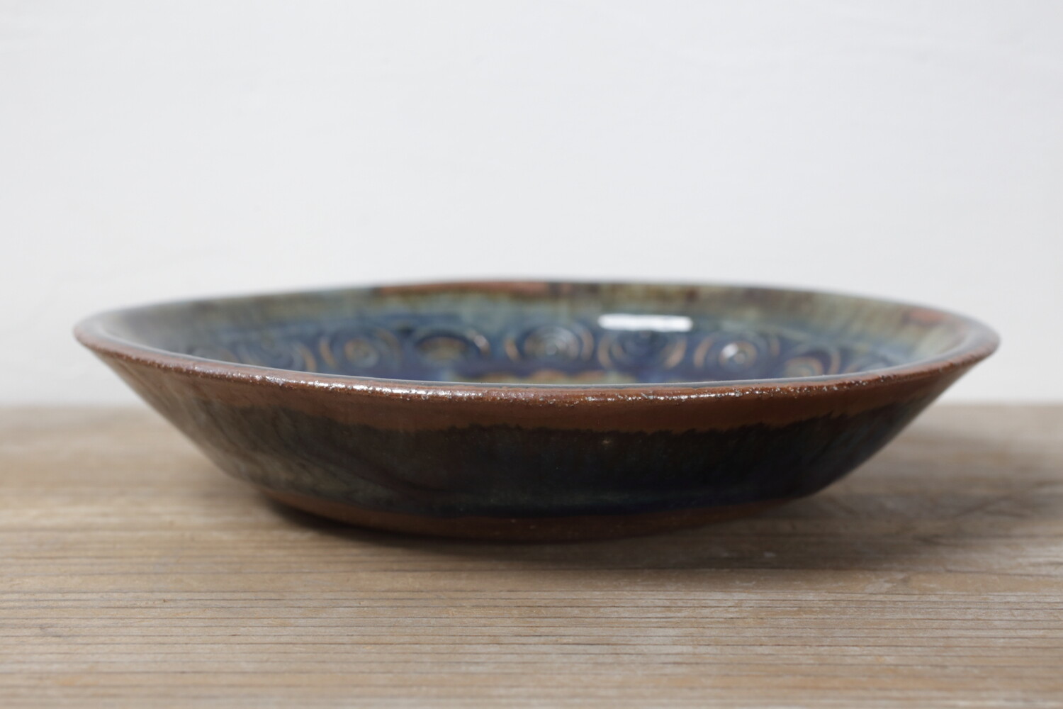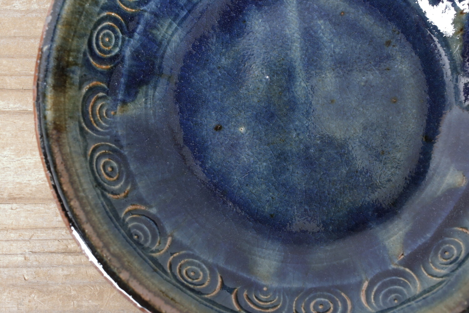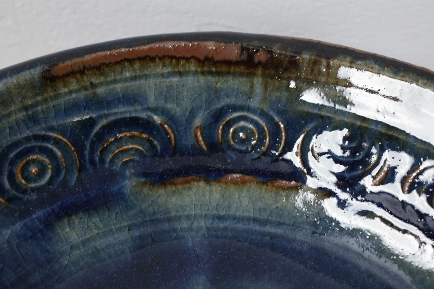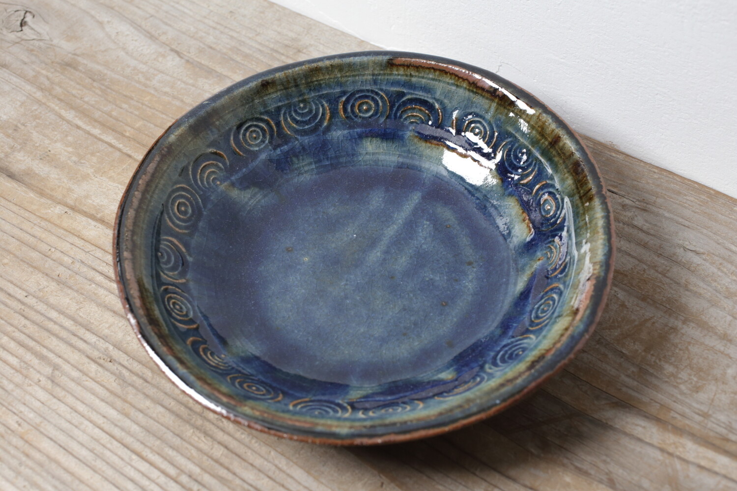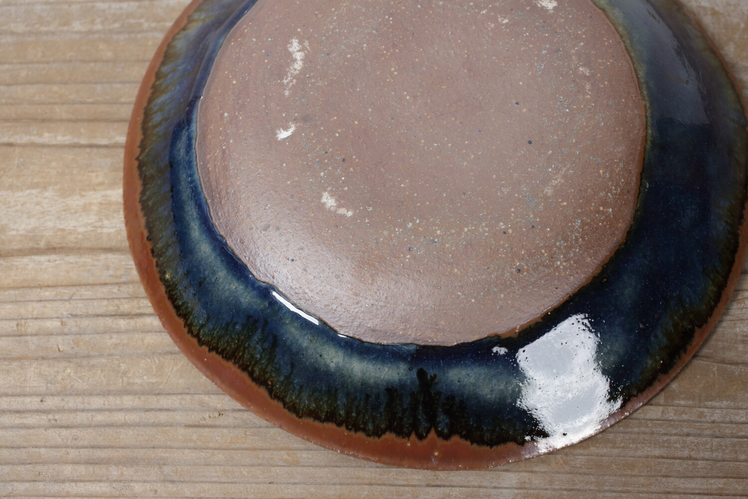 直径24.5cmほどのサイズは、ご家族のおかずの盛り鉢としてちょうどいい大きさです。より自然に近いものづくりを心掛けている森山さんの風情と奥行きのある釉薬と気取りのない形は、日々の食卓に馴染むことでしょう。パプリカやトマトなどの色鮮やかな食材でコントラストをつけても、またナスなどの同系色を盛っても美しい色合いです。