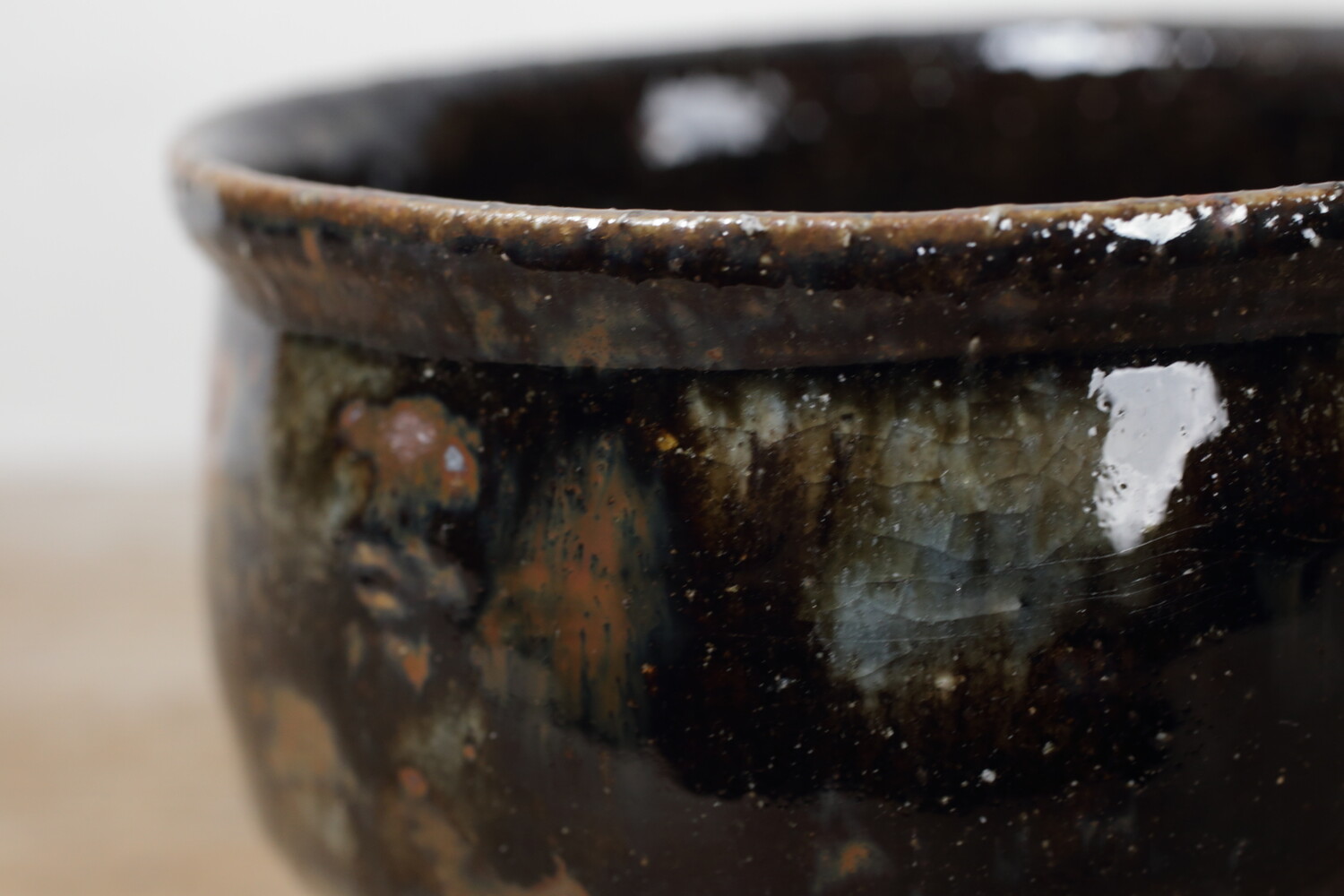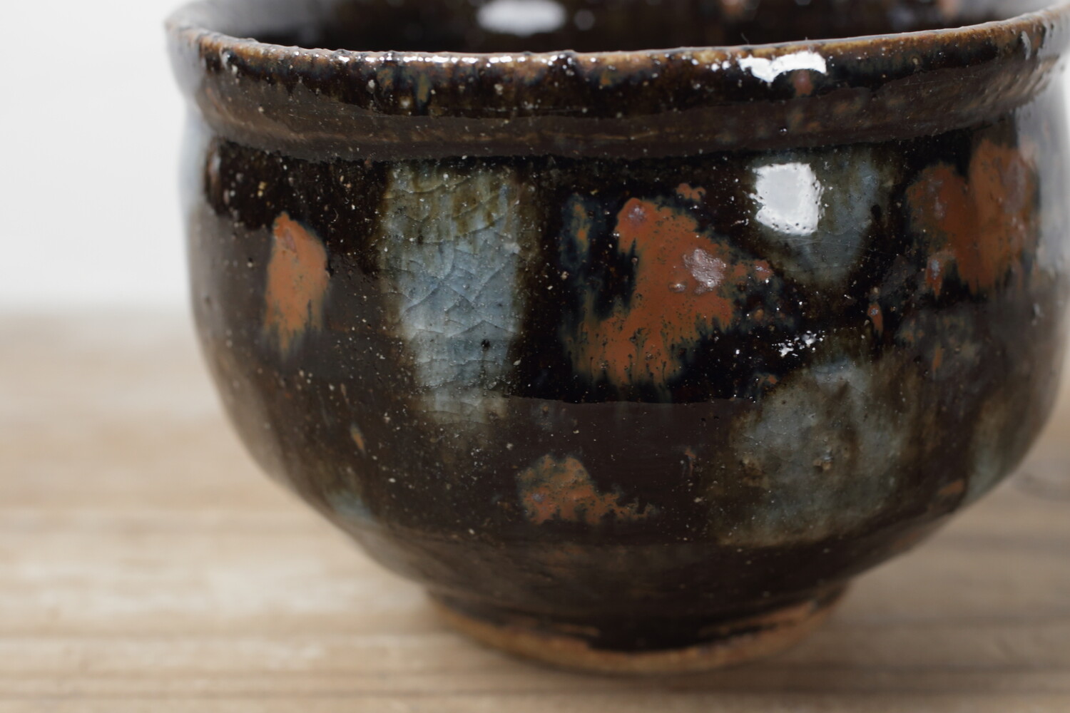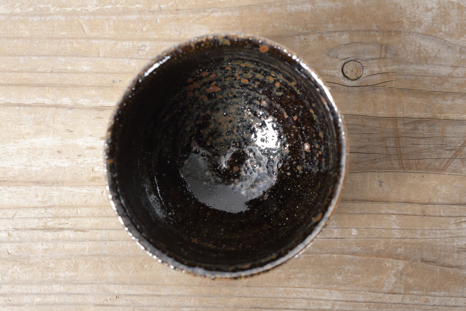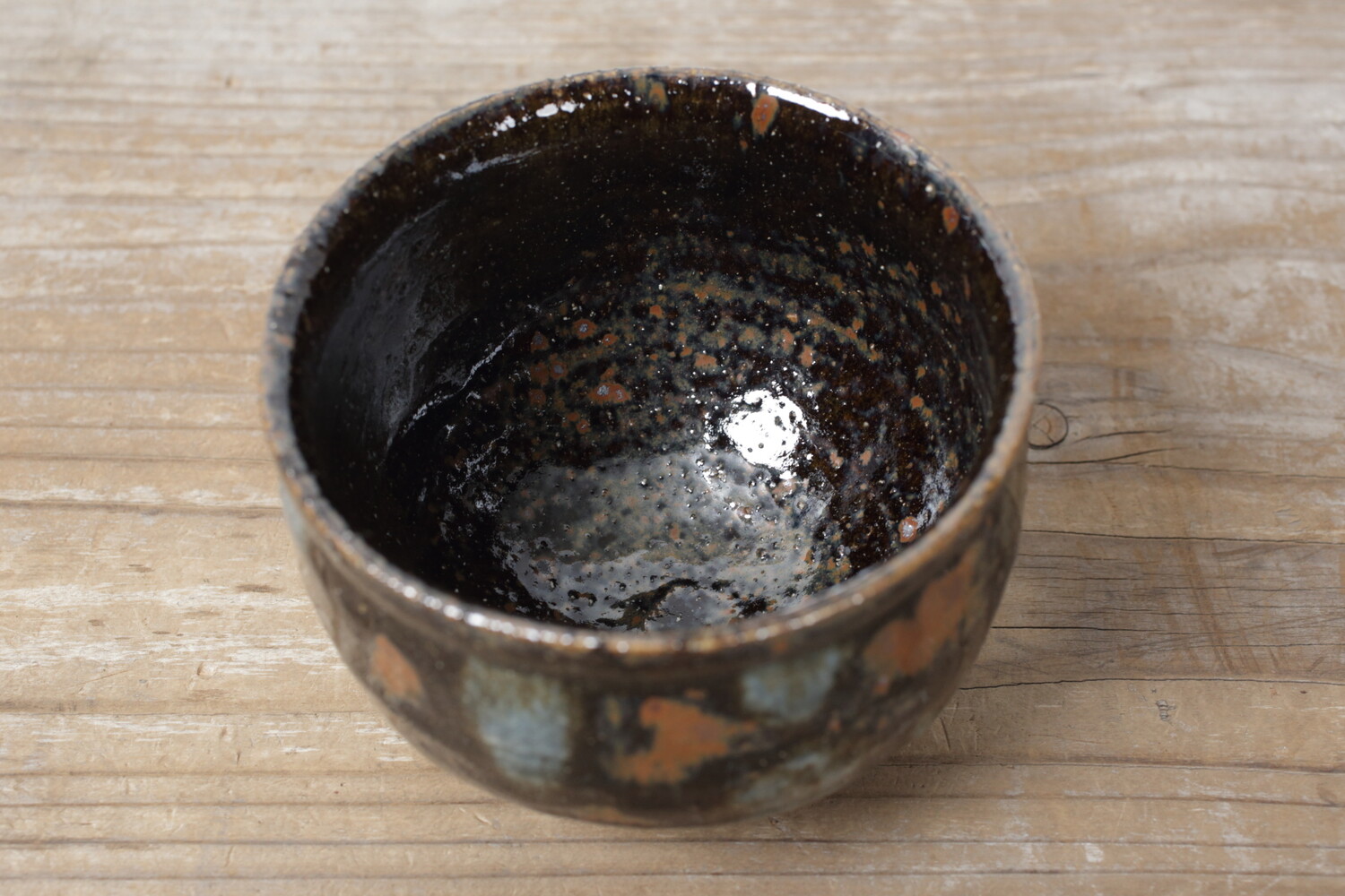 いつの時代のものか分からない圧巻の美しさを放つ森山さんの抹茶碗。焼き上がりもよく、点打ちの加減もとても自然で何とも言えないニュアンスも感じます。直径は11cmほどですので、男女問わずお使い頂けます。