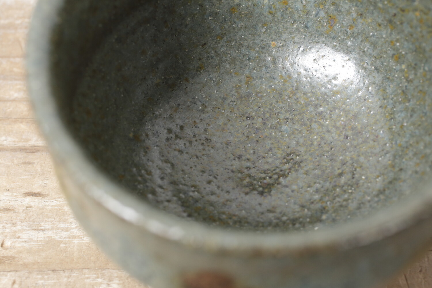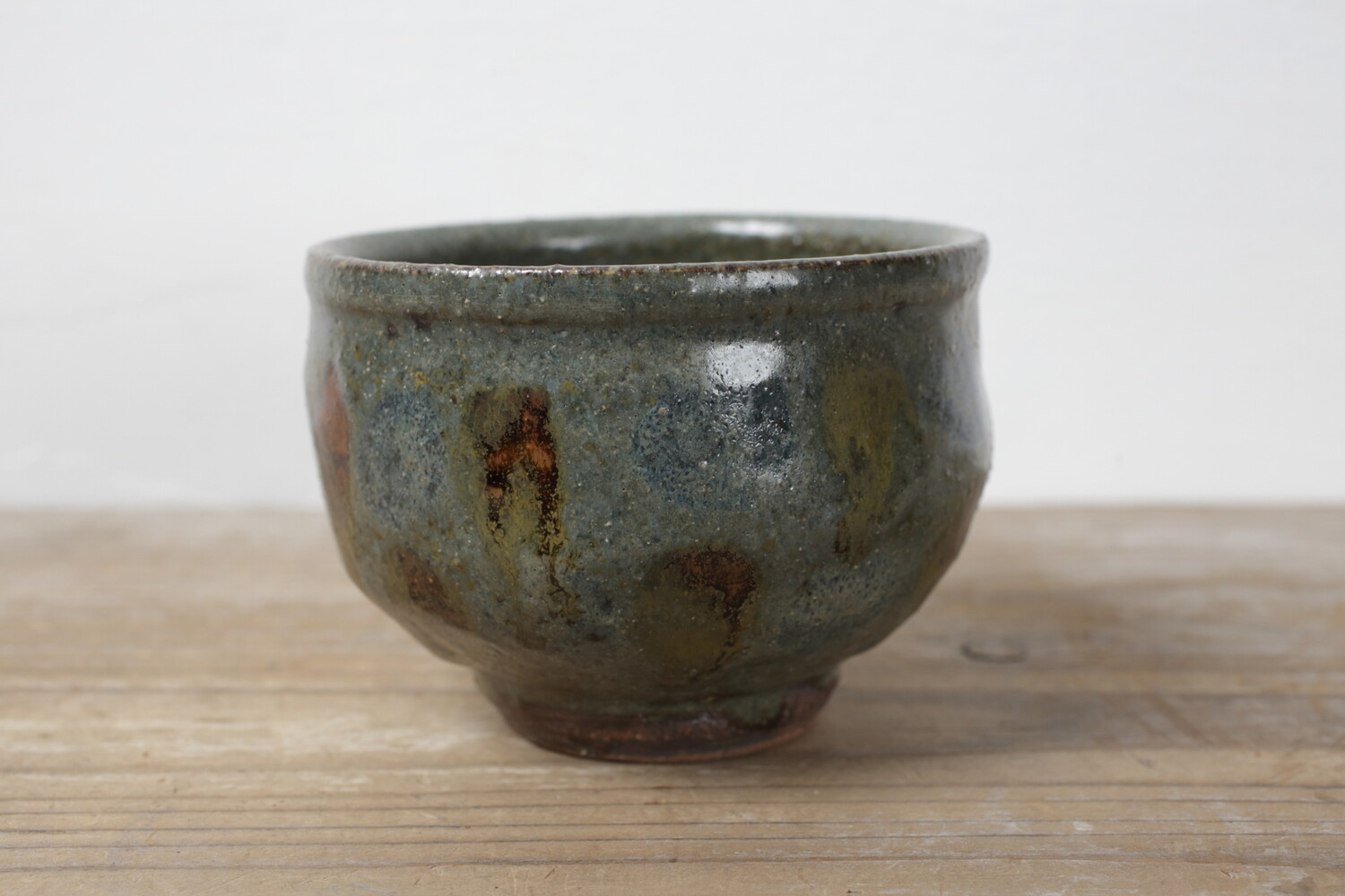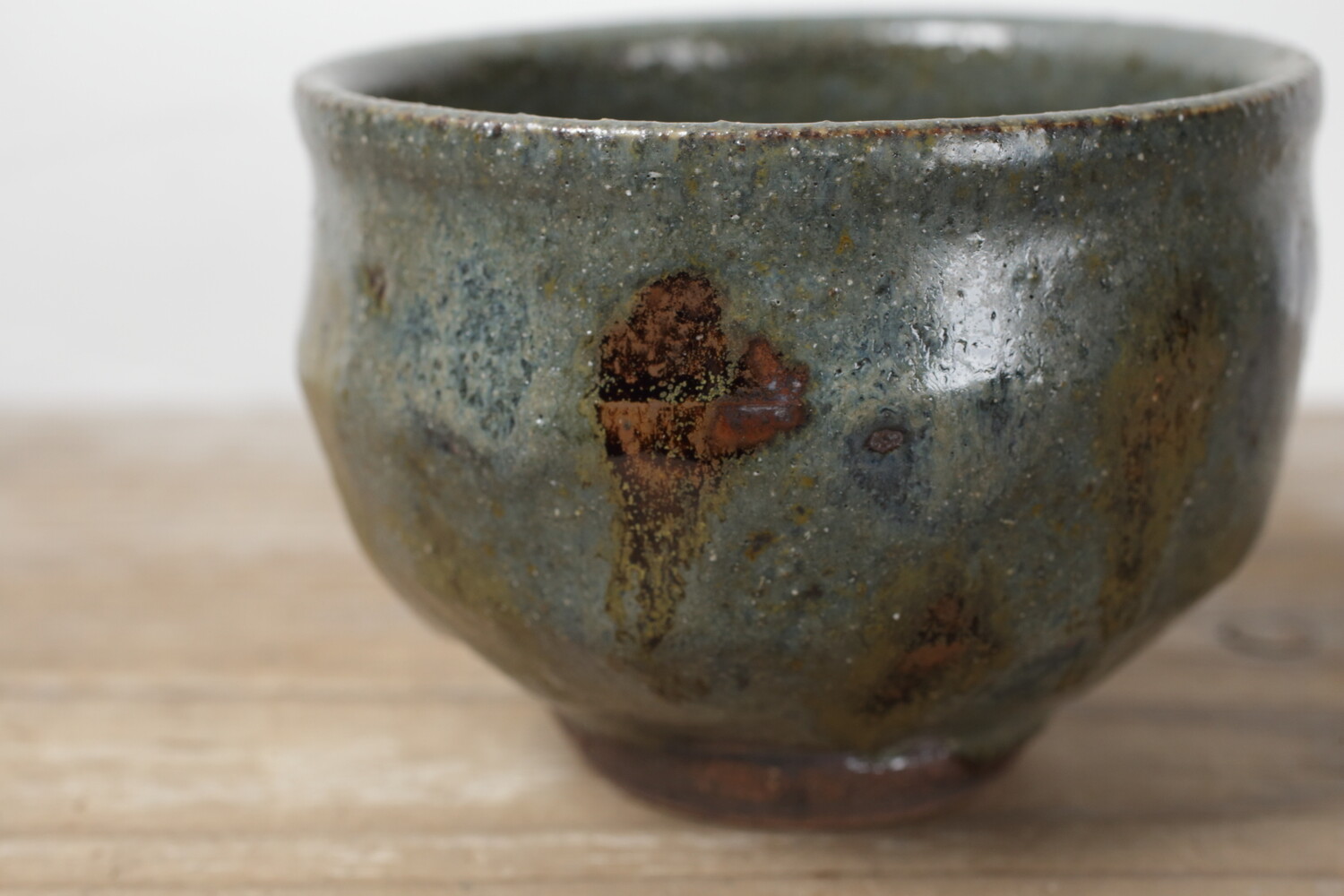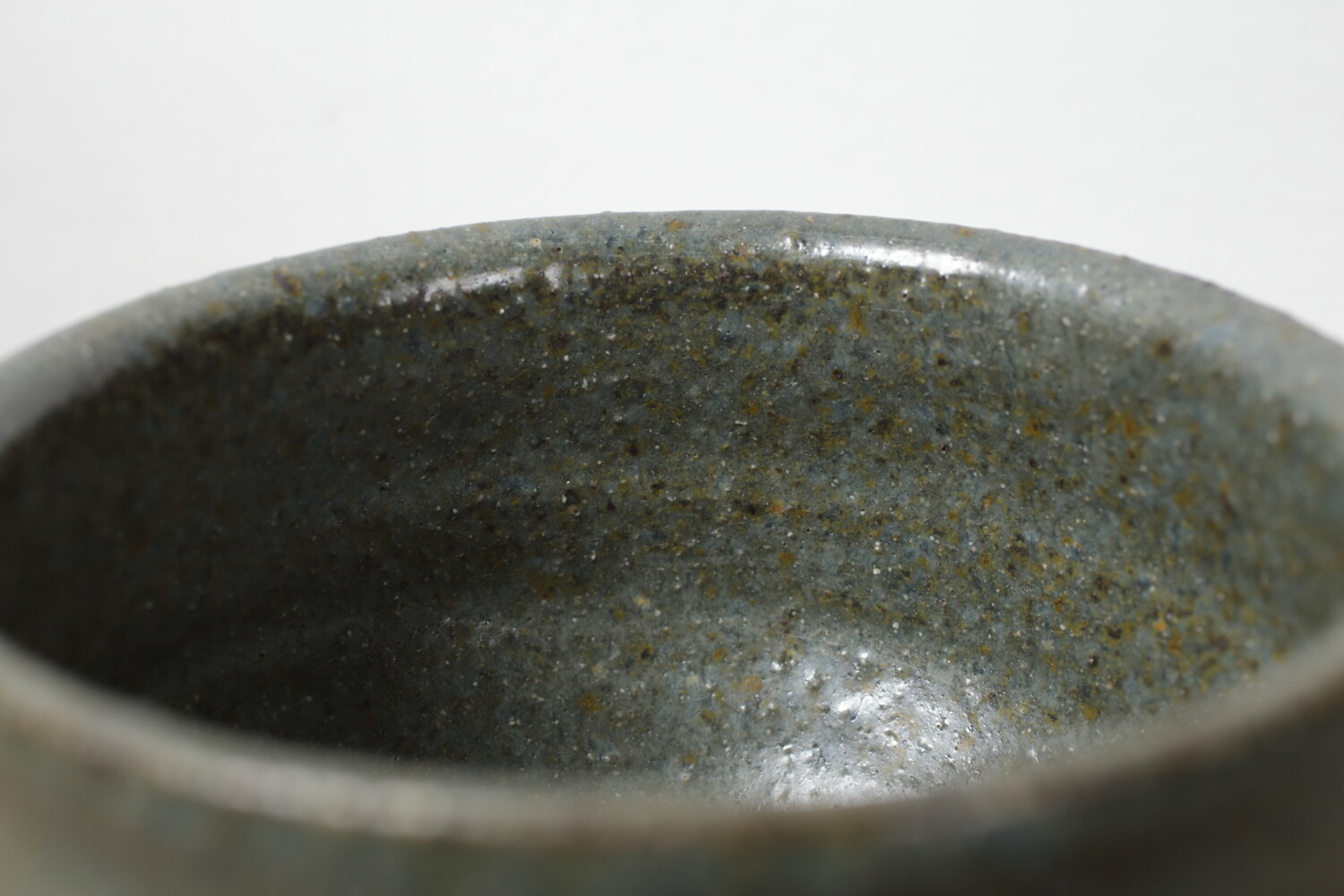 練炭釉の中に丸紋が浮かび上がるような森山さんの抹茶碗。しっとりとした美しさがあります。直径は11cmほどですので、男女問わずお使い頂けます。