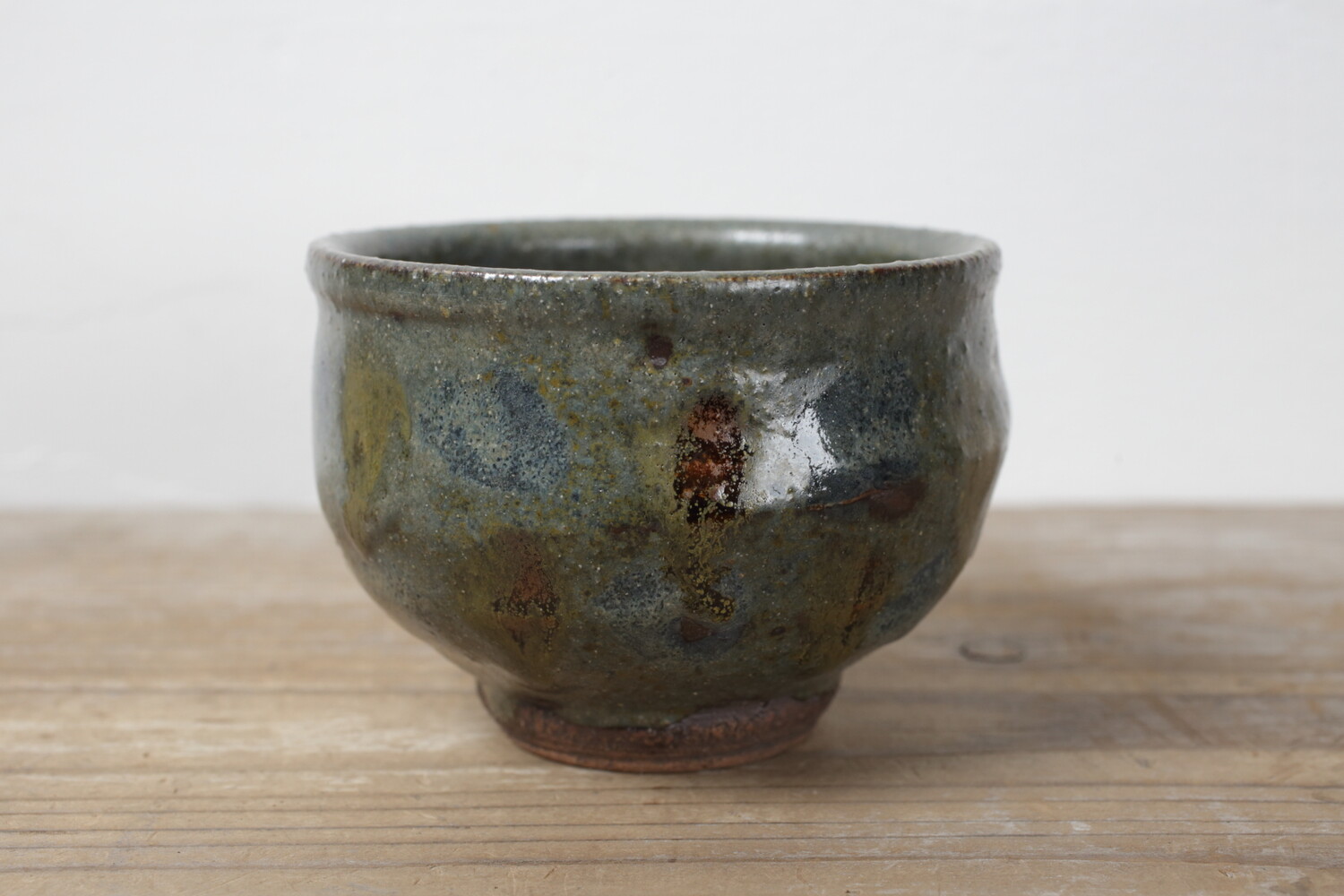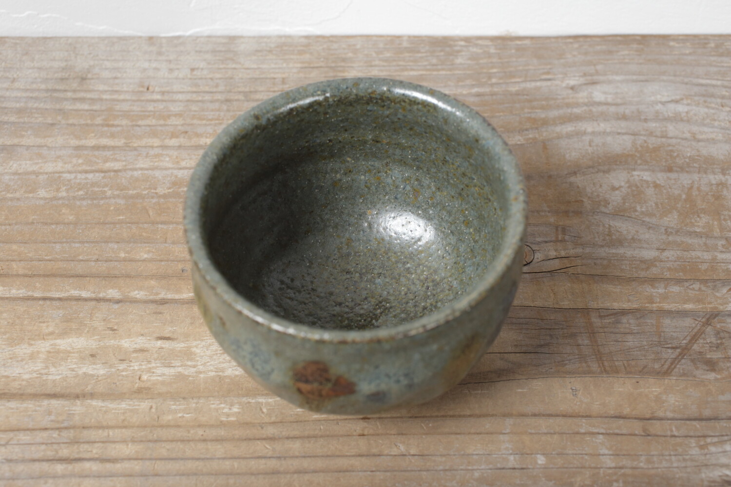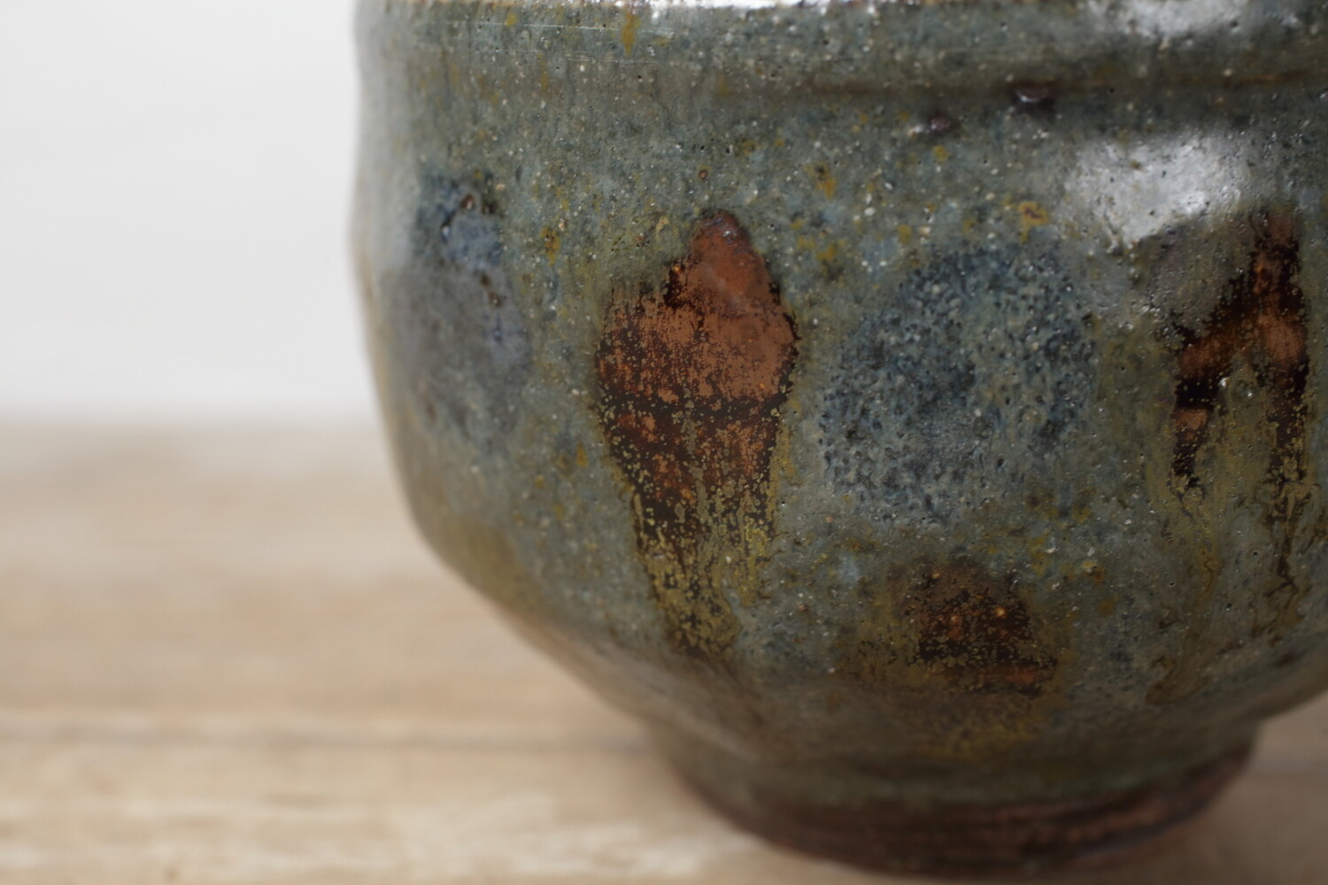 練炭釉の中に丸紋が浮かび上がるような森山さんの抹茶碗。しっとりとした美しさがあります。直径は11cmほどですので、男女問わずお使い頂けます。