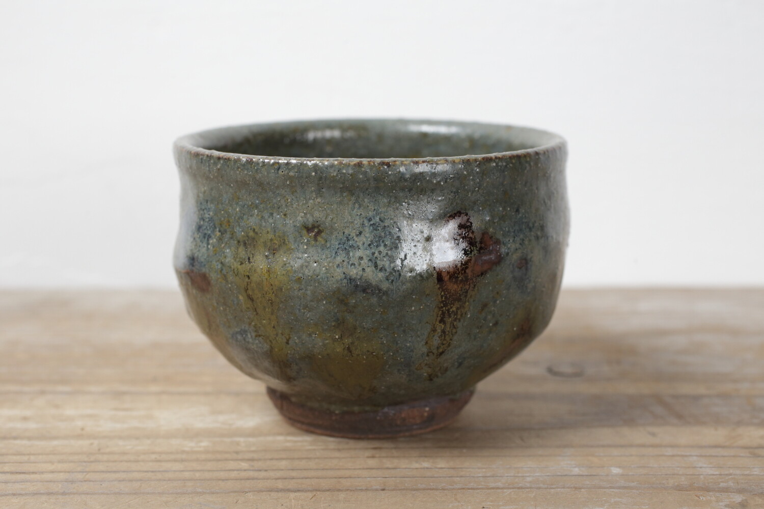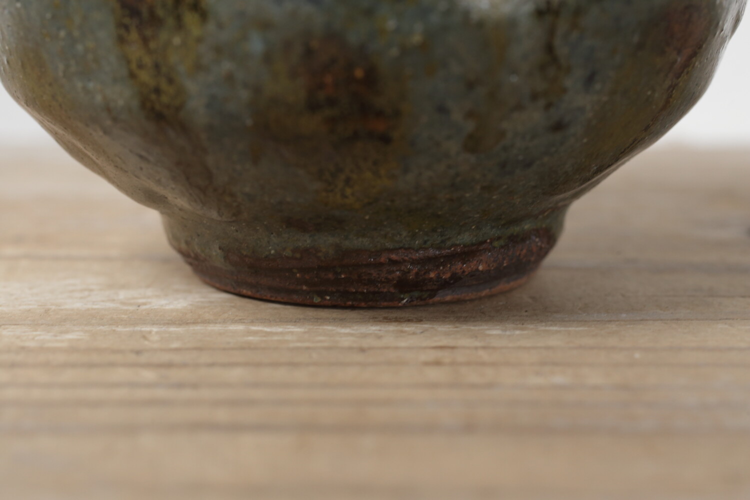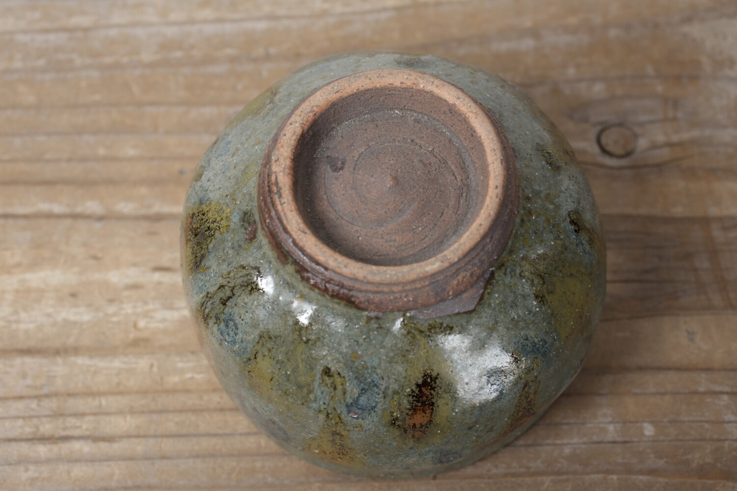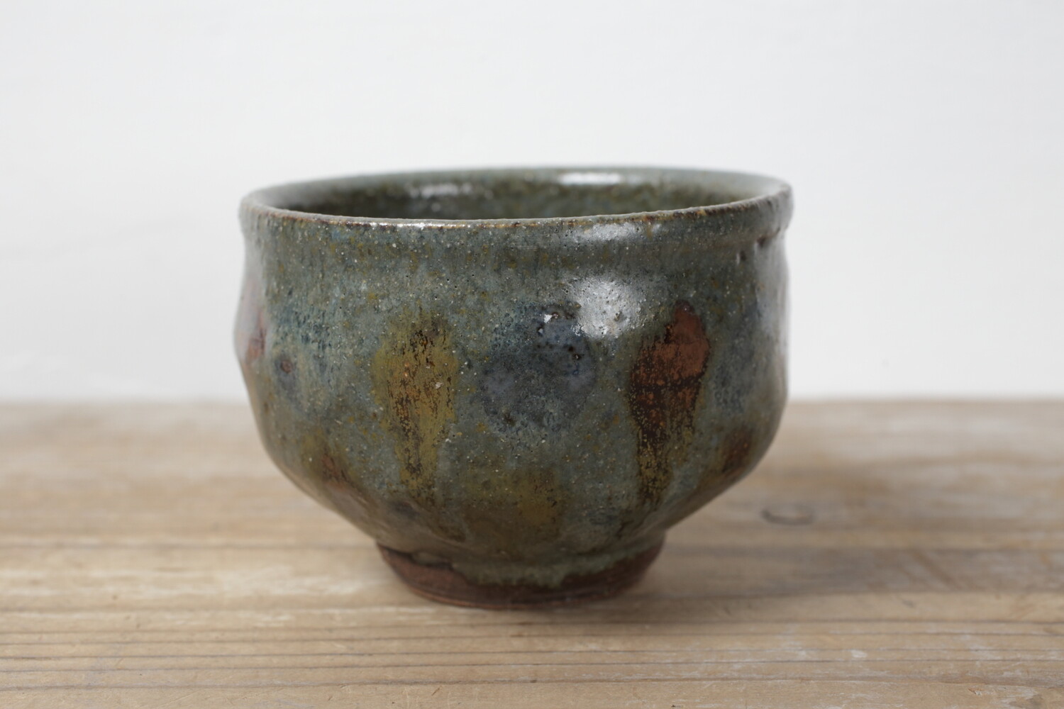 練炭釉の中に丸紋が浮かび上がるような森山さんの抹茶碗。しっとりとした美しさがあります。直径は11cmほどですので、男女問わずお使い頂けます。