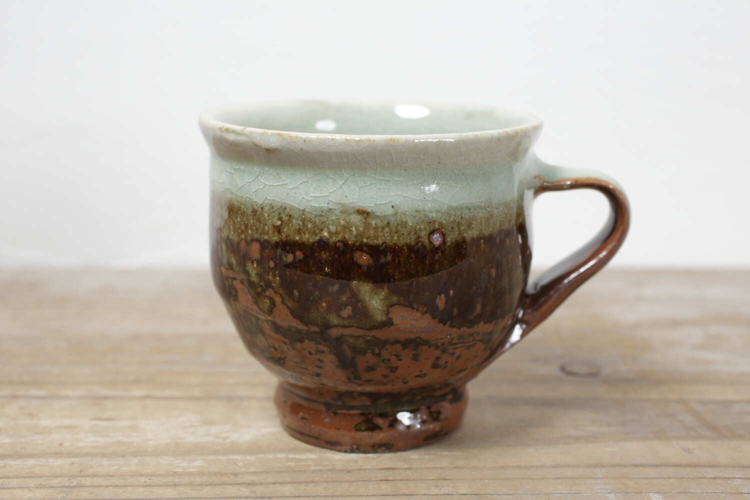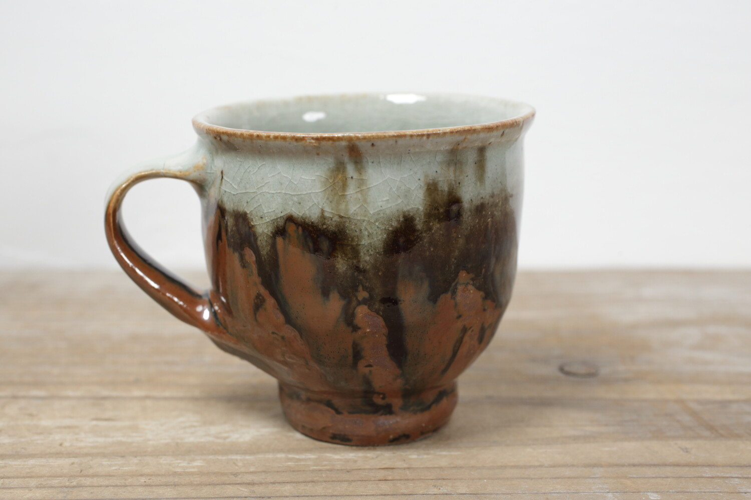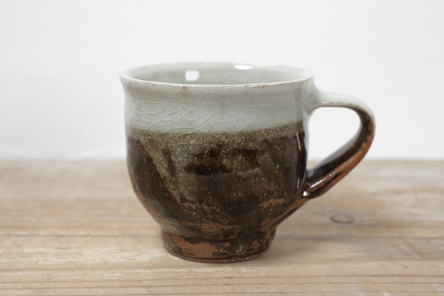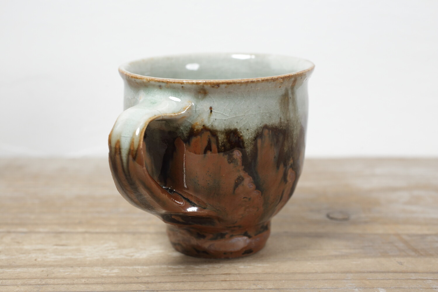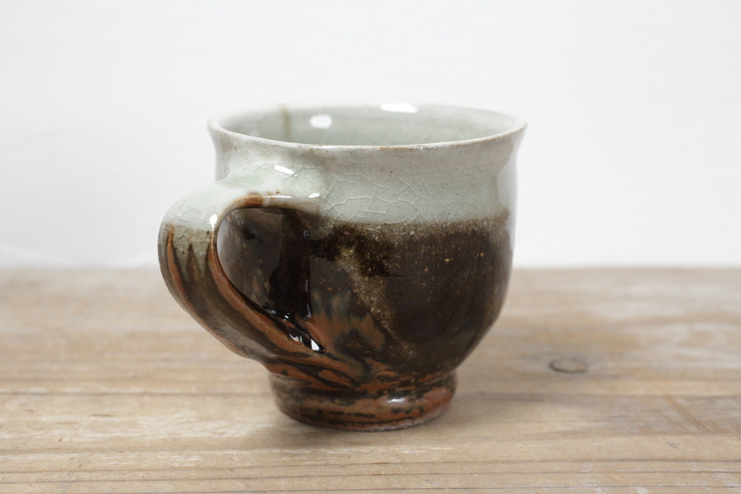 何とも森山窯らしい自然な品格が漂う指描マグカップ。外側も内側も風情のある釉薬と森山さんが長年定番として取り組み若き頃に濱田庄司氏にそのやり方を教えて頂いたという指描き、全ての要素のバランスが美しいマグカップです。大きさは小さ過ぎず毎日使うマグカップとしてちょうどいい容量240mlほど(八分目ほどで計量)、直径9cmほどの大きさです。