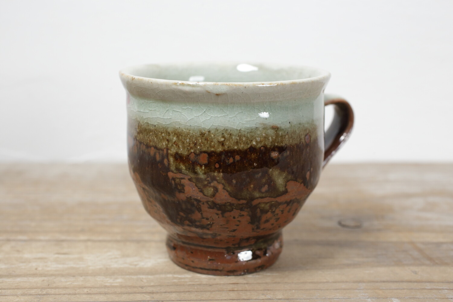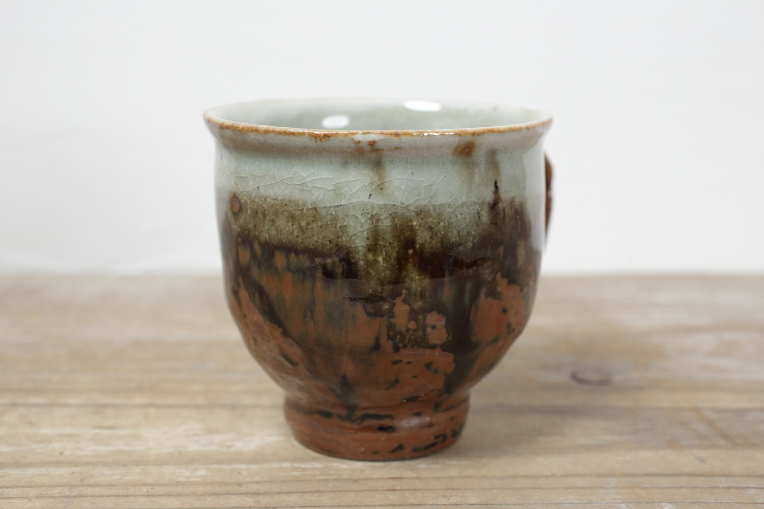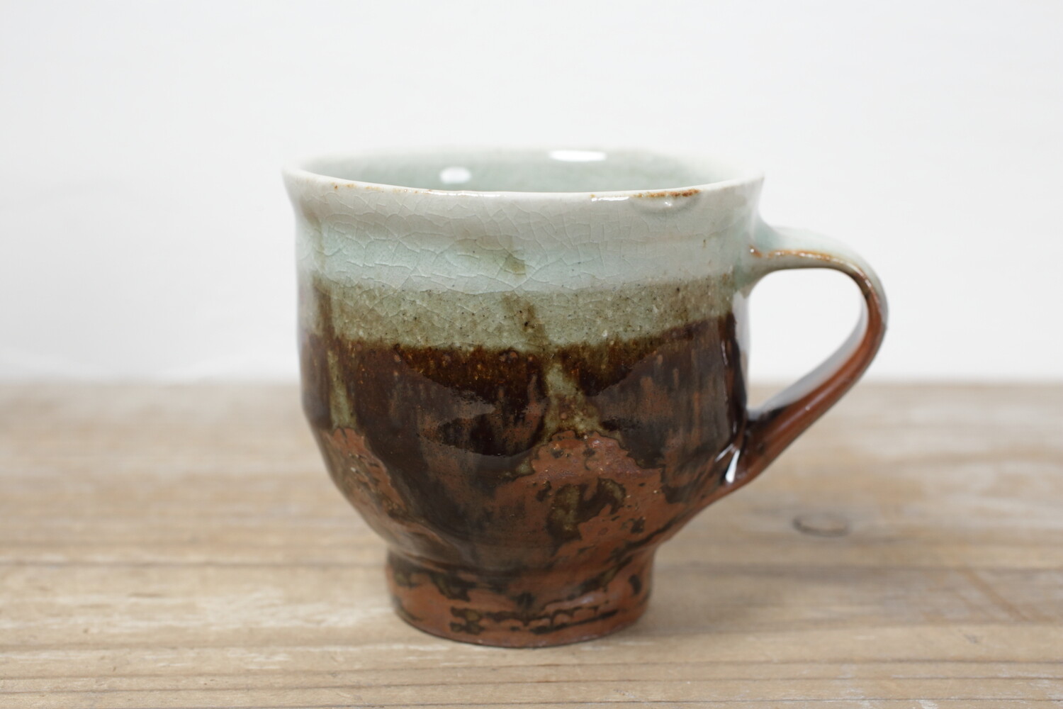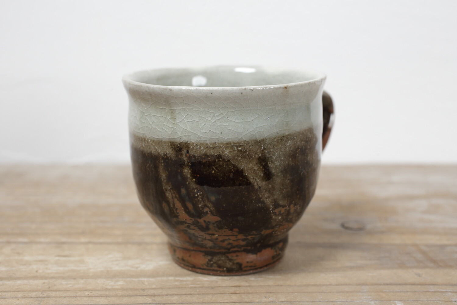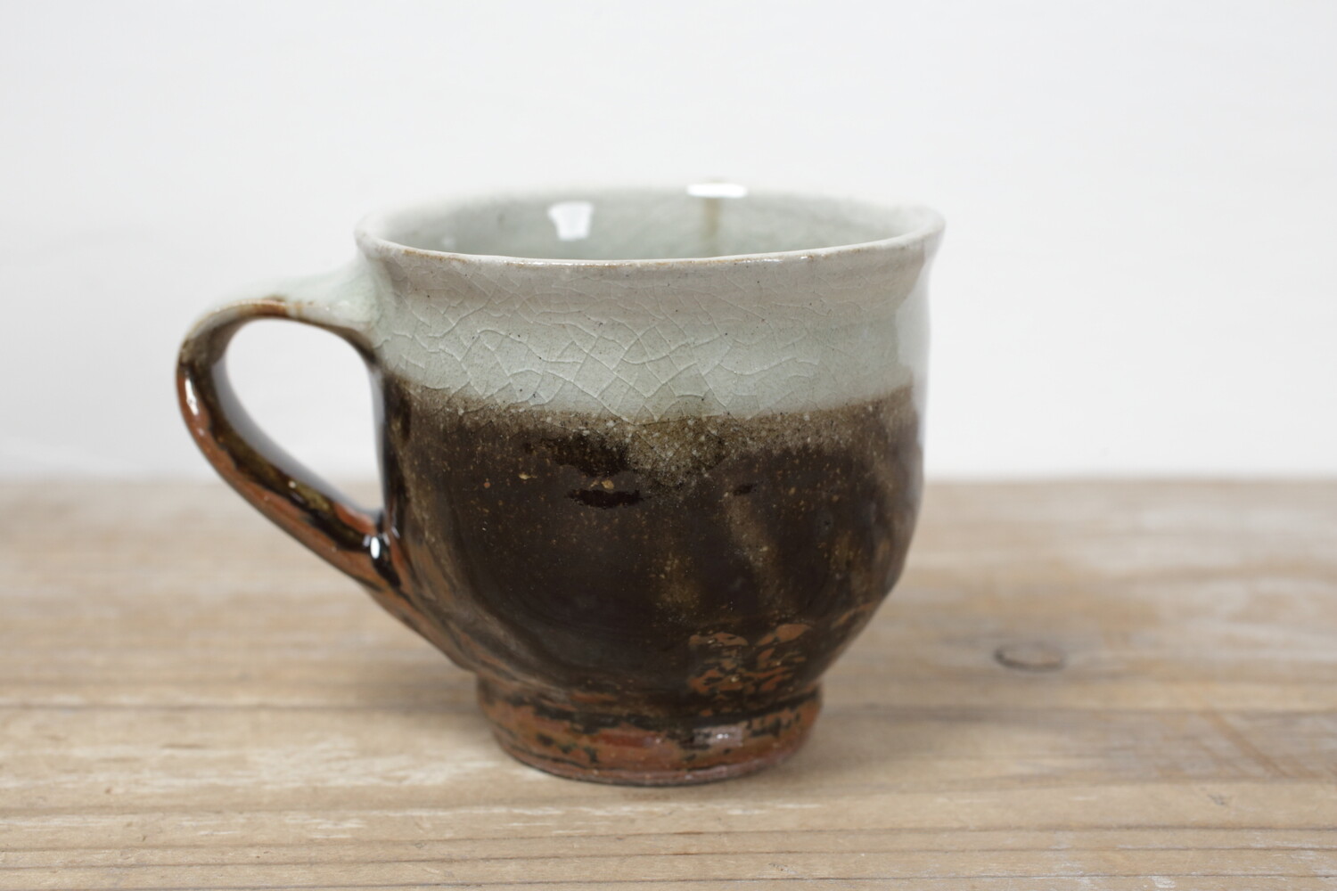 何とも森山窯らしい自然な品格が漂う指描マグカップ。外側も内側も風情のある釉薬と森山さんが長年定番として取り組み若き頃に濱田庄司氏にそのやり方を教えて頂いたという指描き、全ての要素のバランスが美しいマグカップです。大きさは小さ過ぎず毎日使うマグカップとしてちょうどいい容量240mlほど(八分目ほどで計量)、直径9cmほどの大きさです。