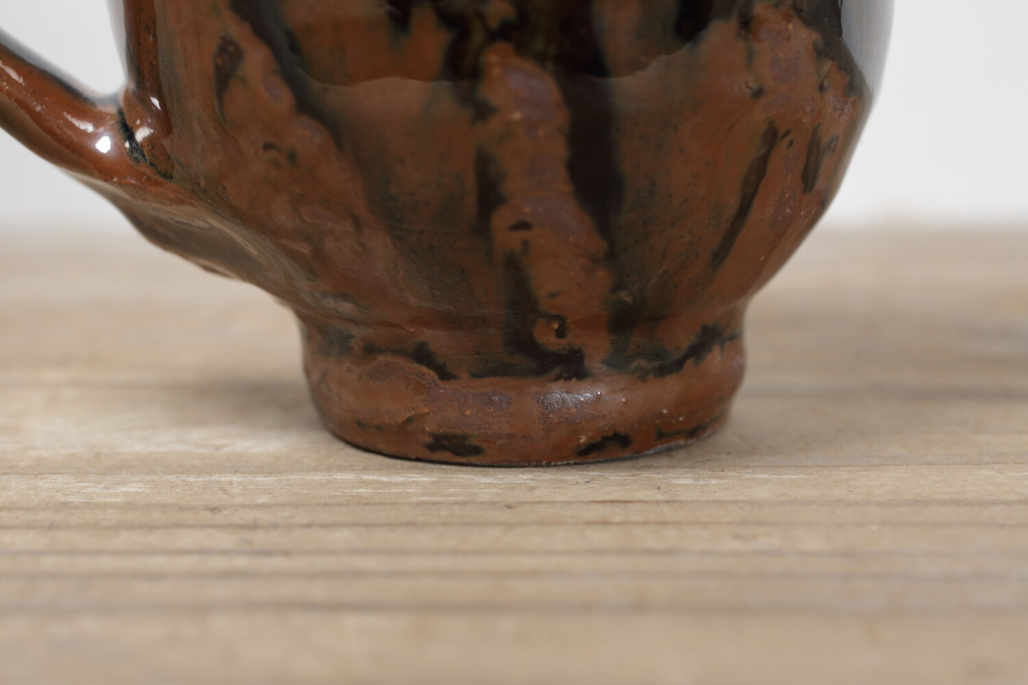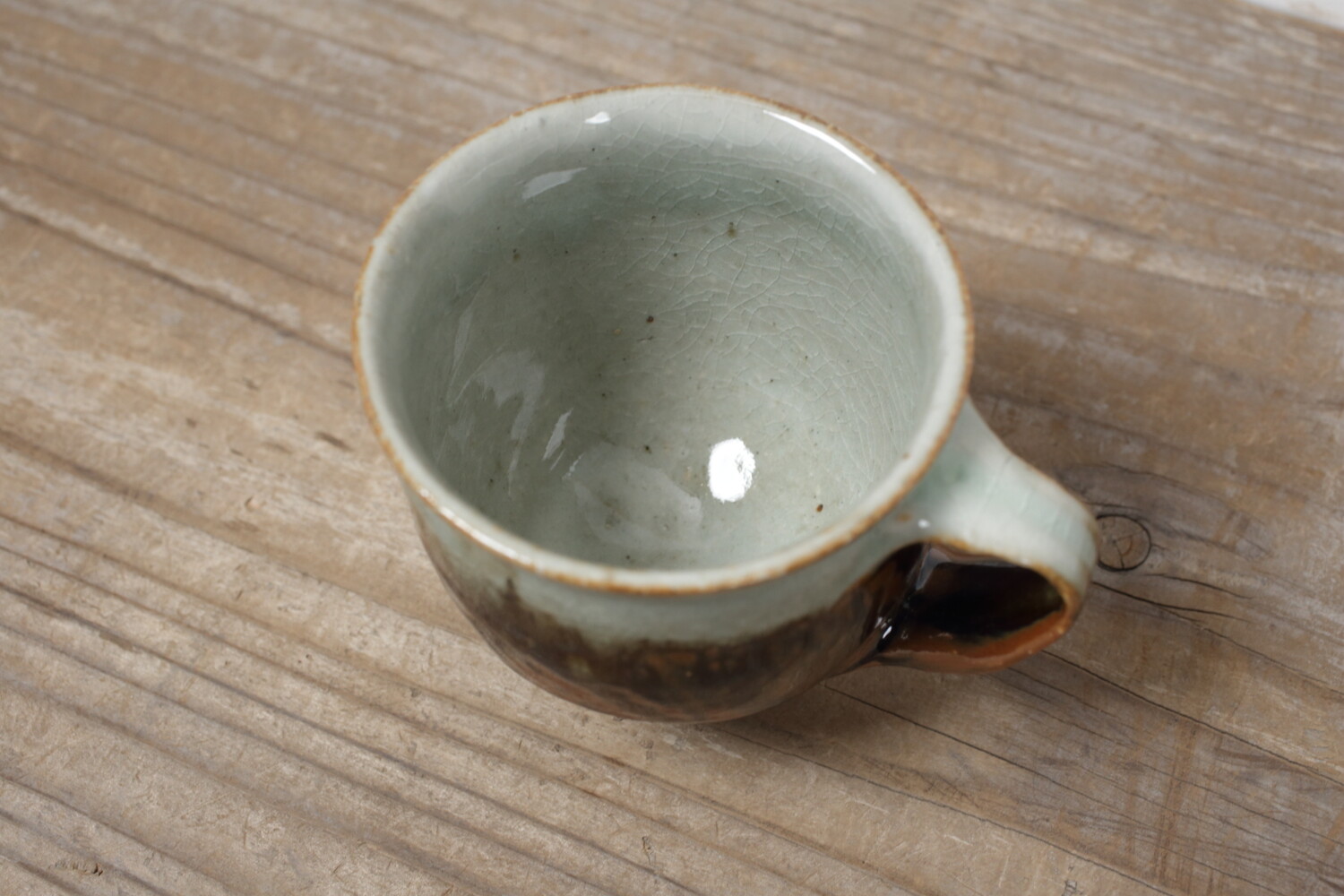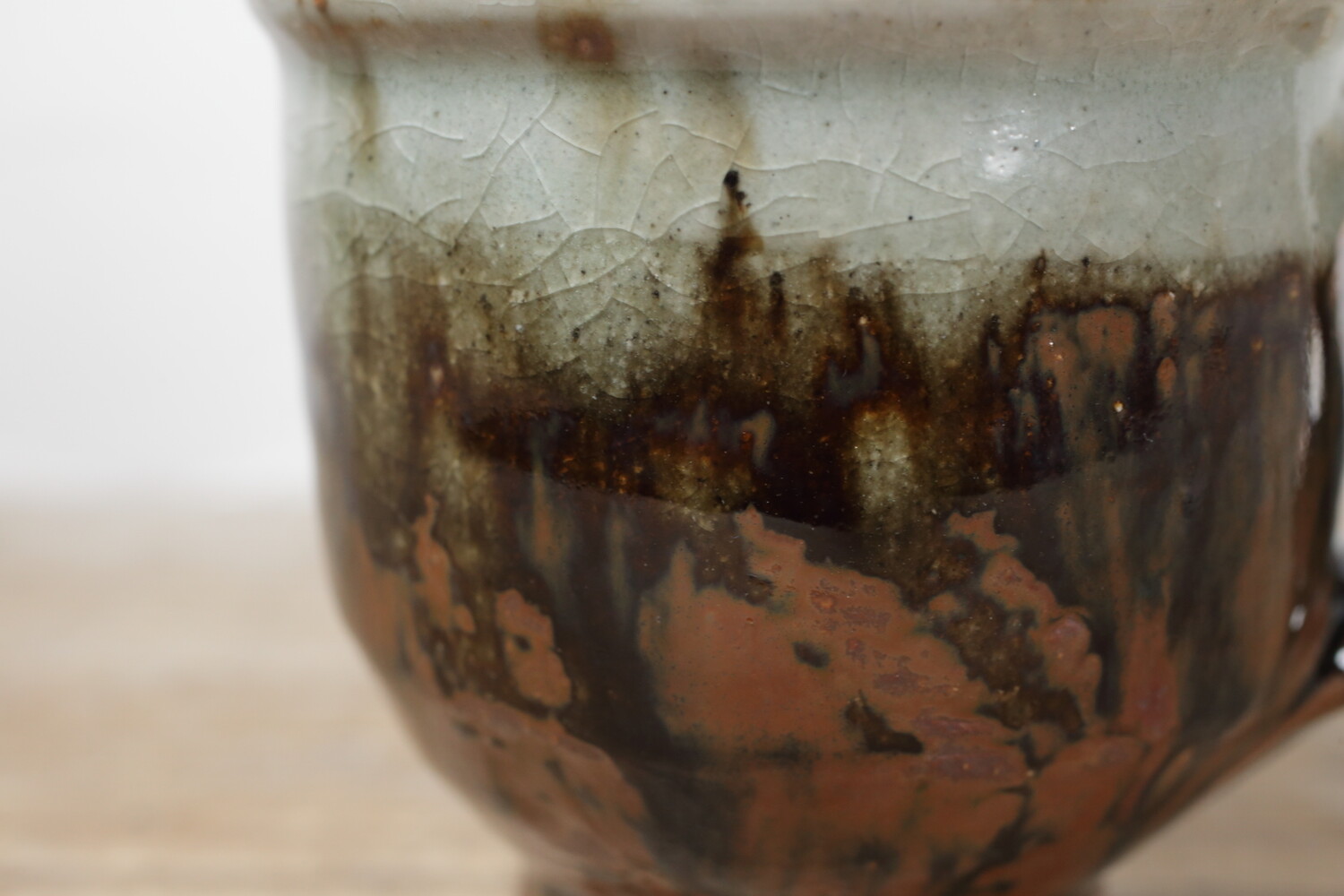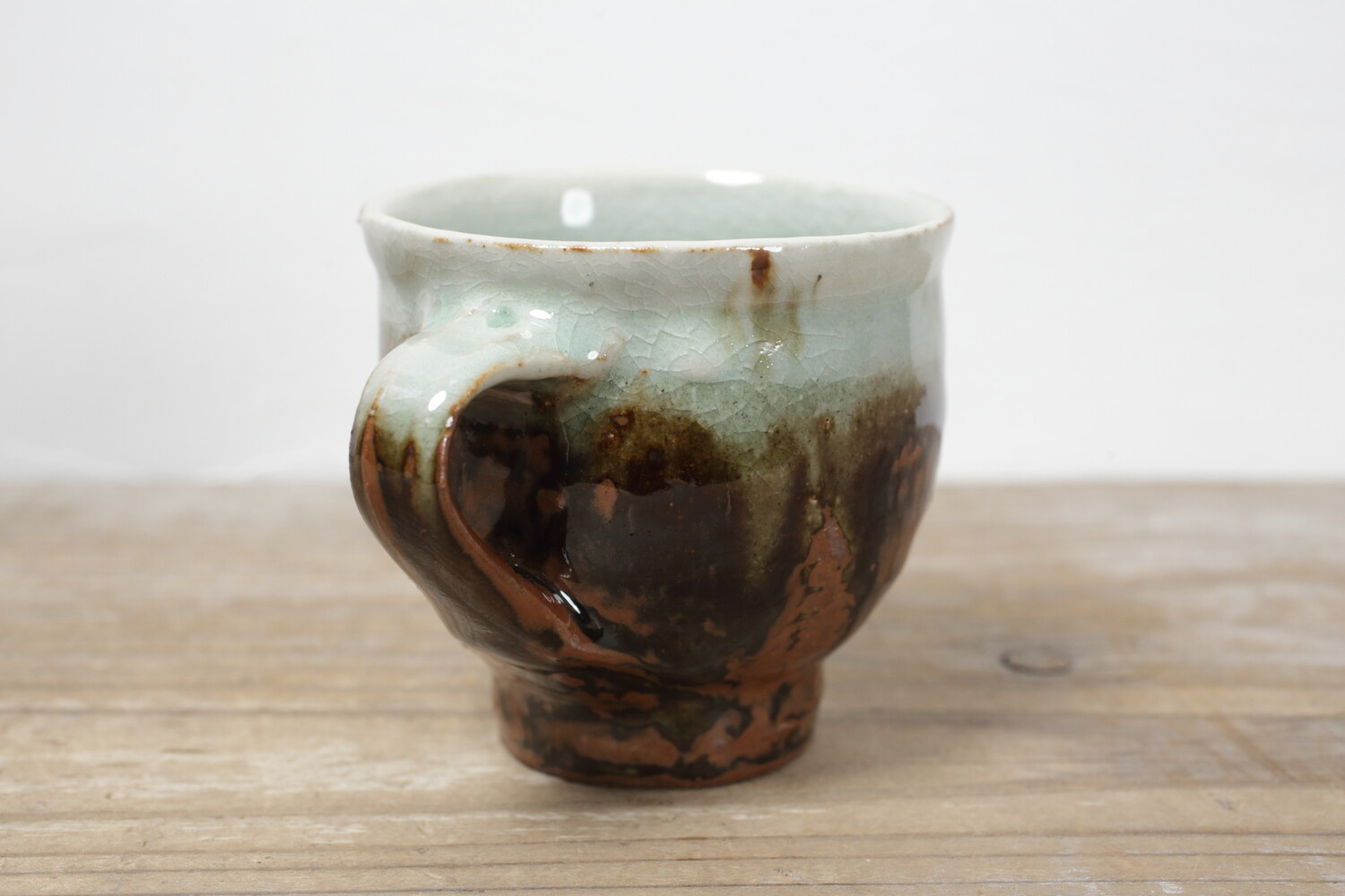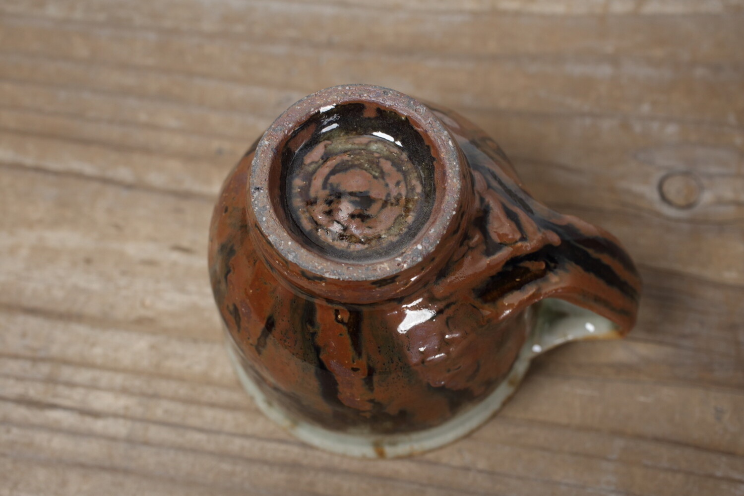 何とも森山窯らしい自然な品格が漂う指描マグカップ。外側も内側も風情のある釉薬と森山さんが長年定番として取り組み若き頃に濱田庄司氏にそのやり方を教えて頂いたという指描き、全ての要素のバランスが美しいマグカップです。大きさは小さ過ぎず毎日使うマグカップとしてちょうどいい容量240mlほど(八分目ほどで計量)、直径9cmほどの大きさです。